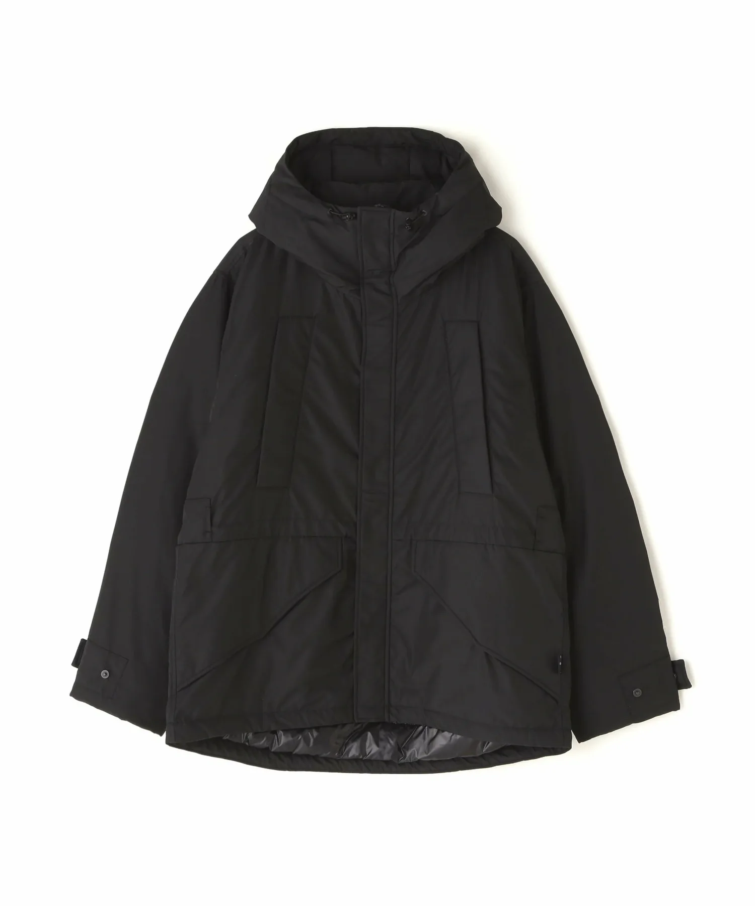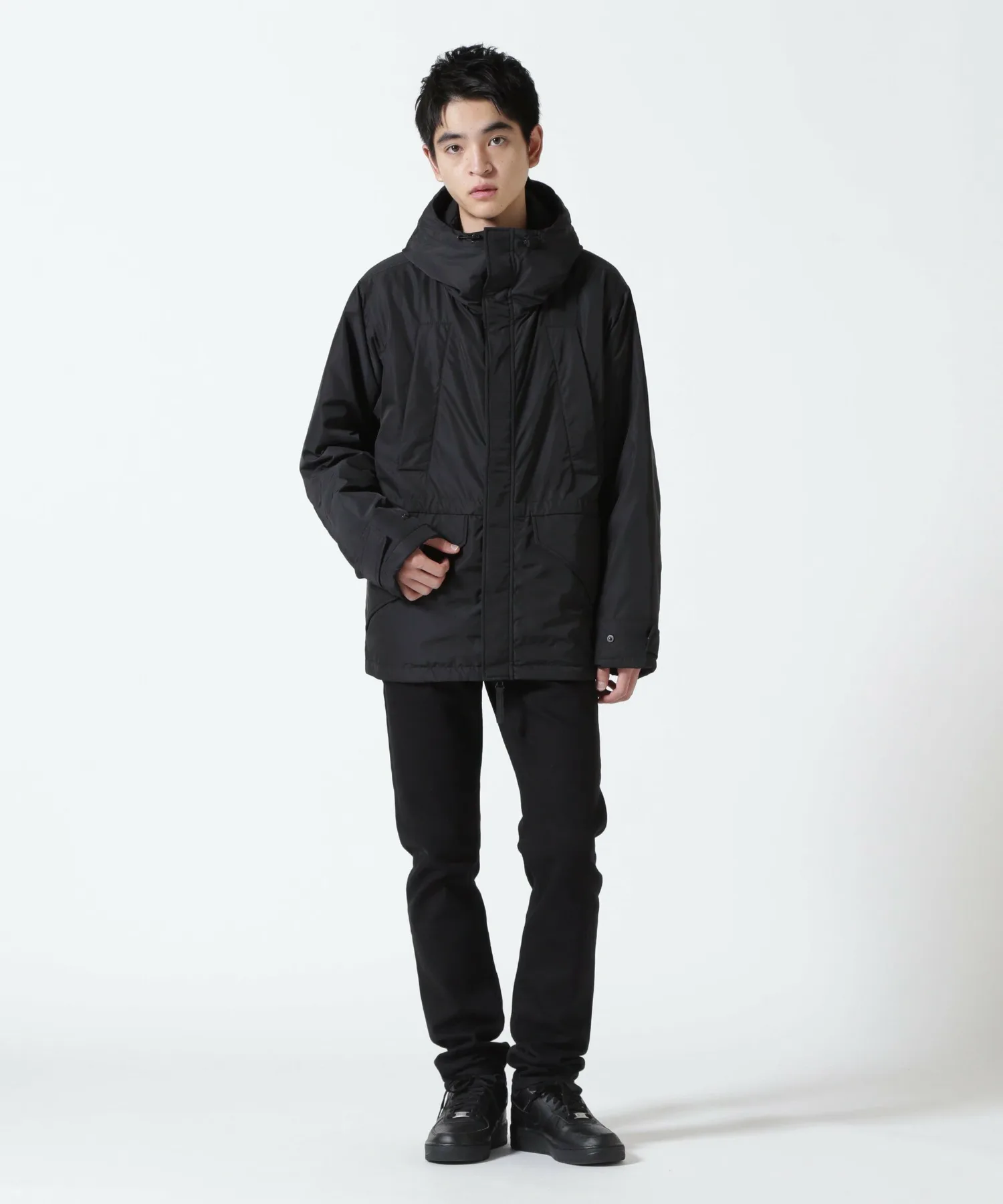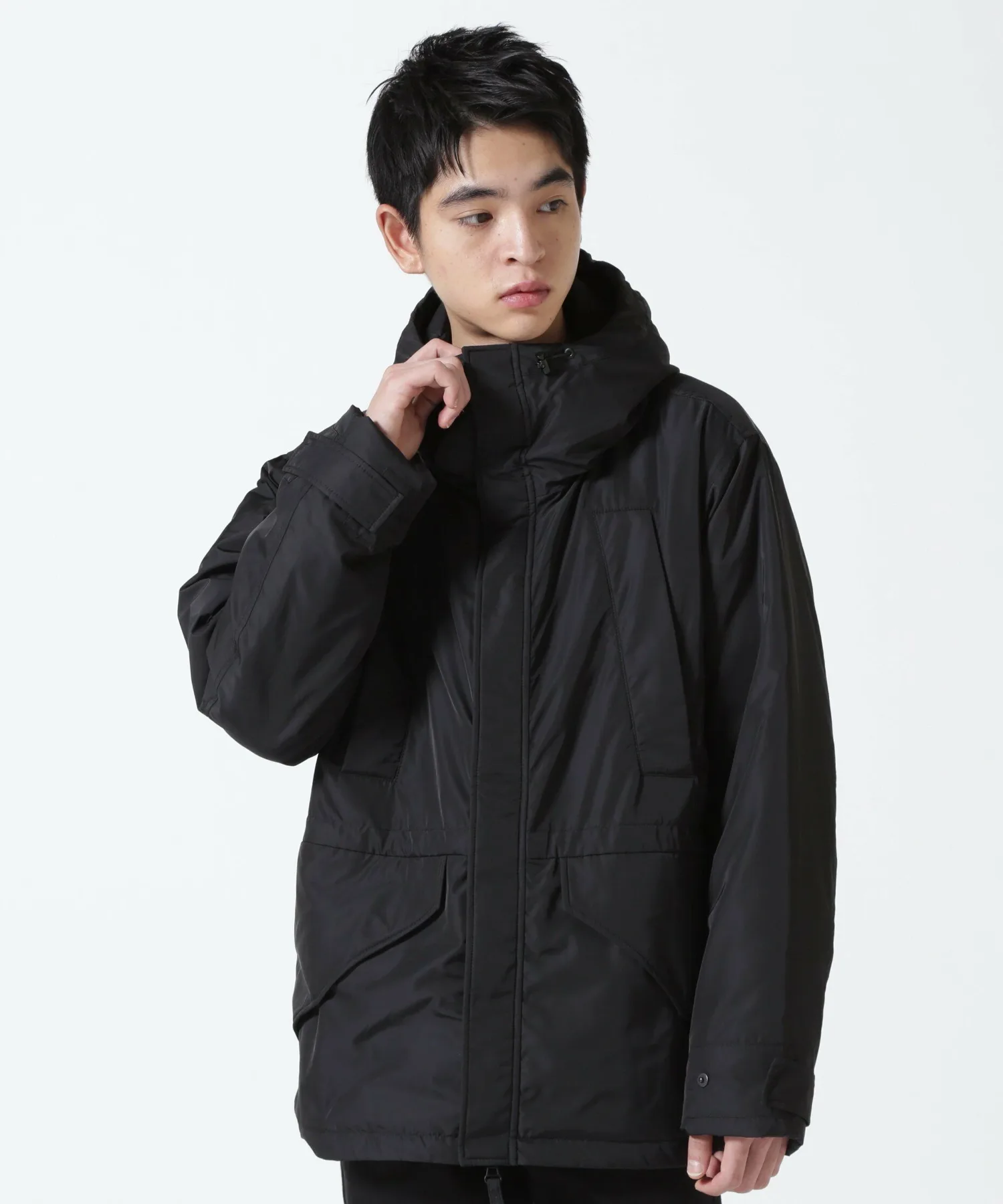 Несмотря на короткий размер, она оснащена четырьмя удобными карманами снаружи и двумя внутри, а шнурки на капюшоне, талии и подоле позволяют регулировать силуэт. Внешний материал — полуматовый полиэстер саржевого переплетения с мягкой текстурой и милитари-стилем, а подкладка выполнена из гладкого, антистатического нейлона. В расстегнутом виде горизонтальная строчка, характерная для пуховых курток, придает этой короткой пуховой куртке плотный, но не громоздкий вид, защищая от холода в середине зимы.