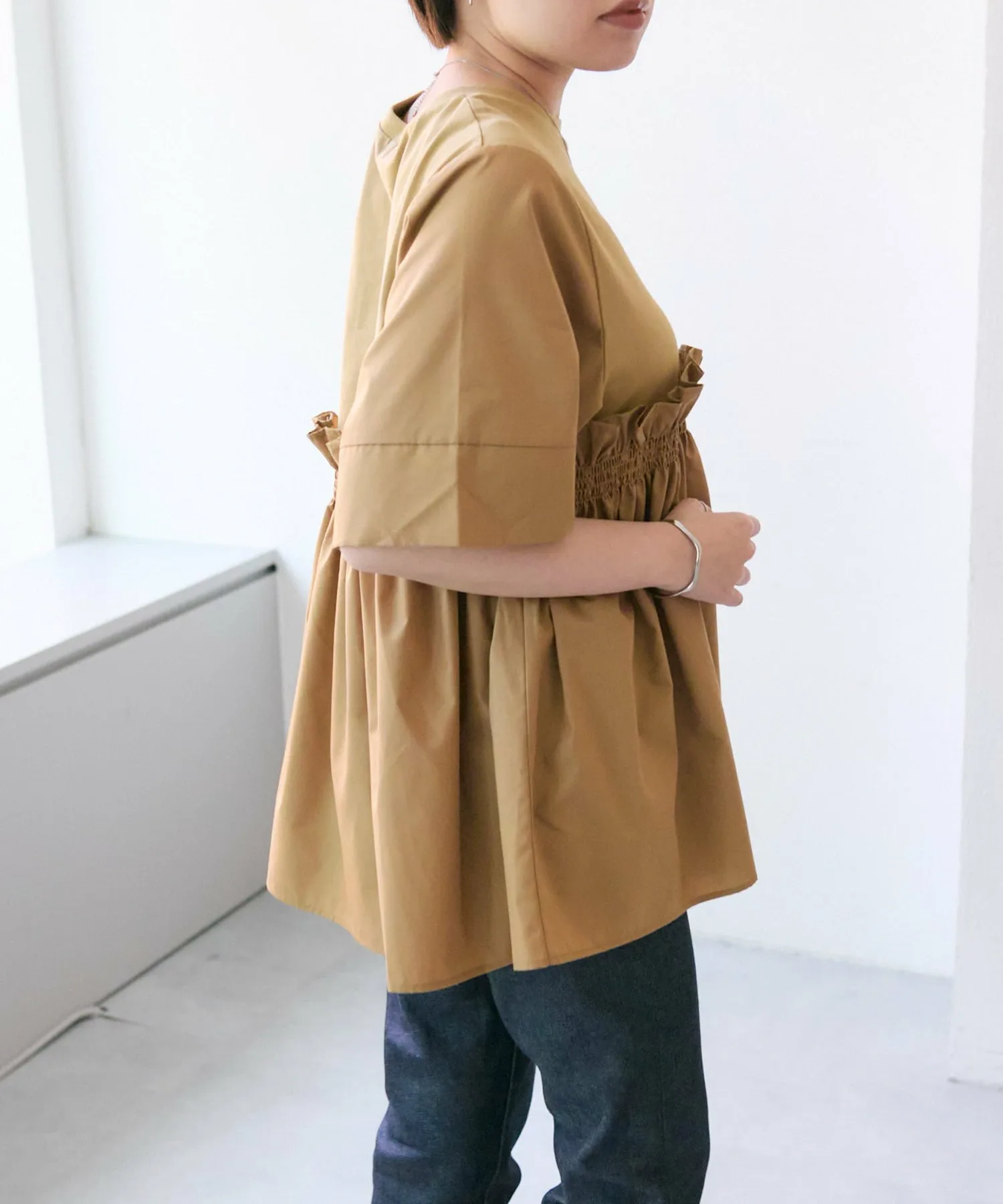 ・Оборки и рукава выполнены из слегка плотного, гладкого материала, приятного на ощупь