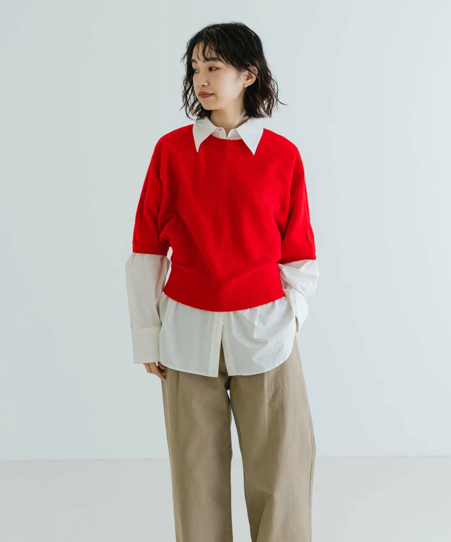 Рекомендуем носить эту вещь отдельно или сочетать ее с топом, хлопковой полосатой рубашкой с воротником-стойкой (UR47-23C011) или атласной рубашкой для создания сезонного образа.