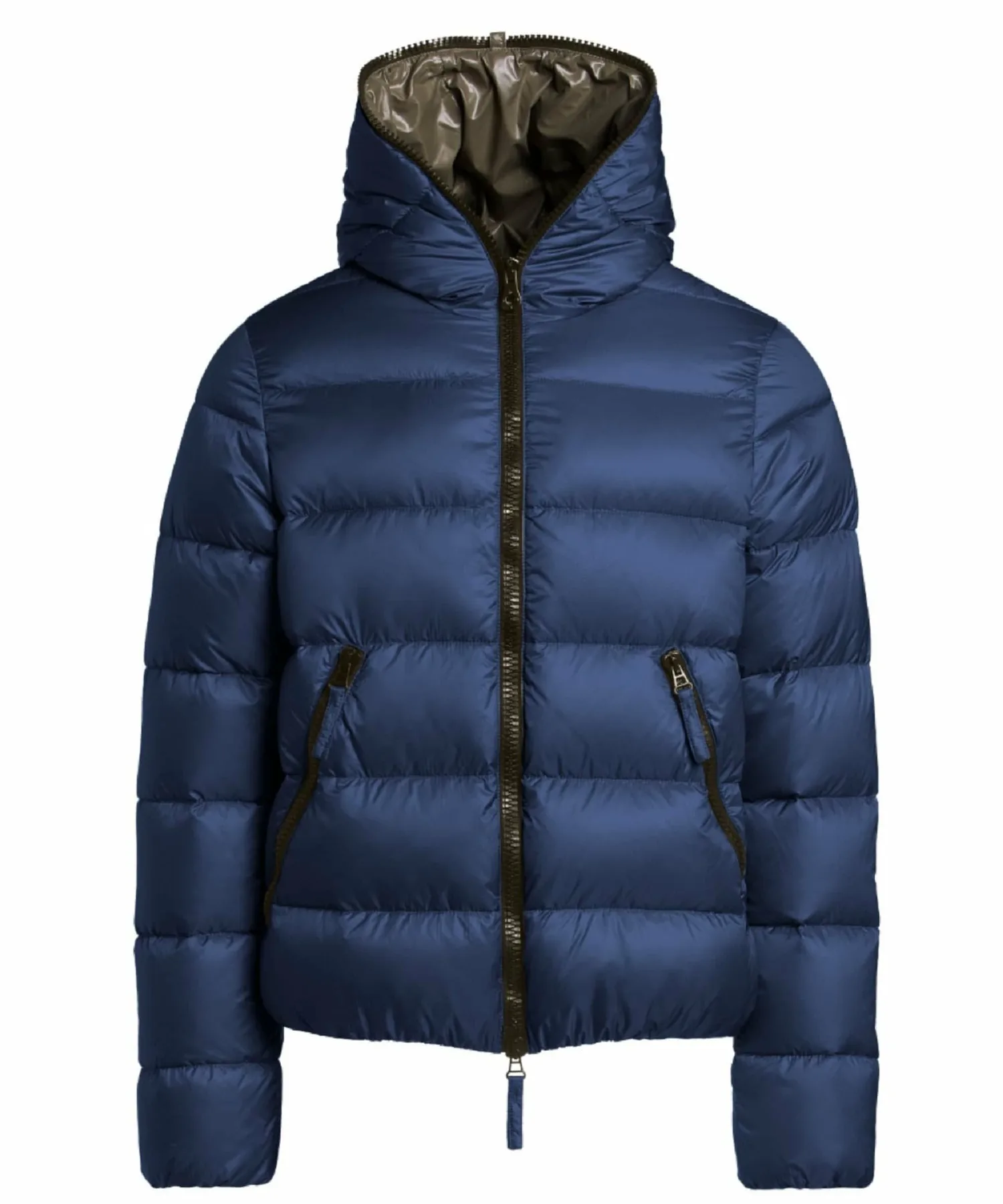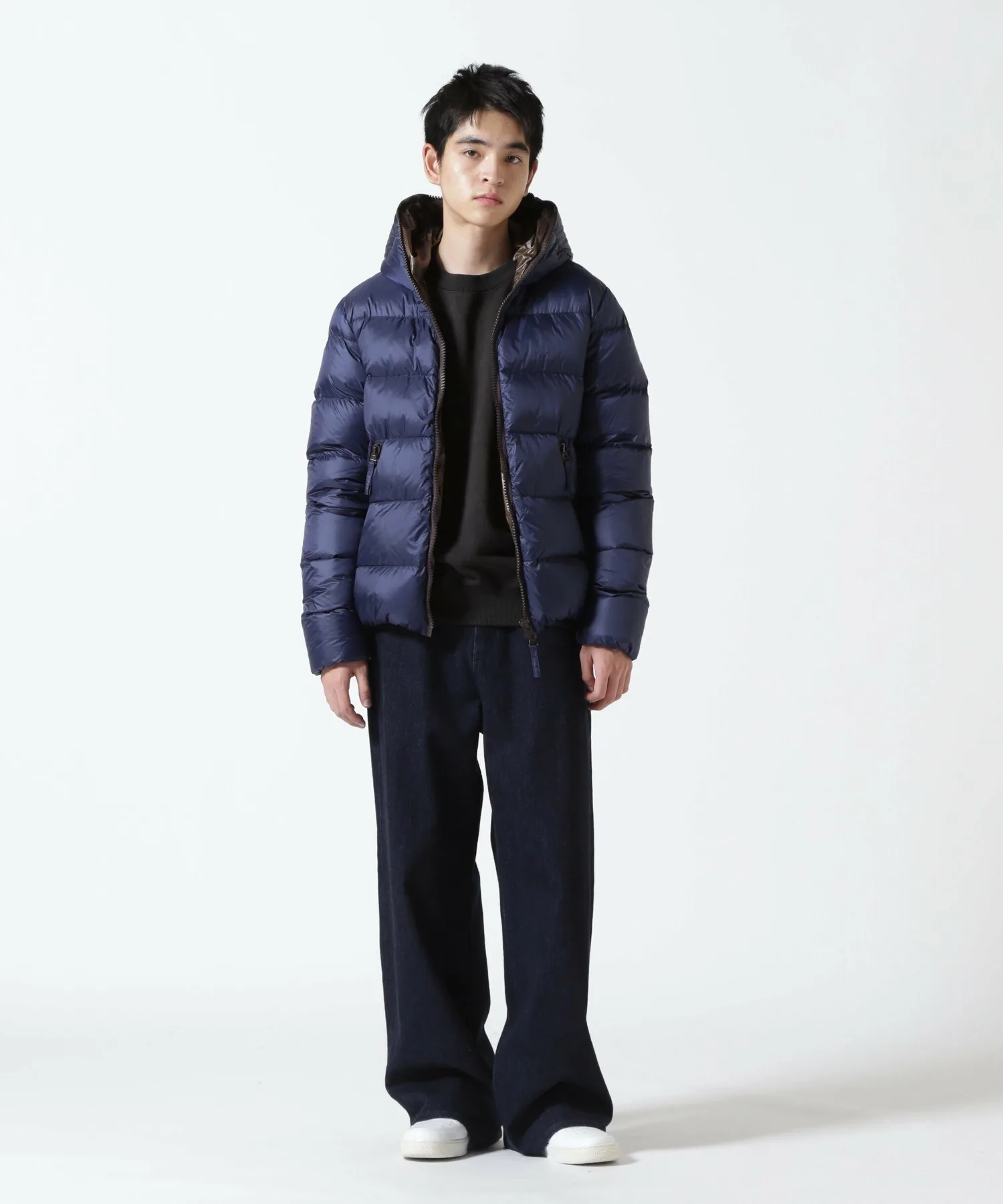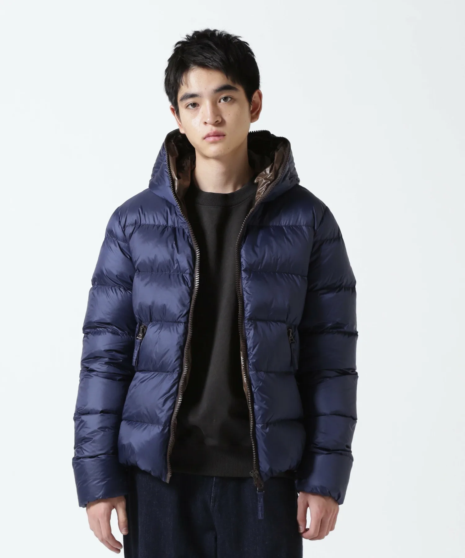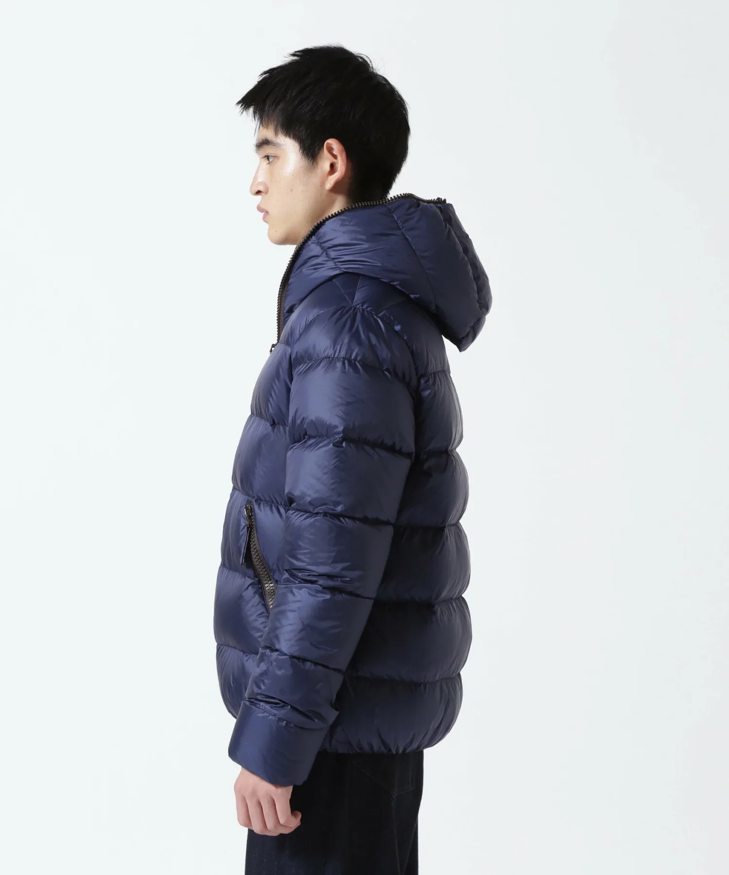 Куртка с застежкой-молнией по всей длине имеет двойную молнию, которая доходит до самого верха капюшона — культового элемента бренда. Внешняя ткань, подкладка и молния выполнены в изысканных цветах для создания расслабленного ощущения. Стежка по краю создает четкую, текстурированную поверхность. Сохраняя четыре отличительные особенности этой куртки, включая продуманный объем пуха, который защищает от холода в середине зимы, не создавая ощущения громоздкости, куртка теперь имеет новую, слегка блестящую нейлоновую внешнюю ткань. Кроме того, благодаря тонкой настройке ширины и размера шва, эта короткая пуховая куртка с капюшоном, фирменная модель DUVETICA, была переработана для более минималистичного и спортивного стиля.