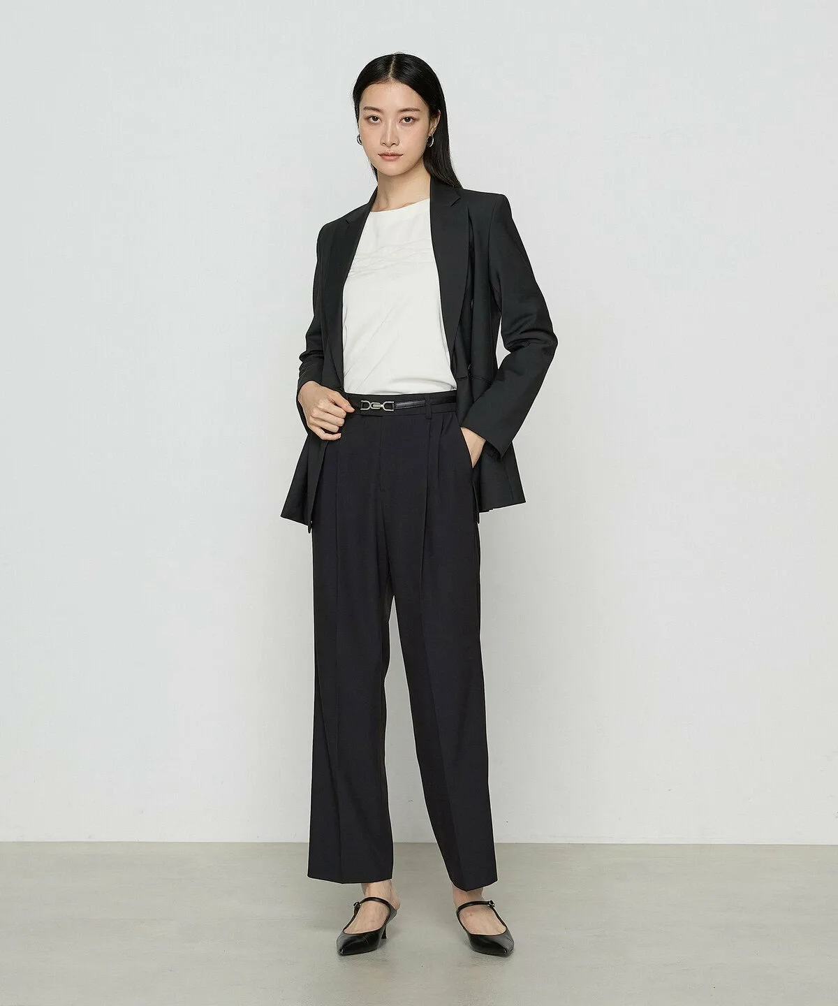 Прямой пояс и складки создают чистый, красивый силуэт.