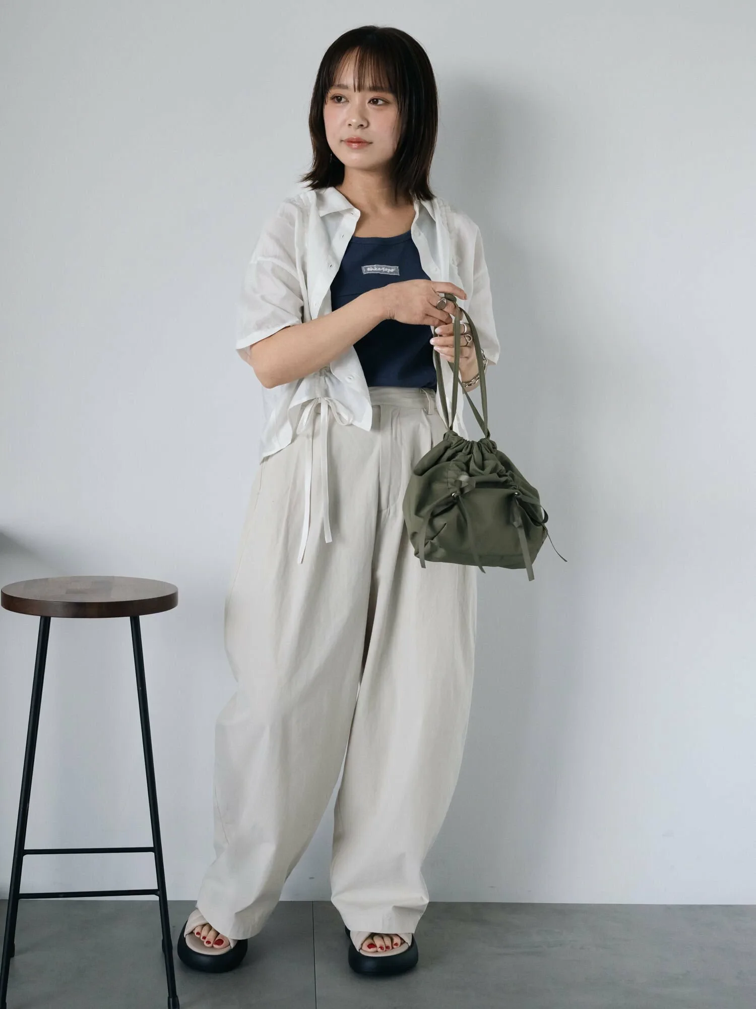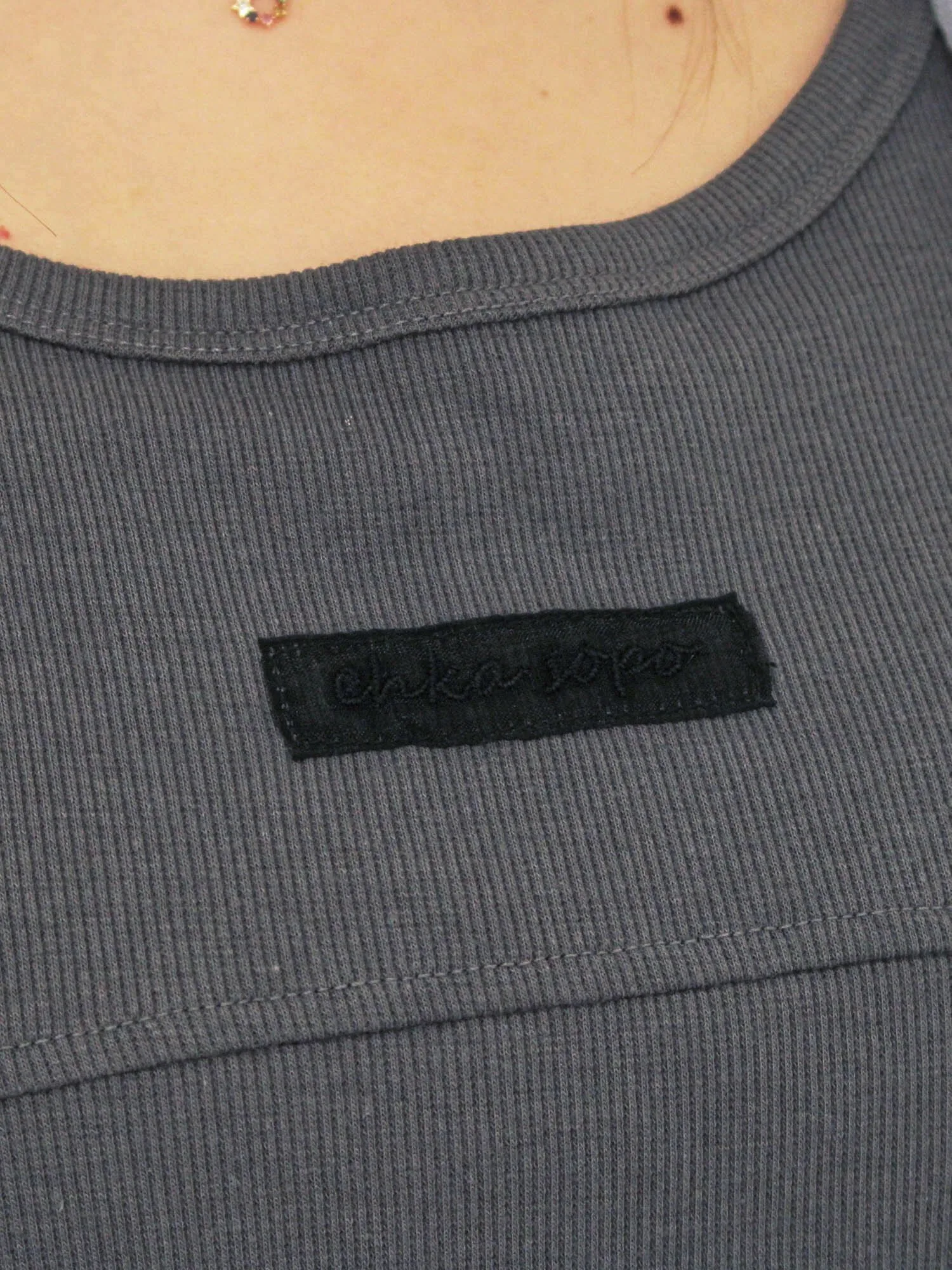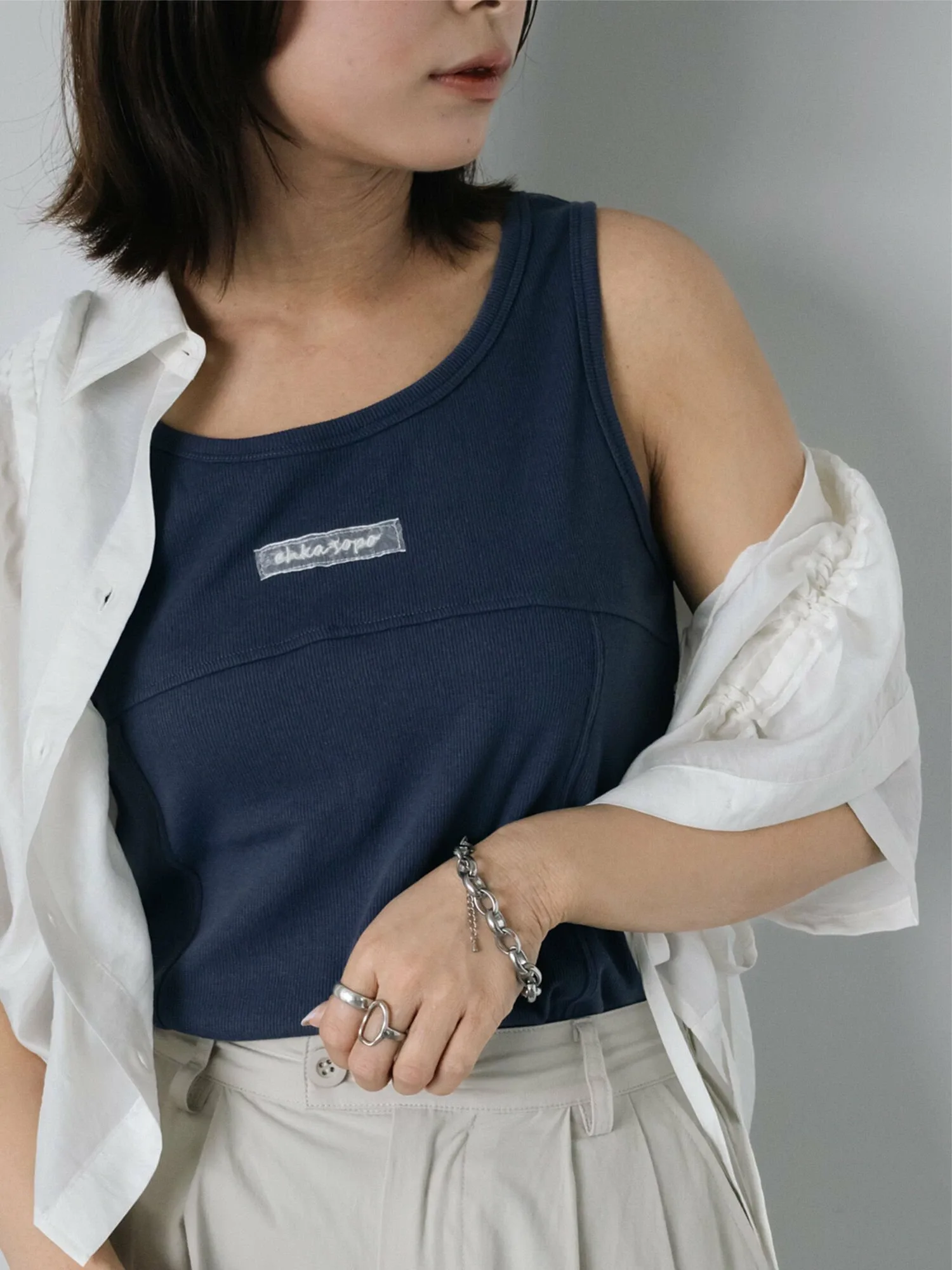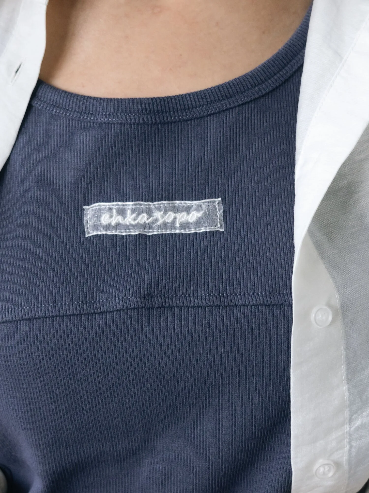 Майка с вышитым логотипом на груди в качестве уникального акцента.