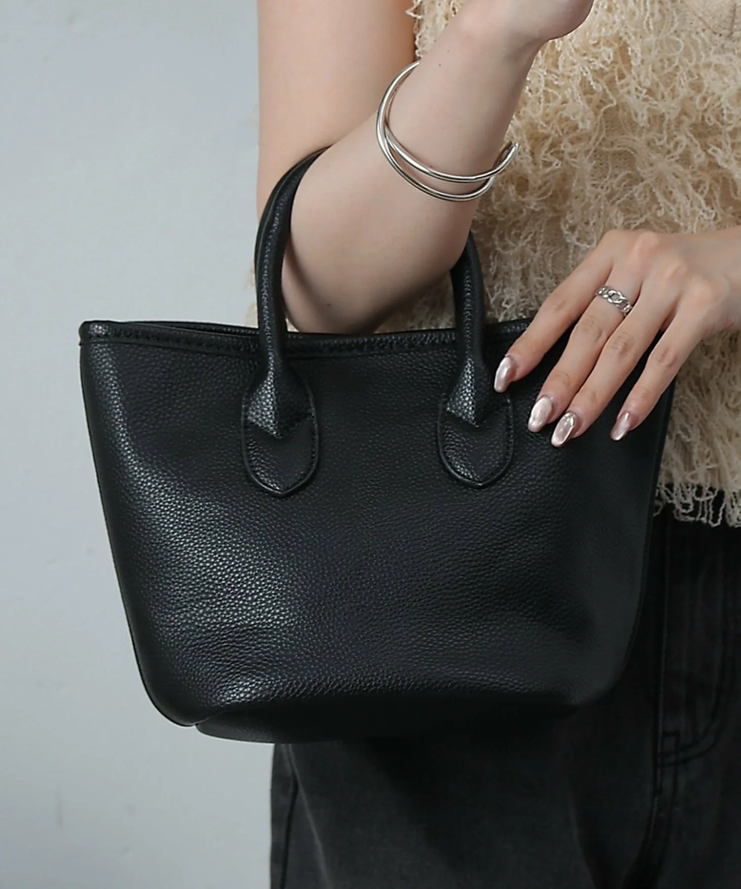 Добавлены новые цвета. [Компактная, но надежная. Маленькая сумка-тоут из искусственной кожи] Внутри два открытых кармана и один карман на молнии, а также прочная боковая складка для отличной вместительности. Она устойчиво стоит, поэтому не опрокинется, если поставить ее на пол, что позволяет легко взять ее и выйти. В нее легко поместятся смартфон, кошелек, чехол и многое другое, что делает ее легкой и удобной для переноски, а также позволяет компактно хранить самые необходимые вещи. Этот универсальный предмет идеально подходит для самых разных случаев, от повседневного использования до использования в качестве дополнительной сумки. [Особенности продукта] Внутреннее пространство: два открытых кармана, один карман на молнии. Прочная боковая складка позволяет ей устойчиво стоять. Также рекомендуется для повседневного использования. Обратите внимание, что изделия, обозначенные синим цветом, на самом деле имеют зеленовато-мятный оттенок.