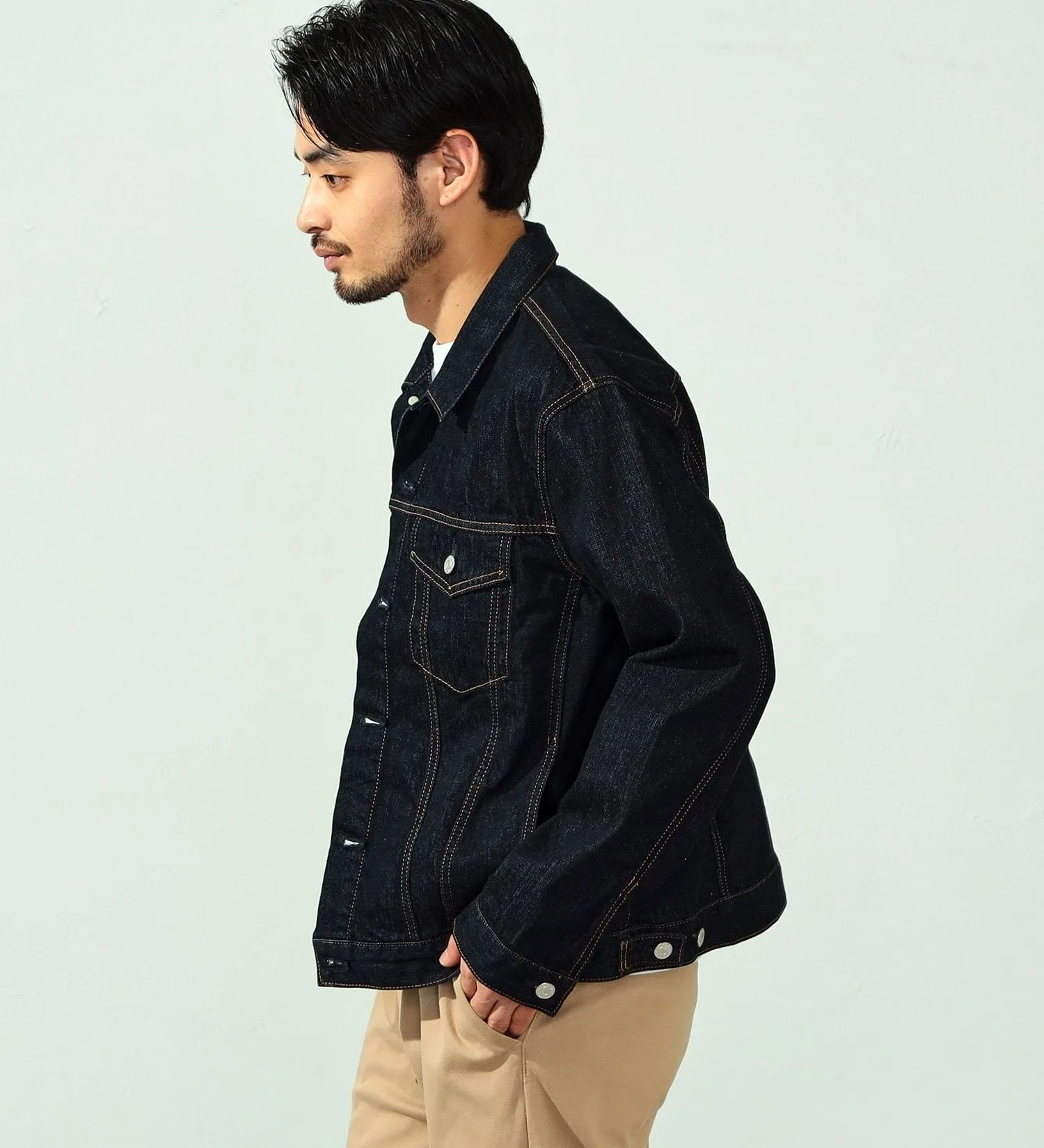 Силуэт представляет собой стандартную квадратную форму. Несмотря на свою простоту, он вневременной и подходит к широкому спектру нарядов. Он дополняет классический американский стиль, а также рекомендуется сочетать его с брюками и рубашкой для более утонченного, повседневного образа. Универсальная джинсовая куртка, которая станет незаменимым дополнением вашего гардероба.