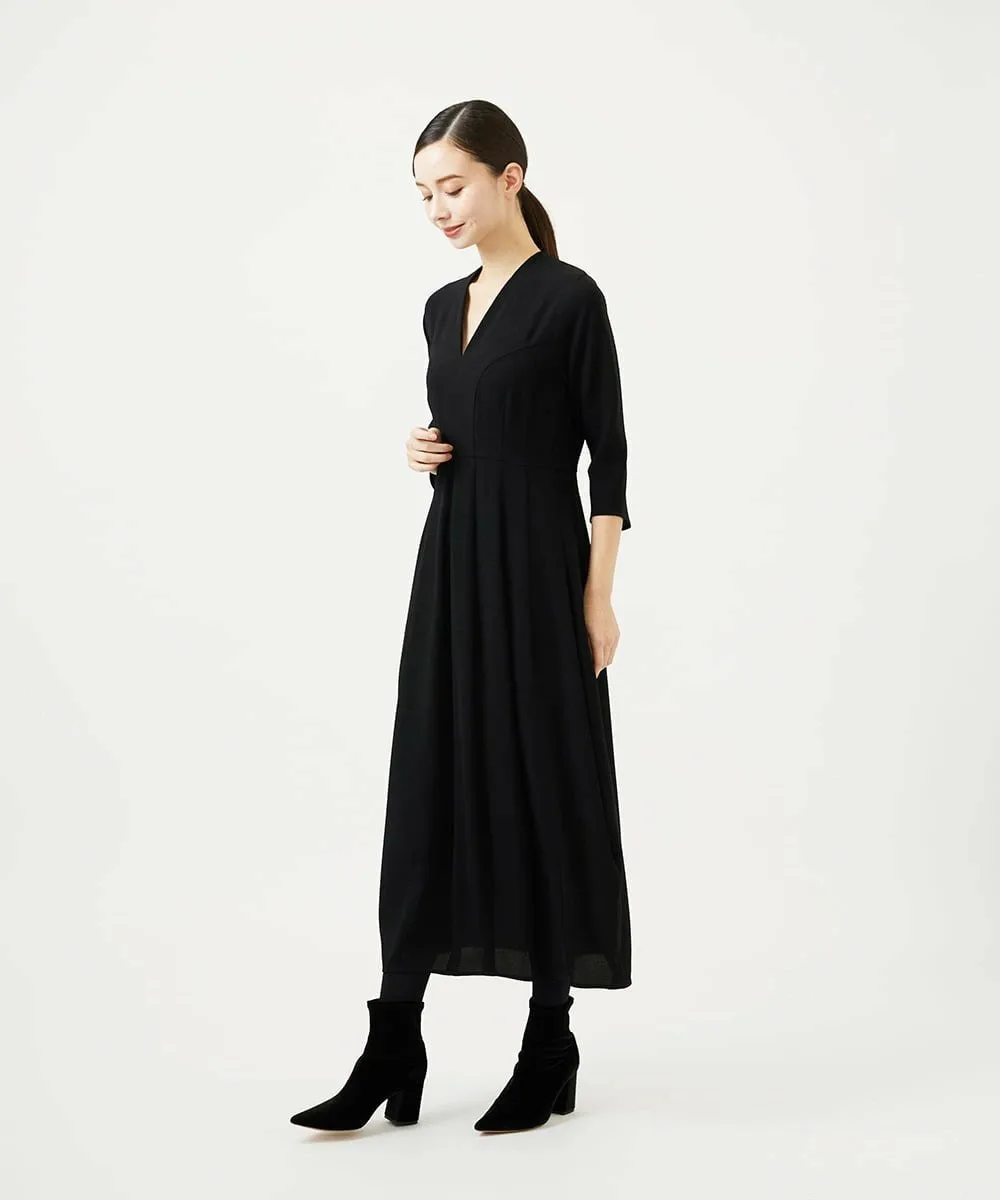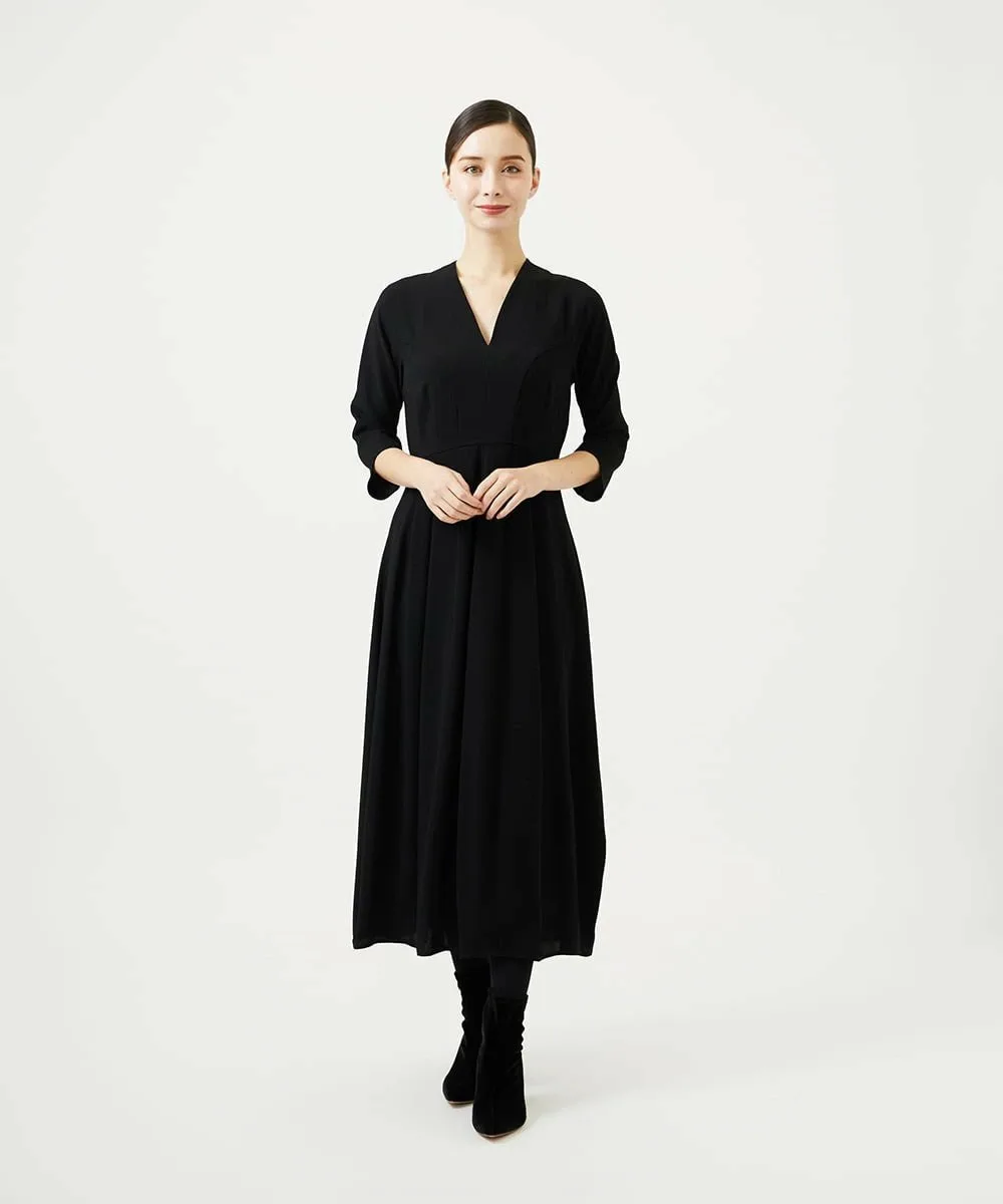 Платье с эффектным силуэтом «кокон», отличающееся вертикальными разрезами и детальными вытачками.