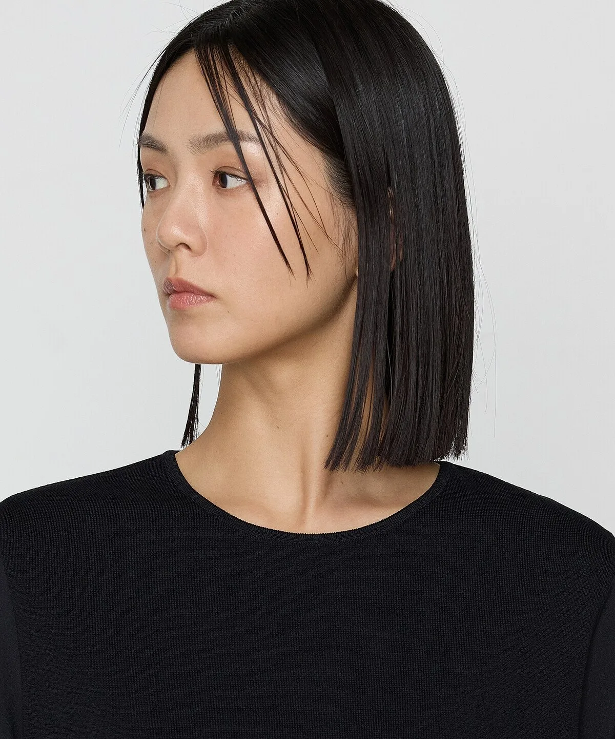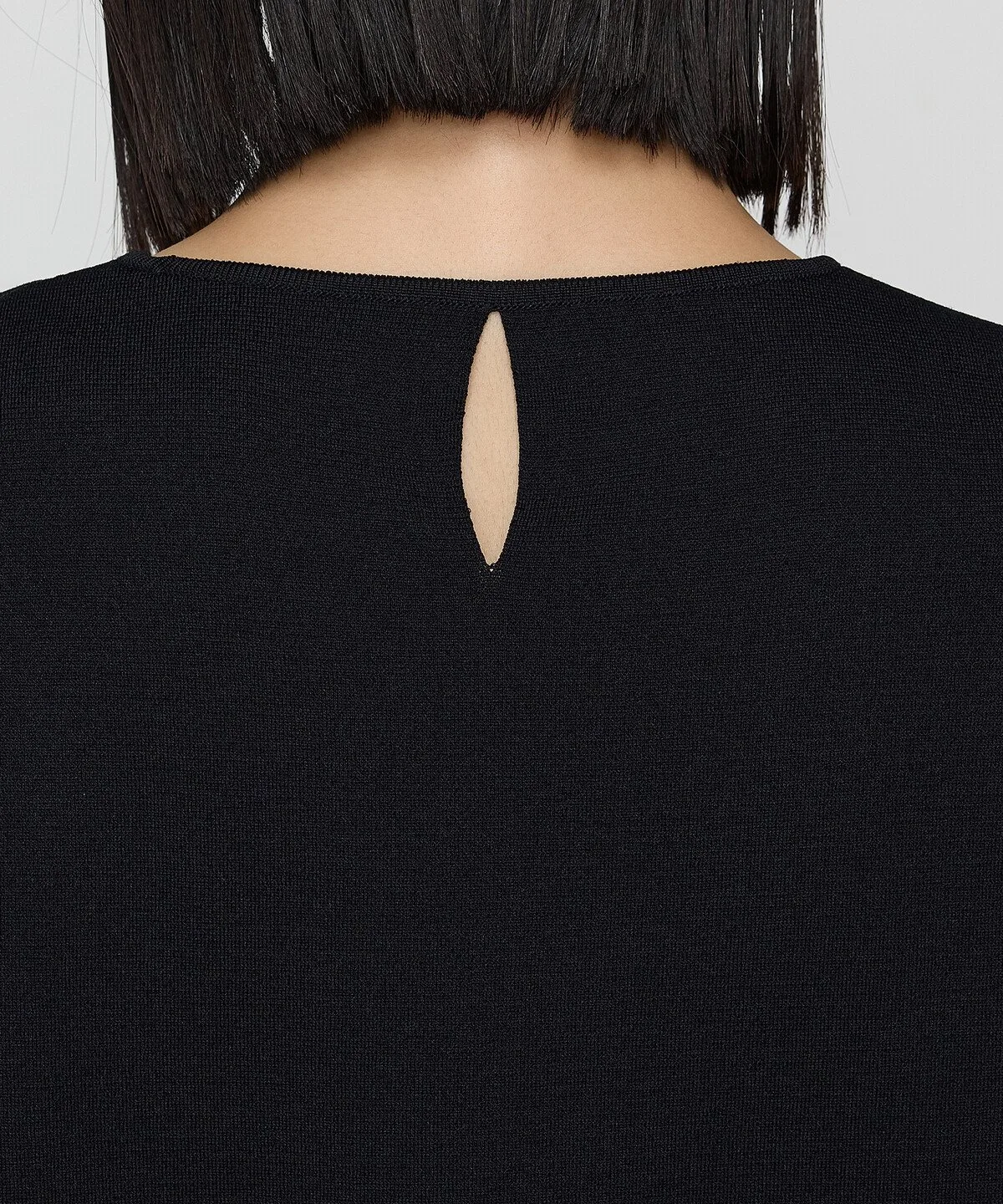 Воротник отделан узкой окантовкой, создавая изящный круглый вырез.