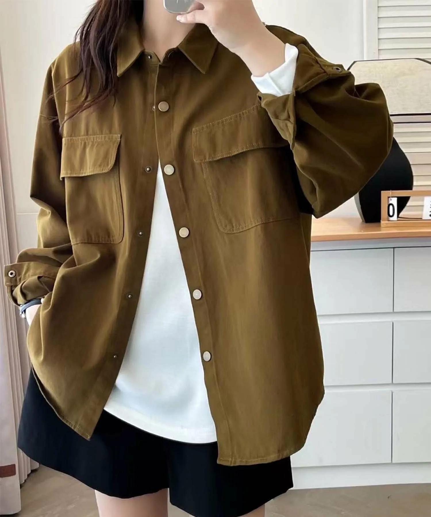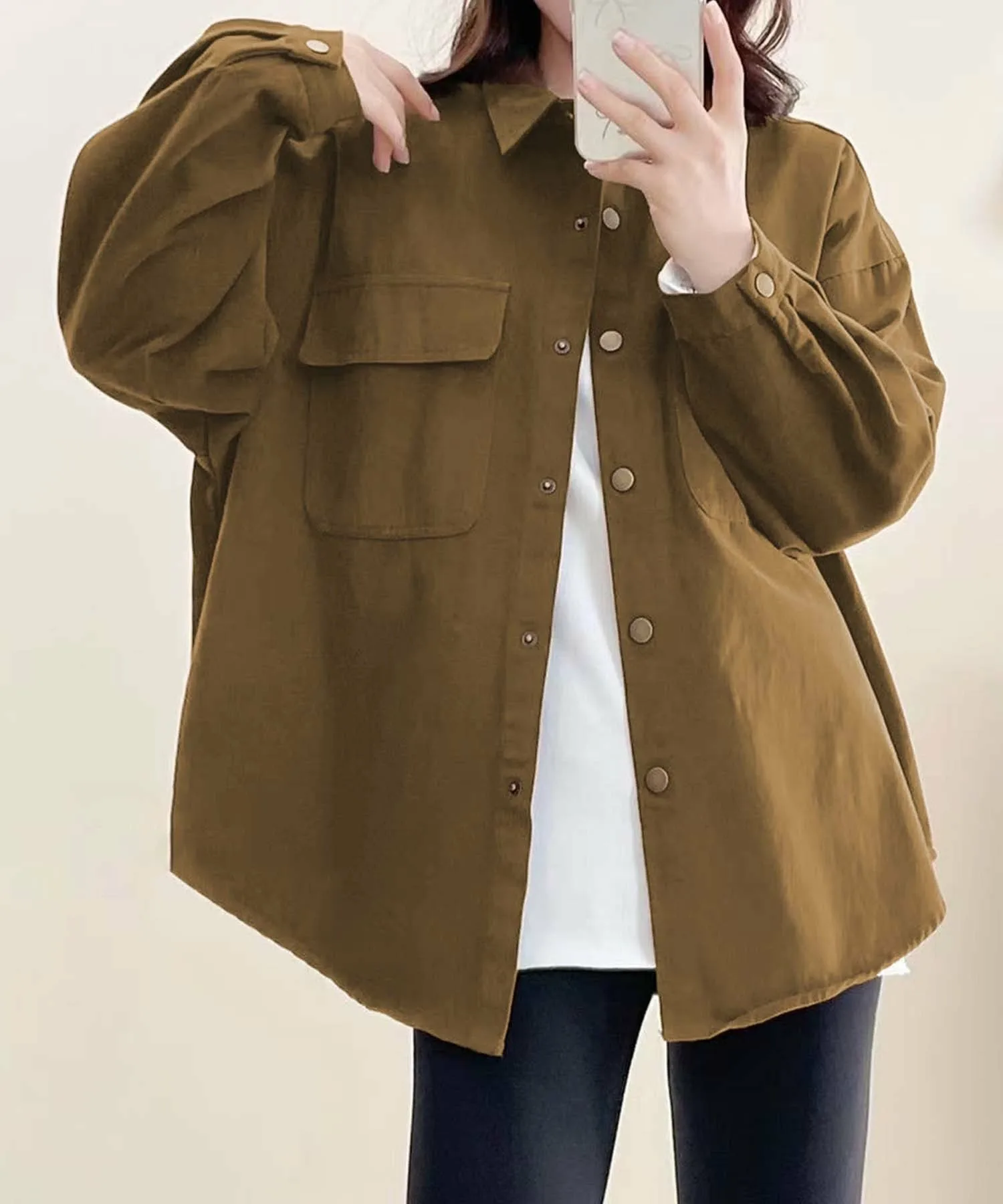Эта рубашка с длинными рукавами имеет большие накладные карманы с обеих сторон груди. Объемные рукава и свободный силуэт делают ее удобной в ношении. Несмотря на повседневный дизайн, сдержанные цвета делают ее идеальным элементом для создания изысканного образа.