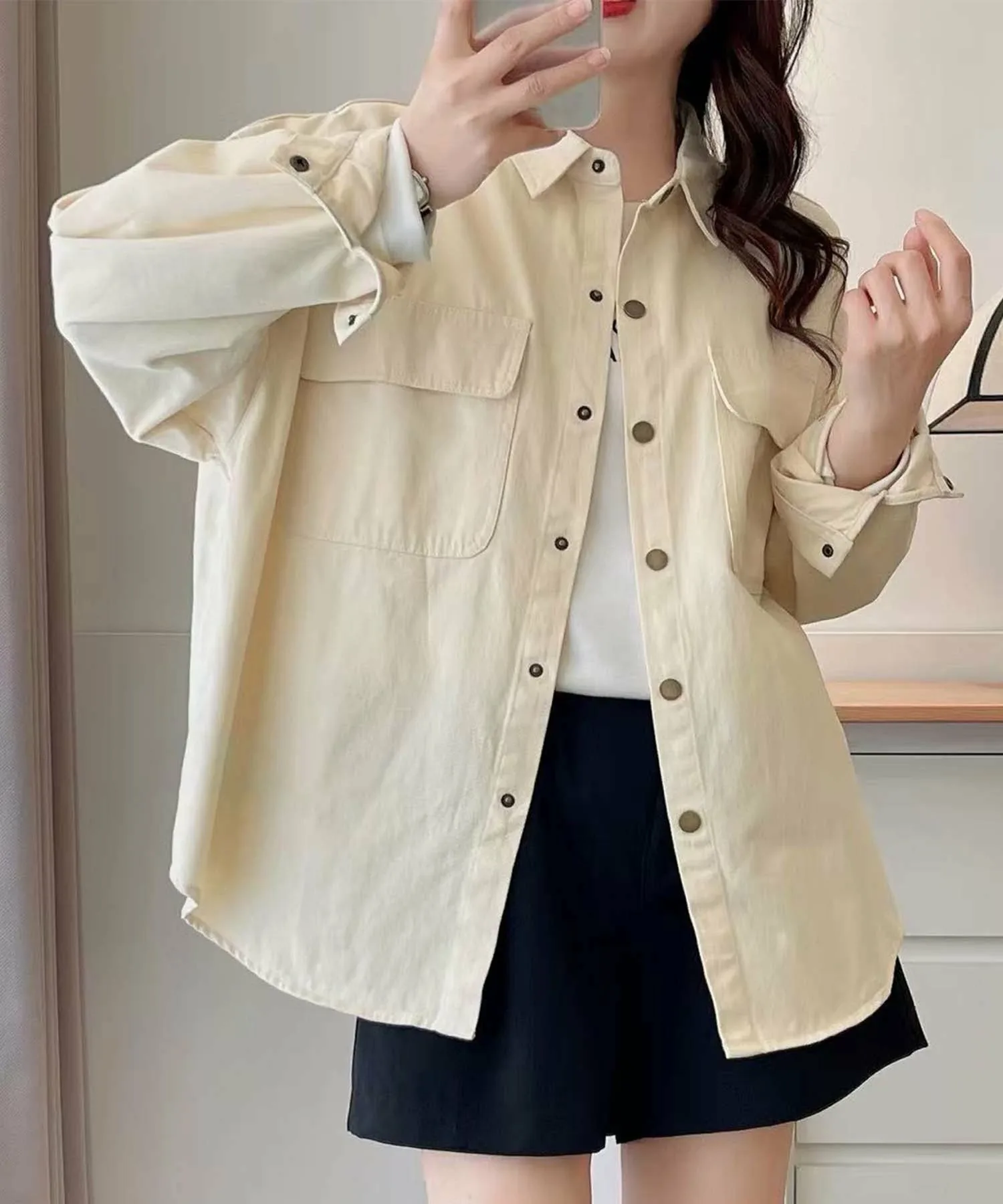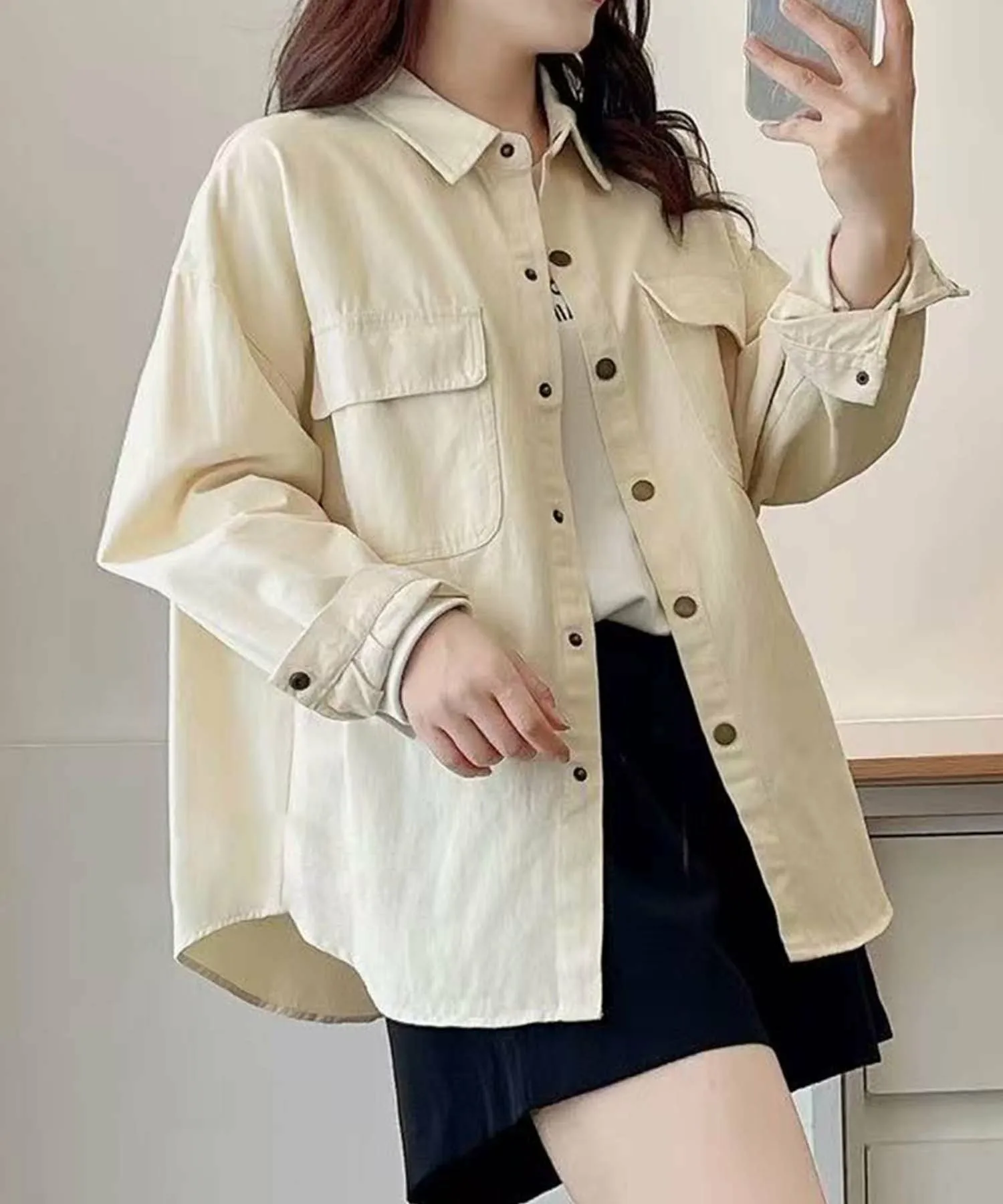 Эта рубашка с длинными рукавами имеет большие накладные карманы с обеих сторон груди. Объемные рукава и свободный силуэт делают ее удобной в ношении. Несмотря на повседневный дизайн, сдержанные цвета делают ее идеальным элементом для создания изысканного образа.
