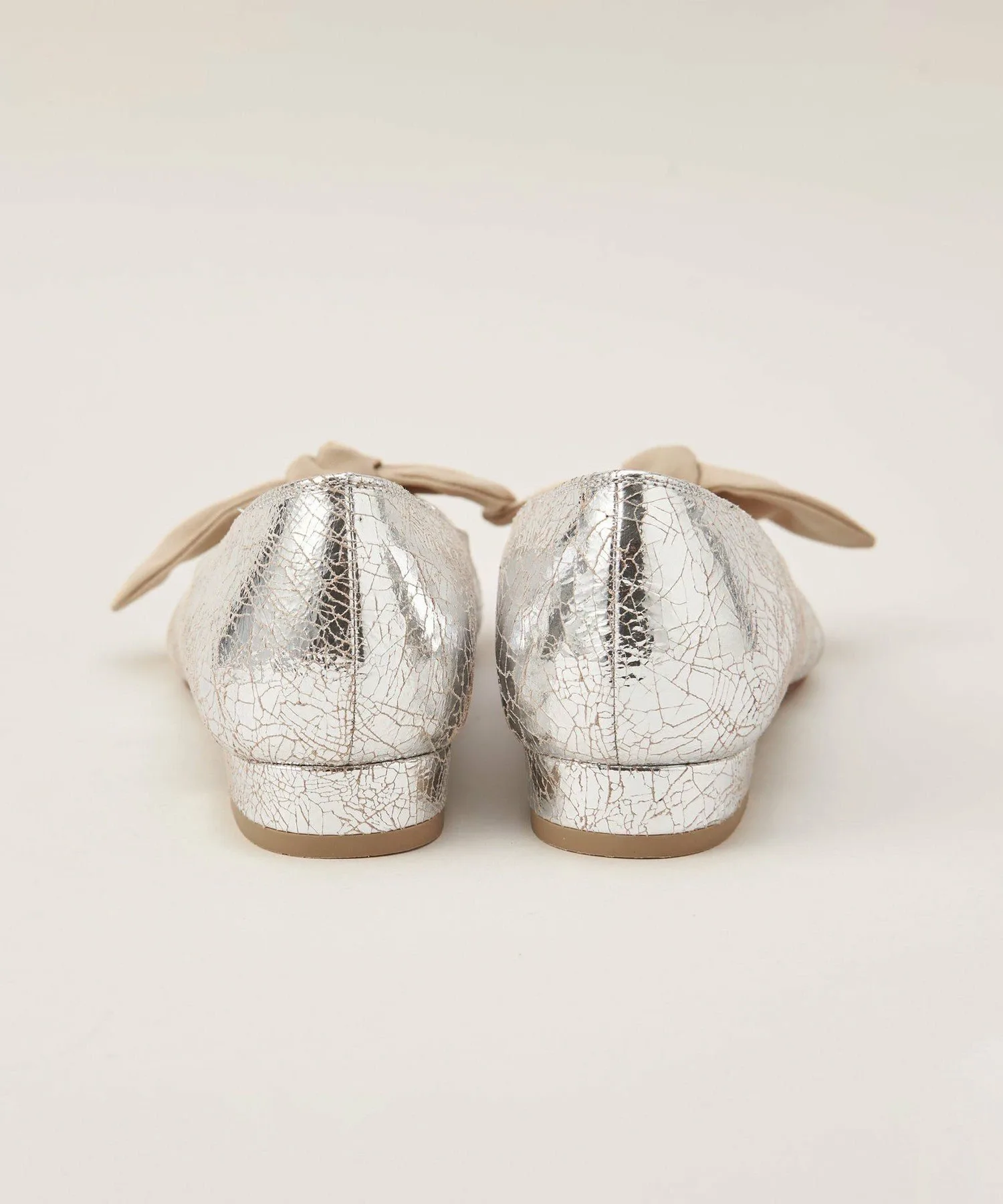 Серебристая версия имеет верх из потрескавшейся фольги с тканевой лентой.