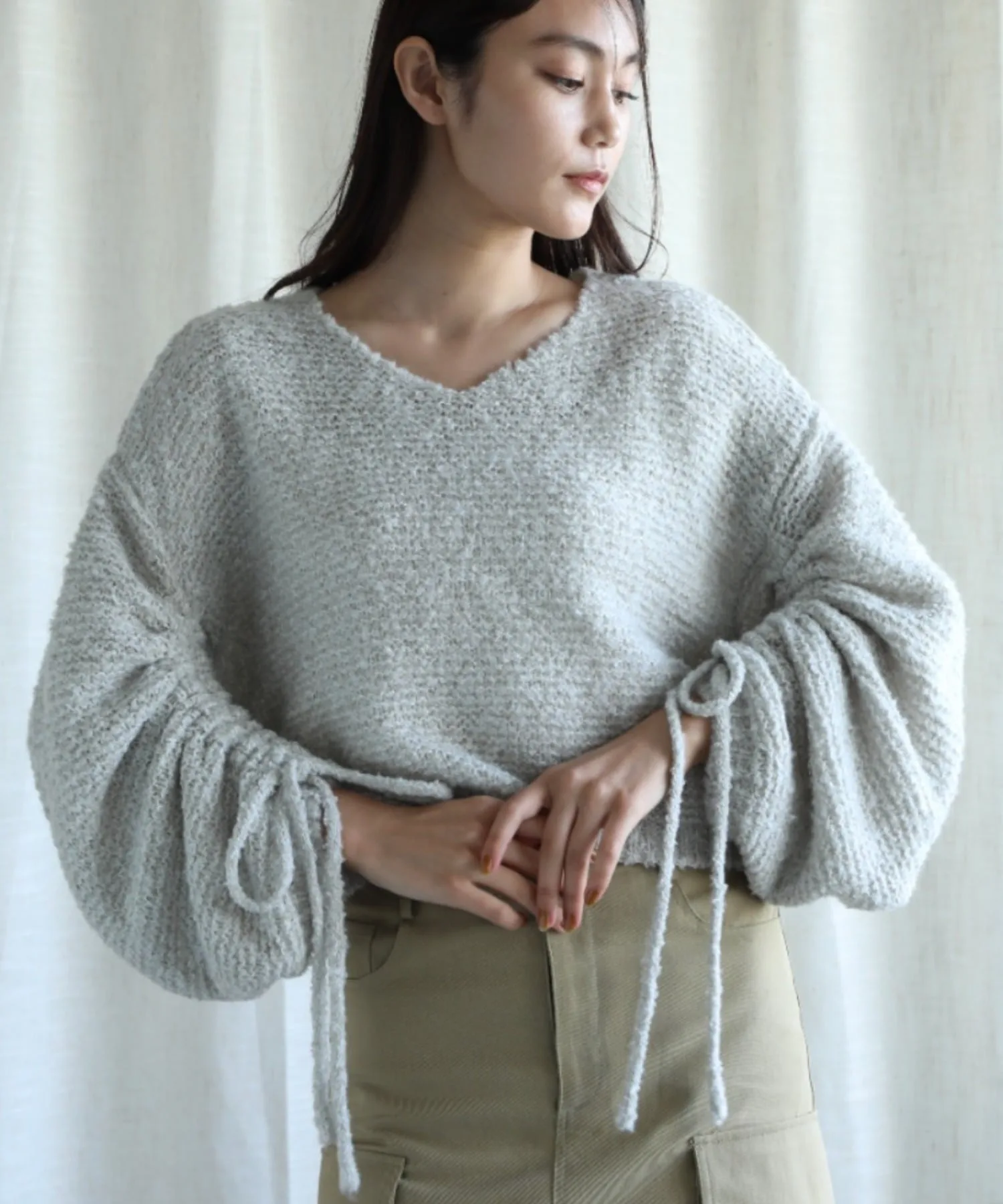 Завязки на рукавах создают трехмерный эффект, придавая топу милый вид. Вы можете регулировать объем и длину рукавов, затягивая их, поэтому вы можете настроить силуэт по своему вкусу в зависимости от вашего наряда.