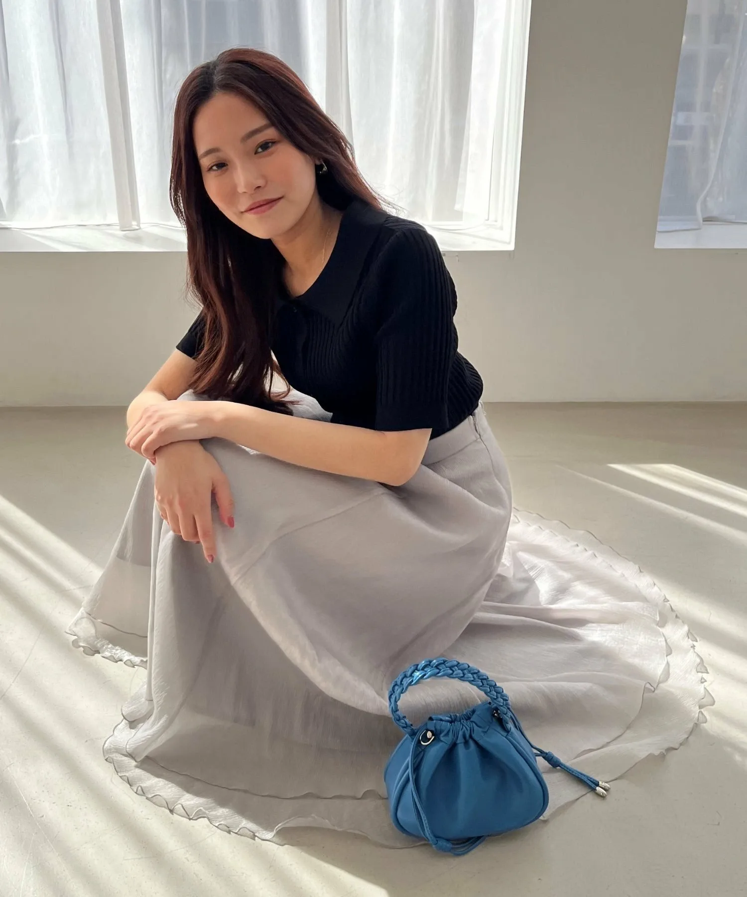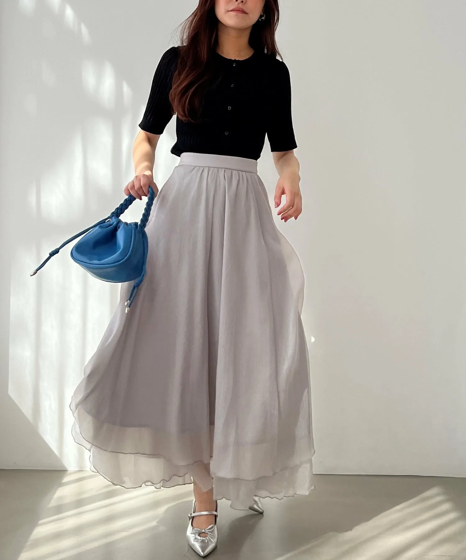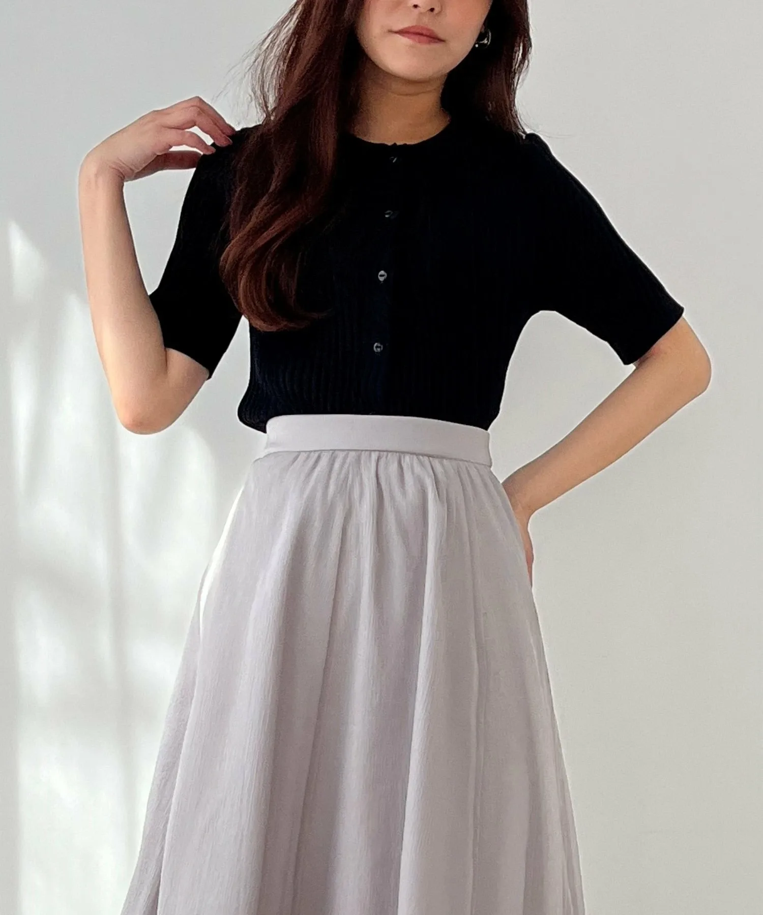 Застегивается на пуговицу спереди, что позволяет менять внешний вид, расстегивая и застегивая изделие.