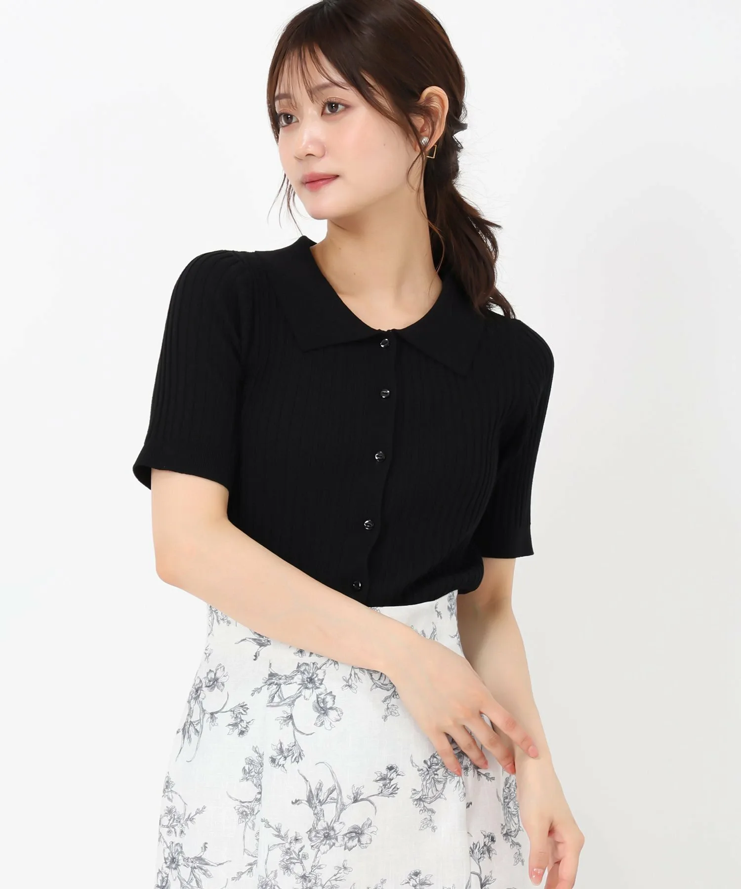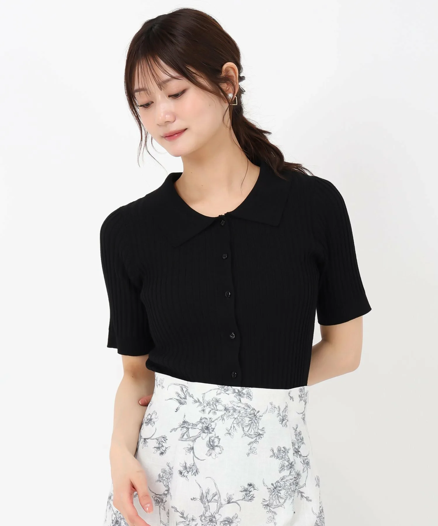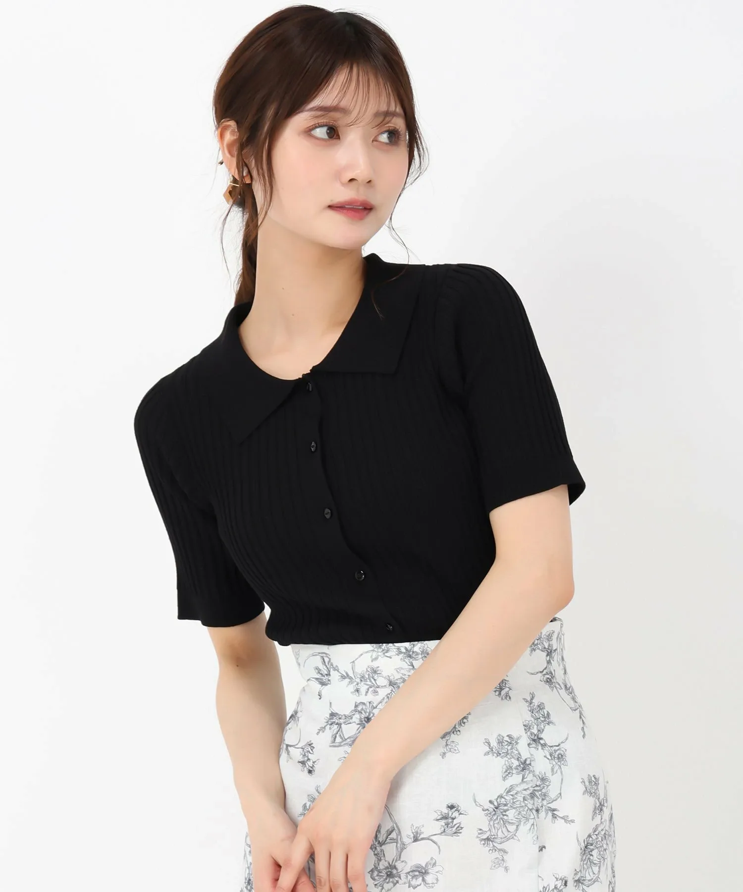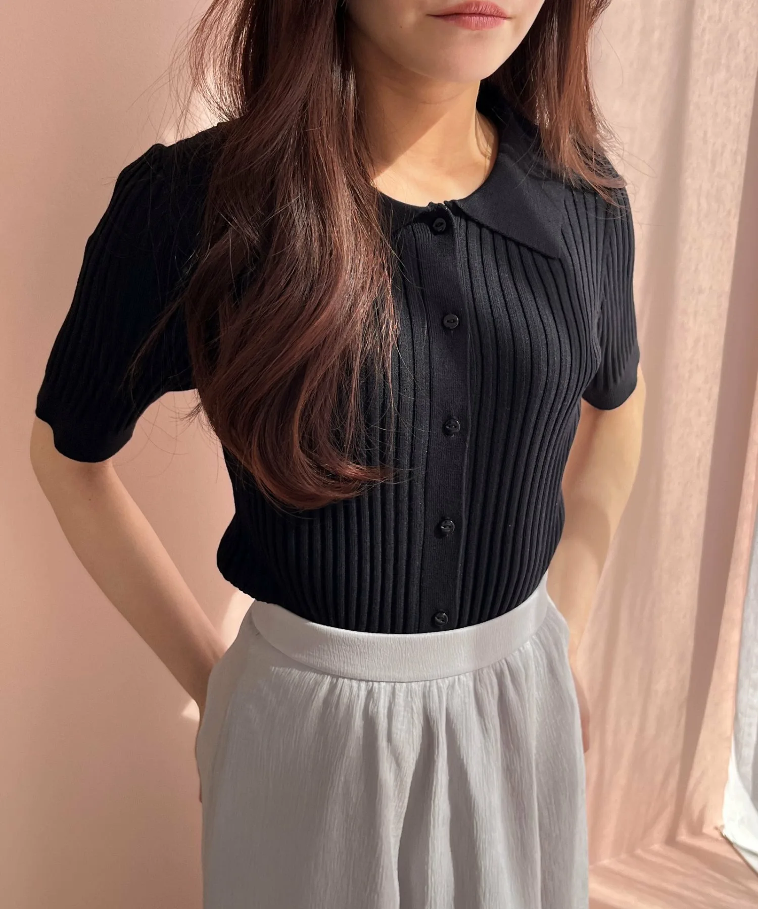 Трикотажное изделие с воротником, создающее элегантный образ.