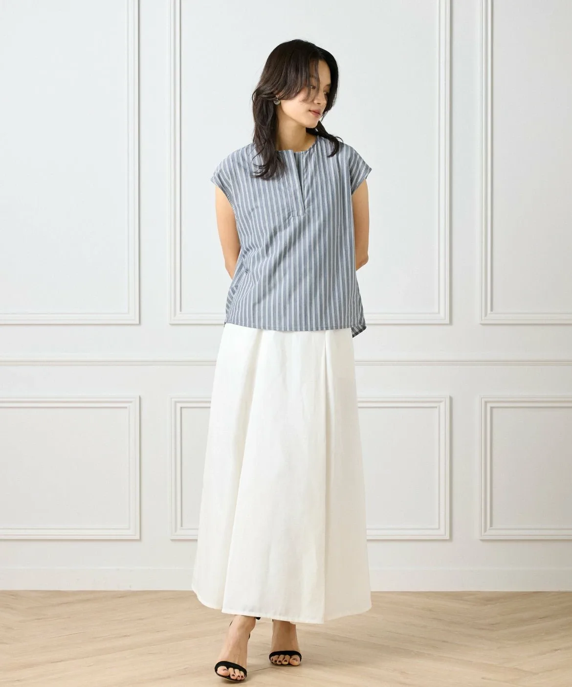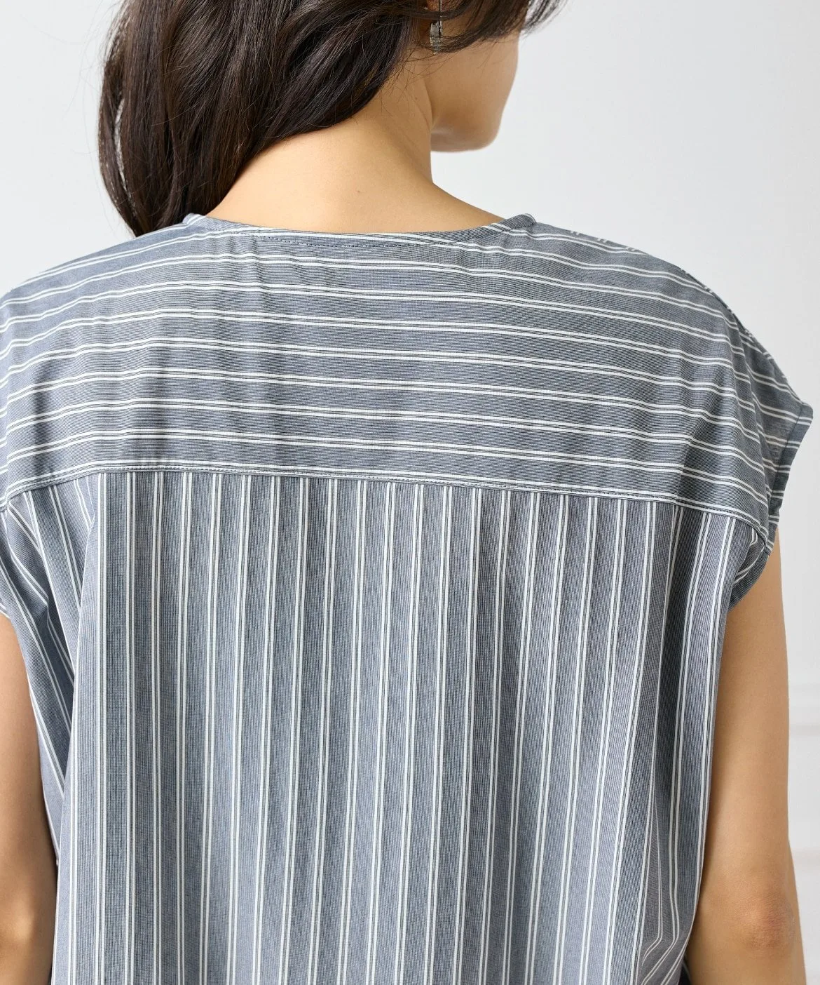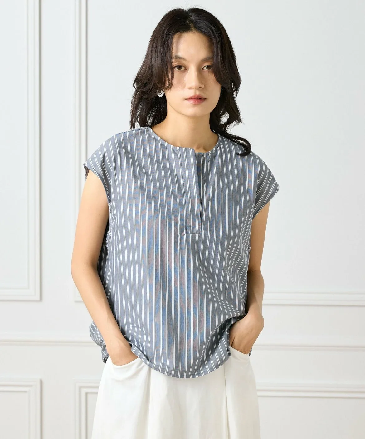 Эта блузка изготовлена на редкой высокоточной вязальной машине 46G, в результате чего получается плотный, деликатный трикотаж. Ее очарование заключается в изысканном полосатом узоре, гладкости, комфорте и мягкости.