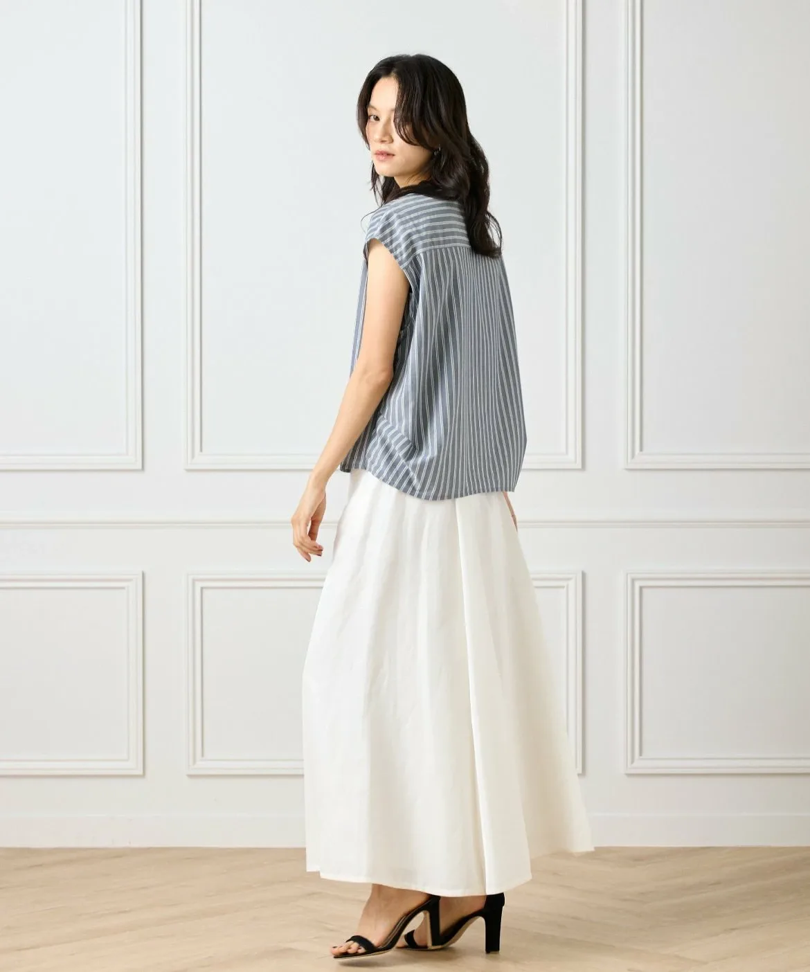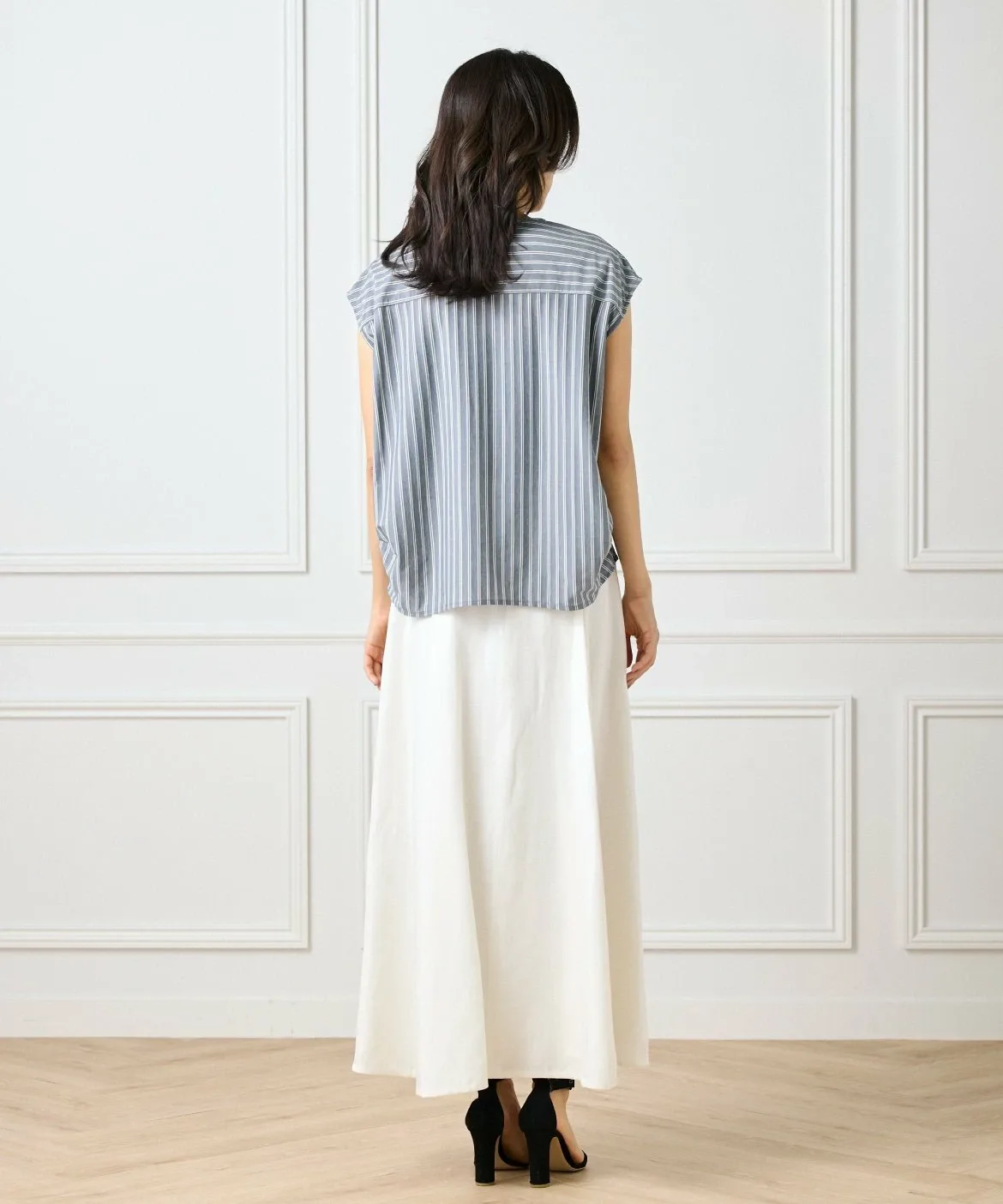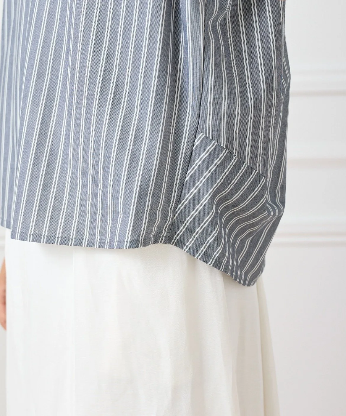 Эта блузка изготовлена на редкой высокоточной вязальной машине 46G, в результате чего получается плотный, деликатный трикотаж. Ее очарование заключается в изысканном полосатом узоре, гладкости, комфорте и мягкости.