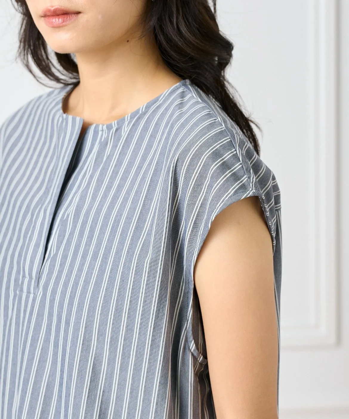 Эта свободная блузка с изысканным полосатым узором изготовлена из гладкого, комфортного и мягкого материала. Ее силуэт «кокон» делает ее очень привлекательной. Длина закрывает бедра, а прозрачность и открытый вырез практически незаметны, что делает ее действительно удобной вещью для жаркой погоды.