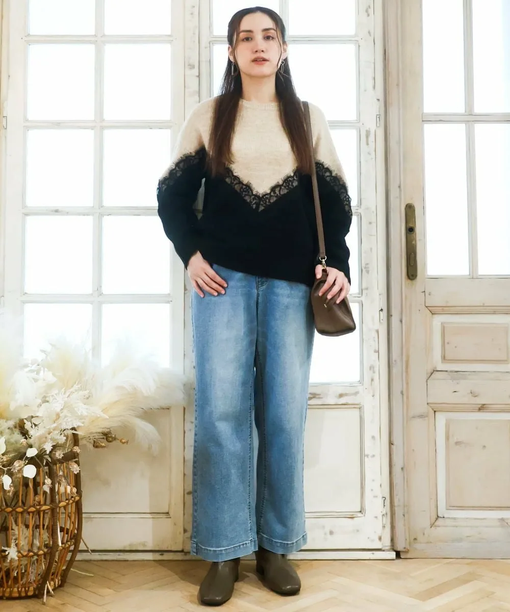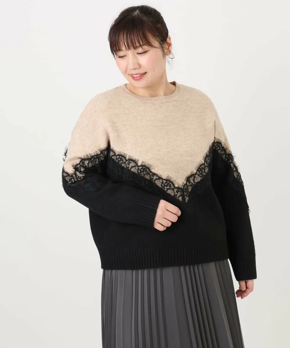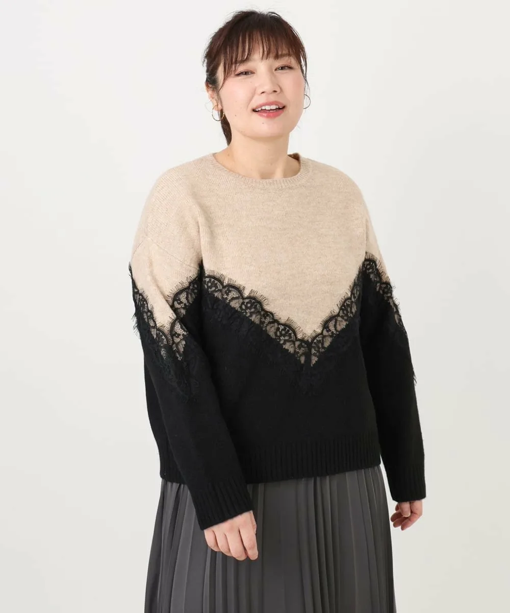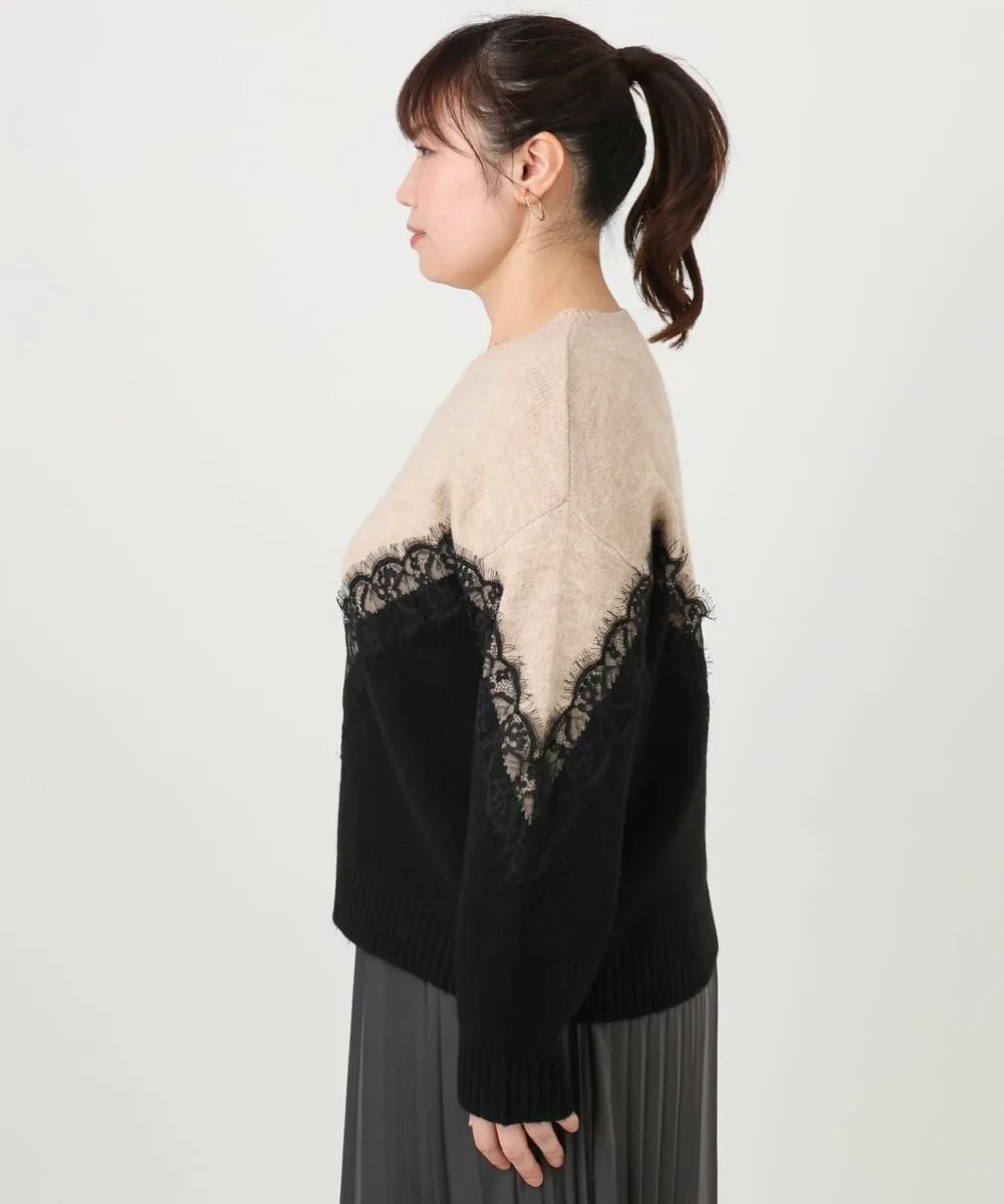 Трикотаж с милым, элегантным дизайном, украшенный смелым двухцветным кружевом.