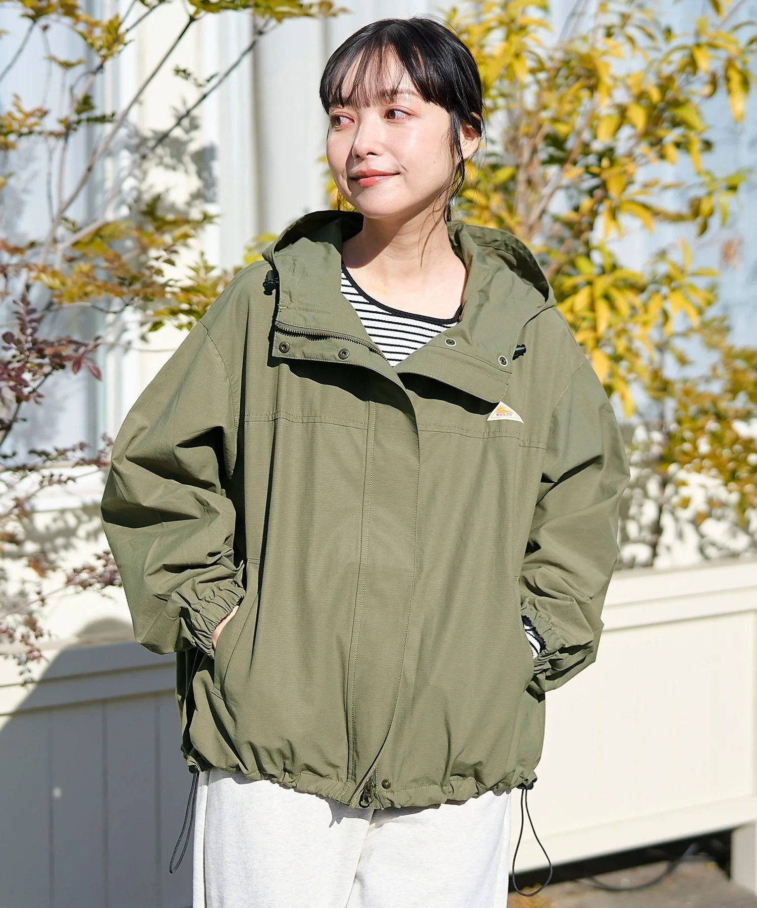 Сборки на рукавах и шнурок на шее помогают защитить от ветра, что делает куртку очень удобной.