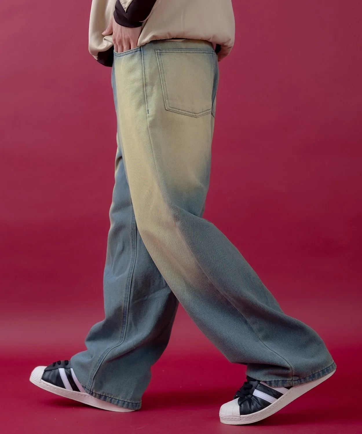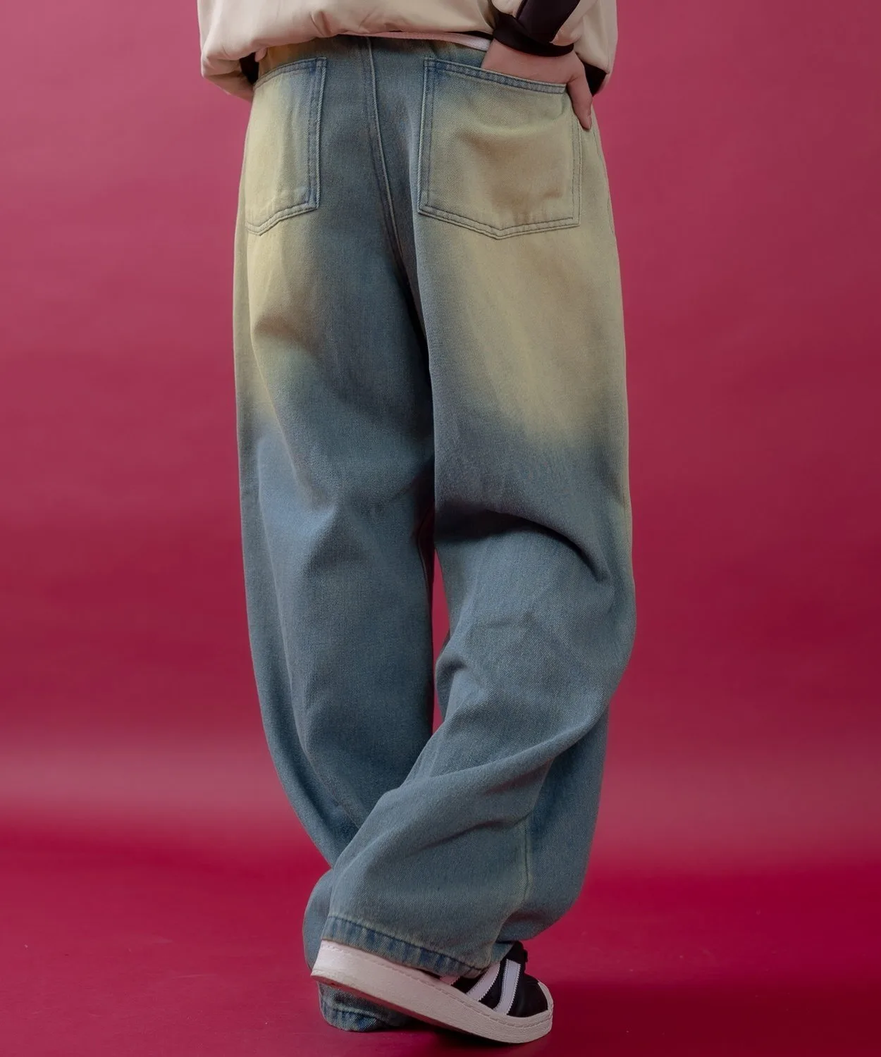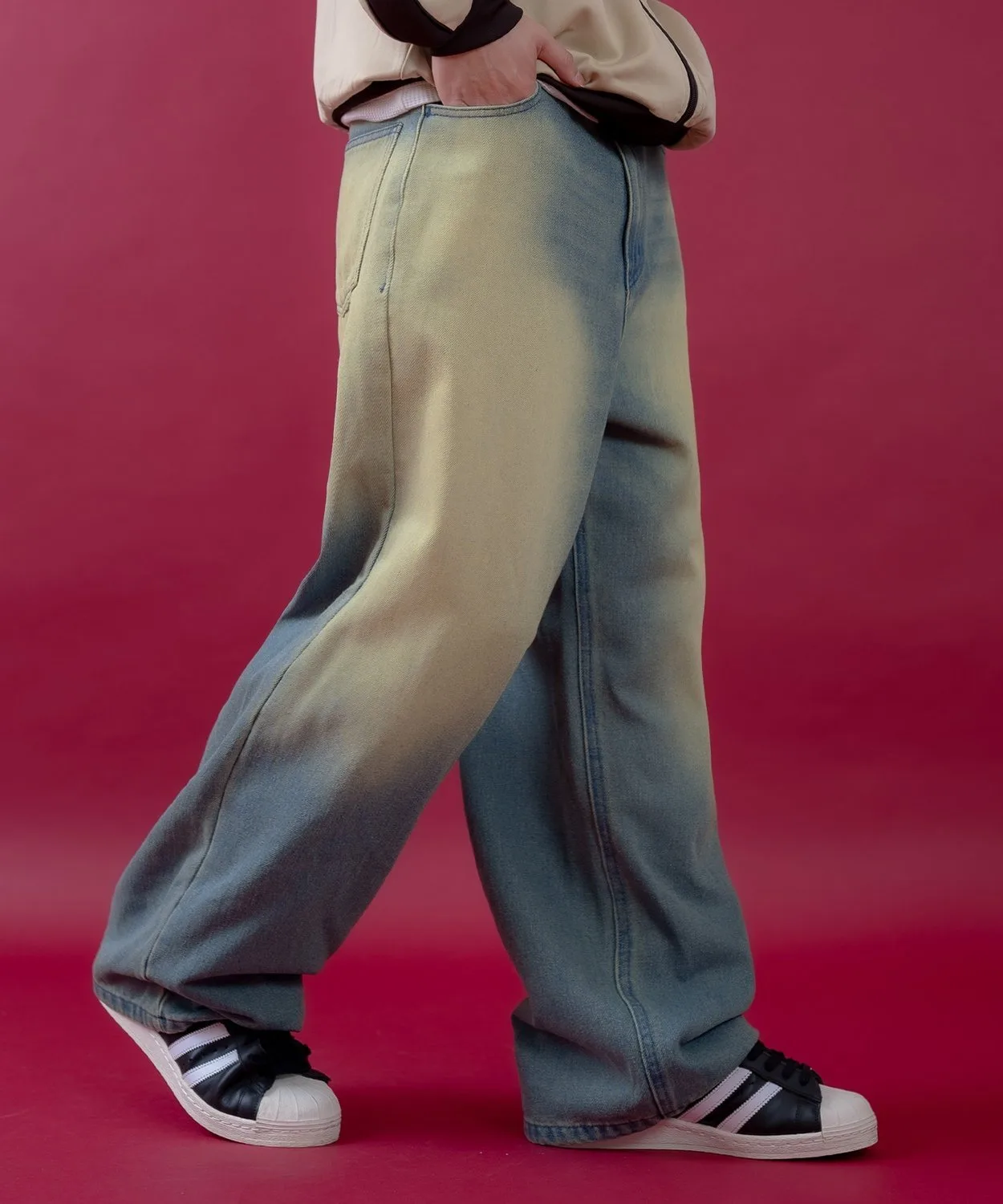 Джинсовые брюки свободного кроя с умеренной степенью потертости и винтажным оттенком, которые обязательно привлекут ваше внимание.