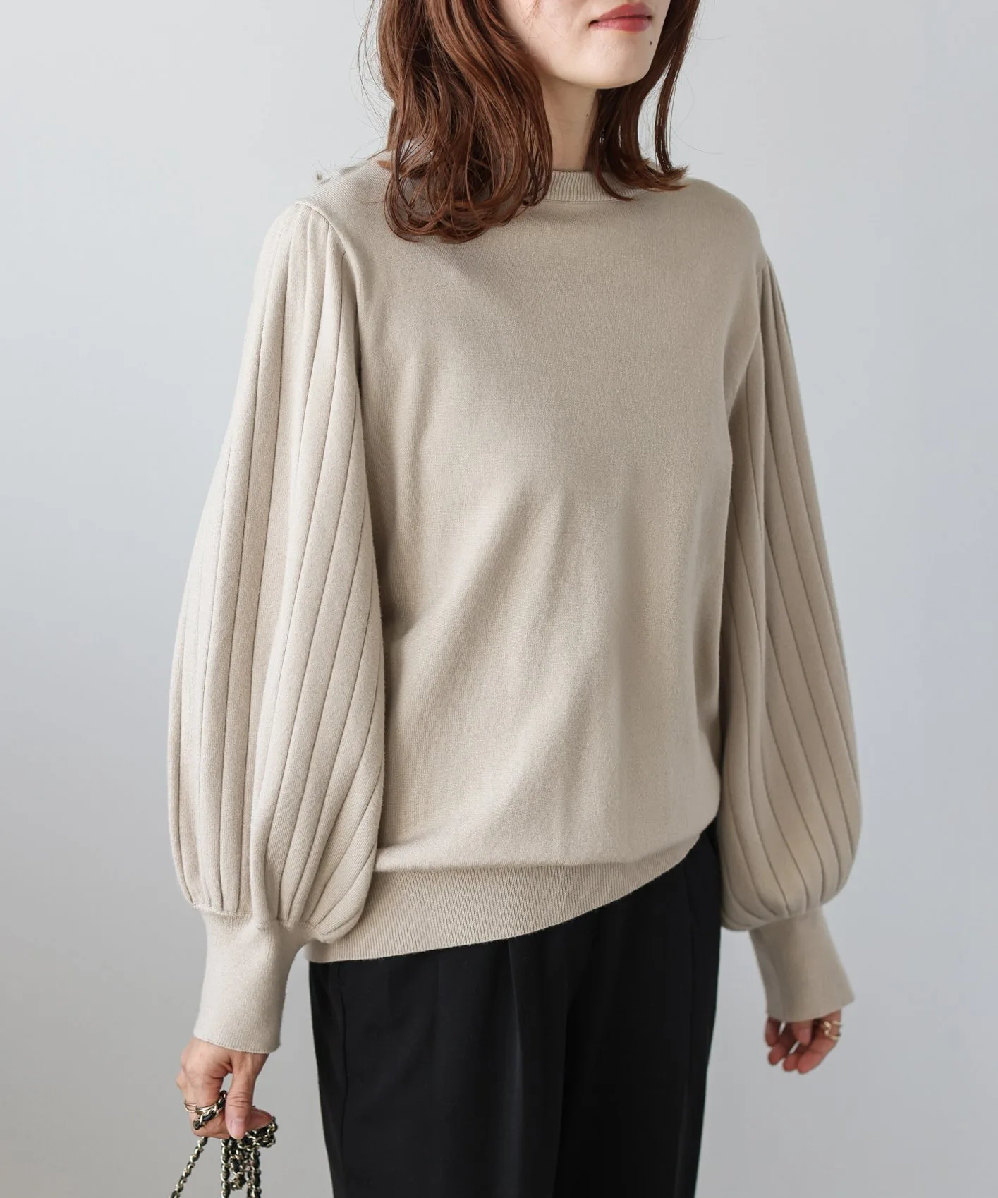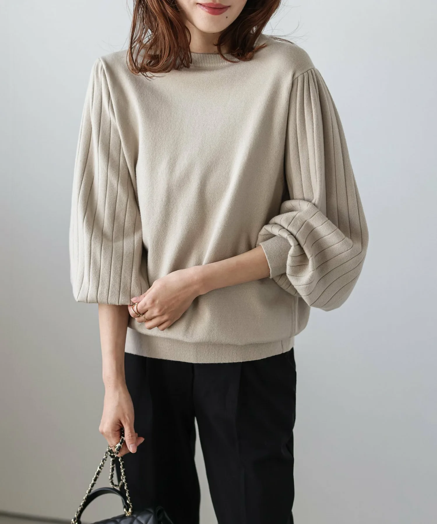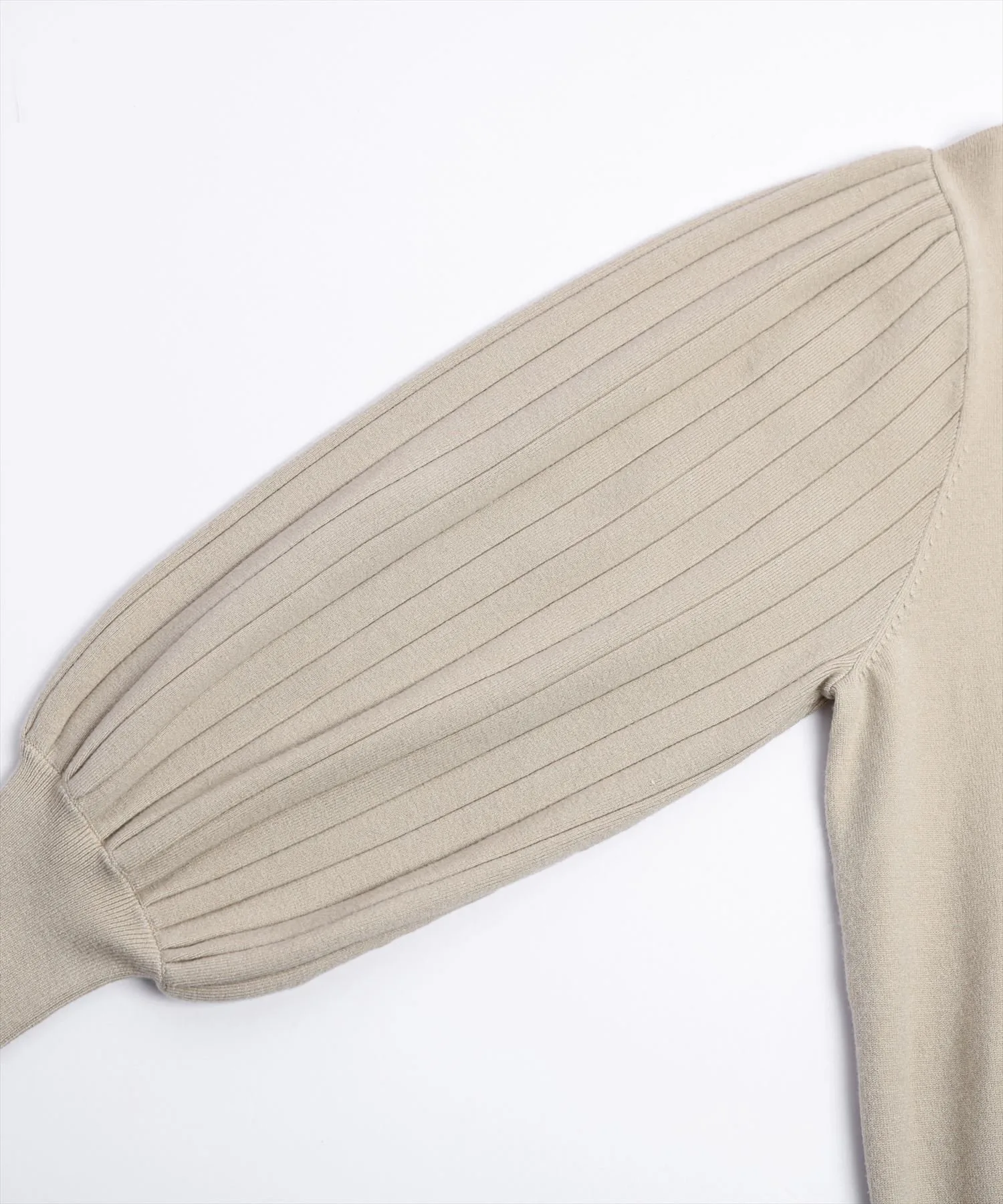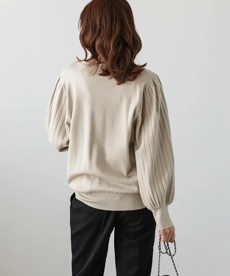 Широкая ребристая вязка создает выразительные плиссированные объемные рукава