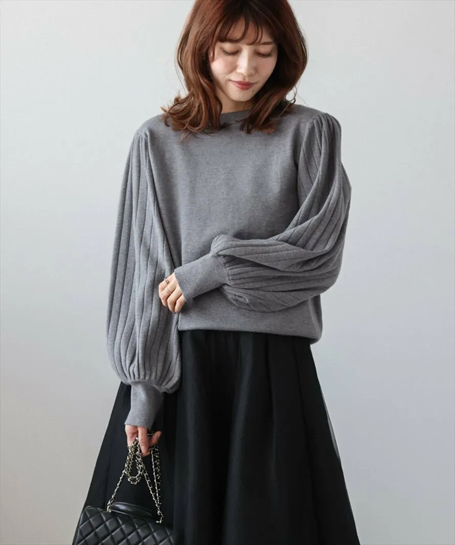 Широкая ребристая вязка создает выразительные плиссированные объемные рукава