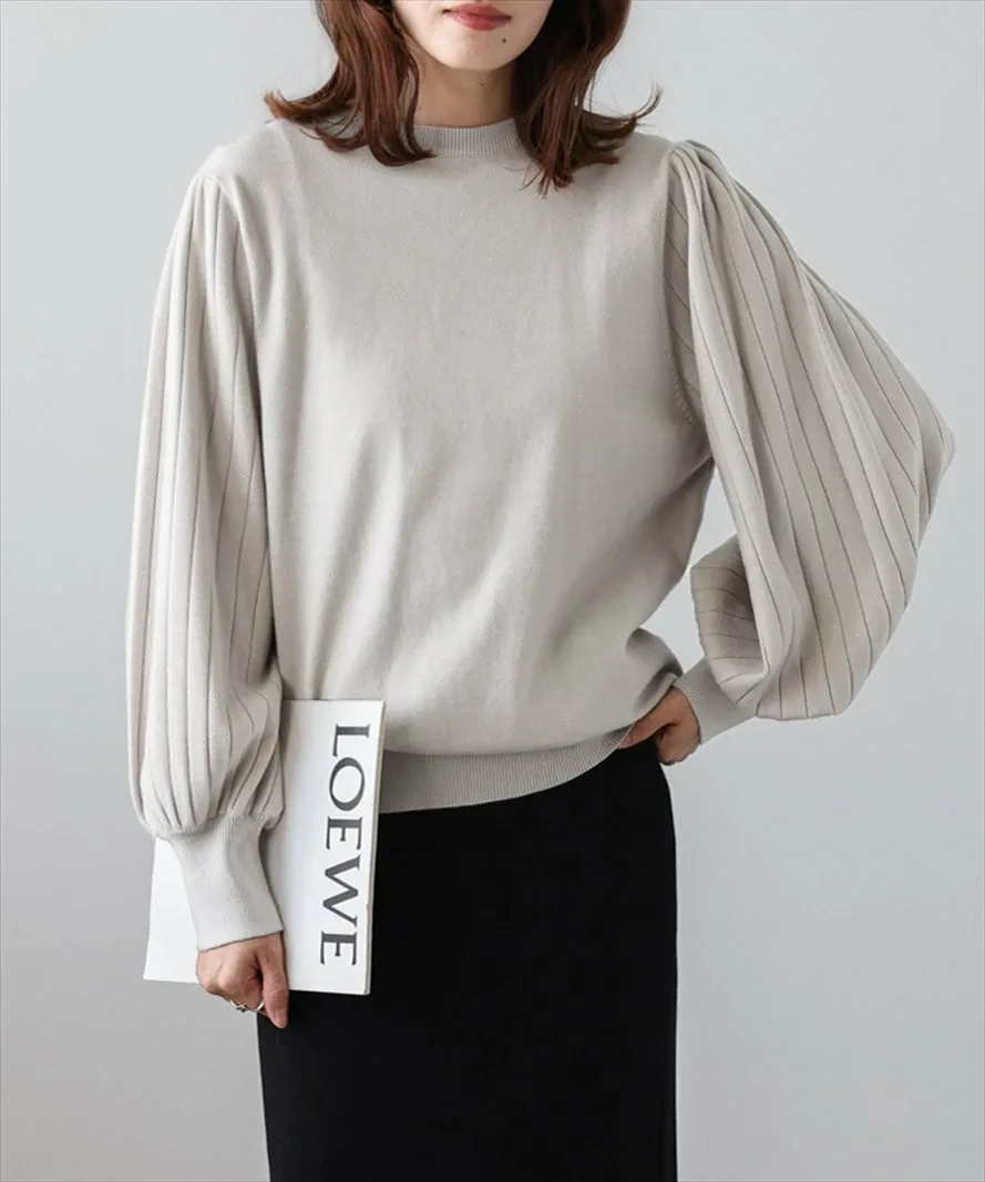 Широкая ребристая вязка создает выразительные плиссированные объемные рукава