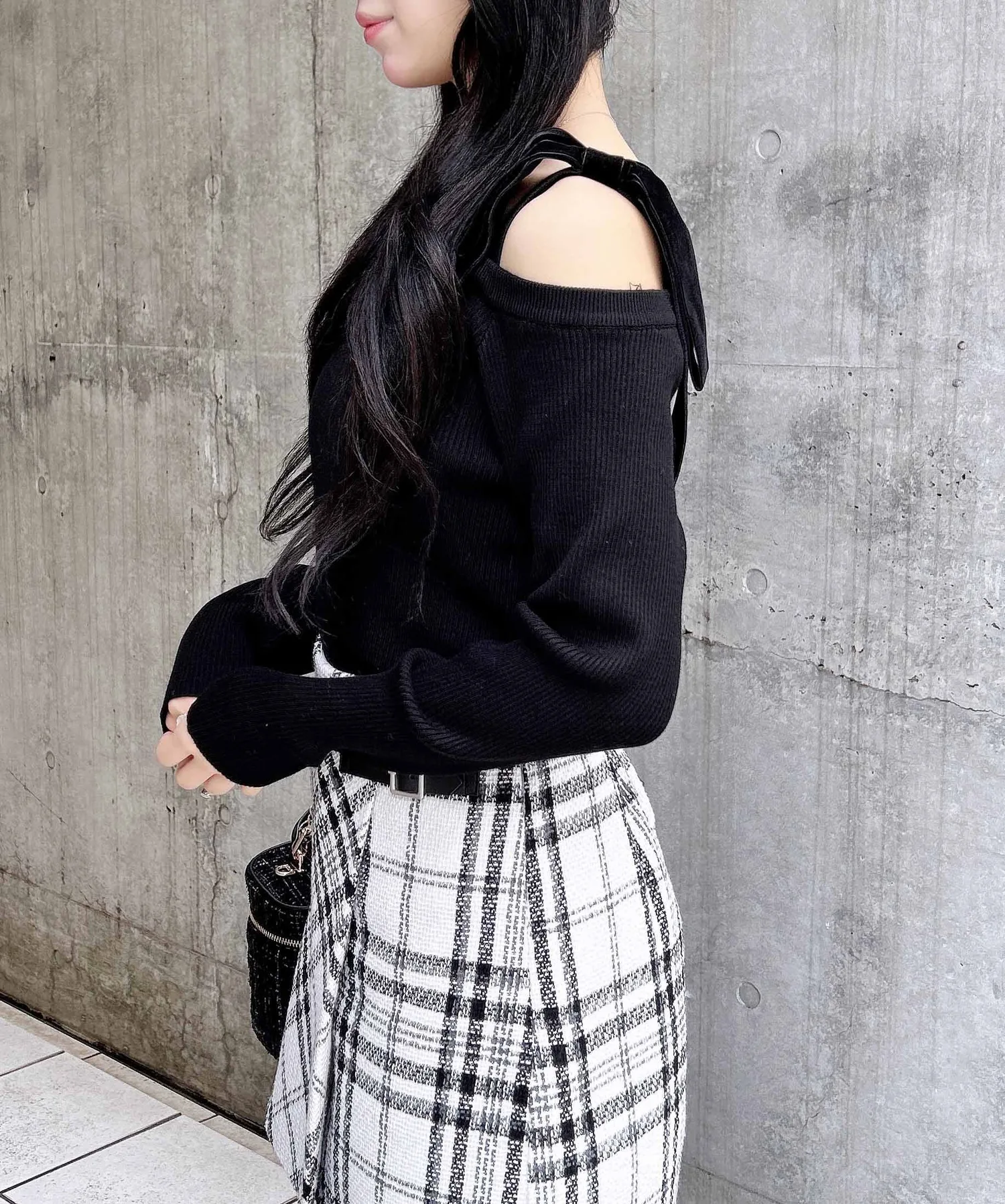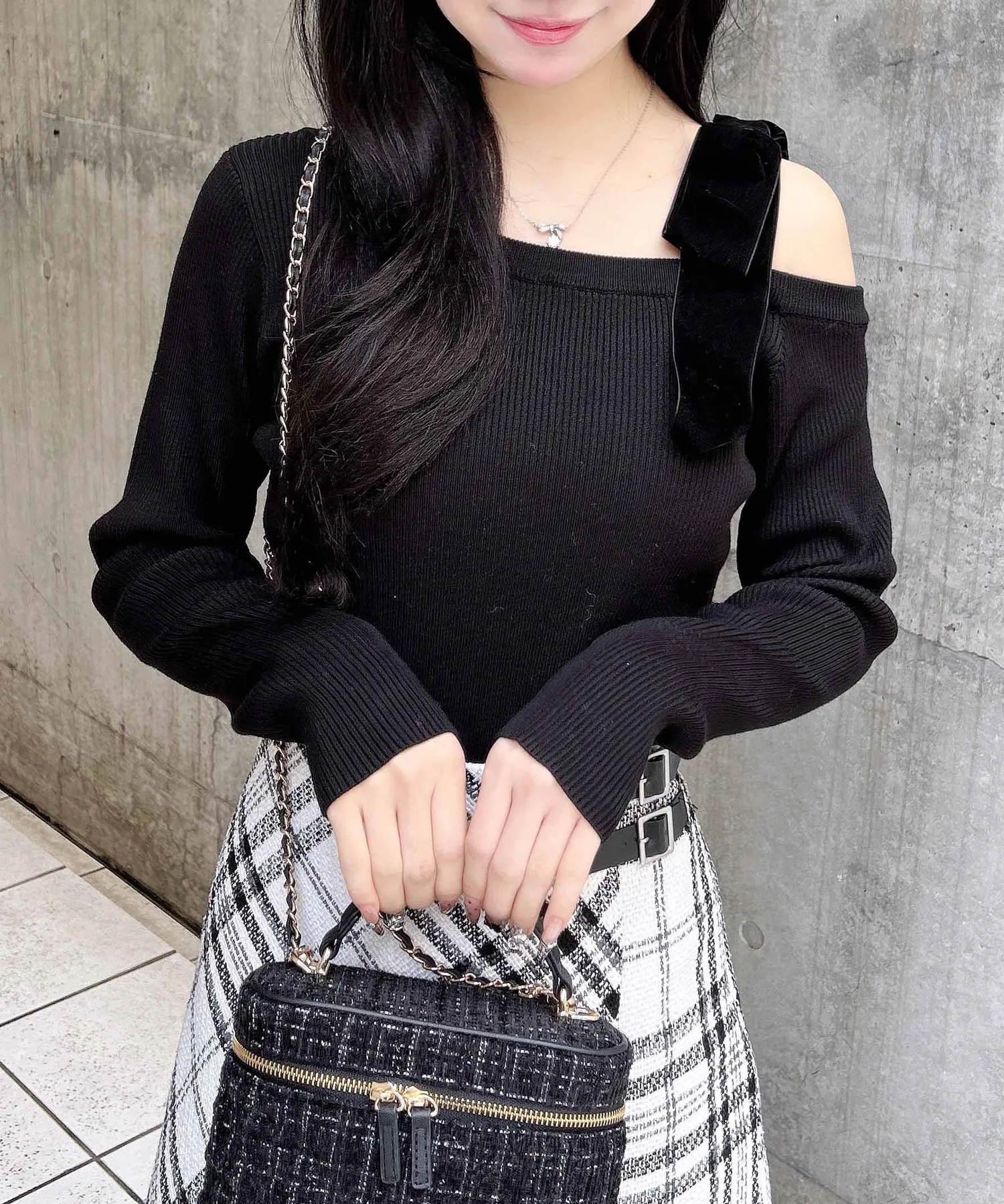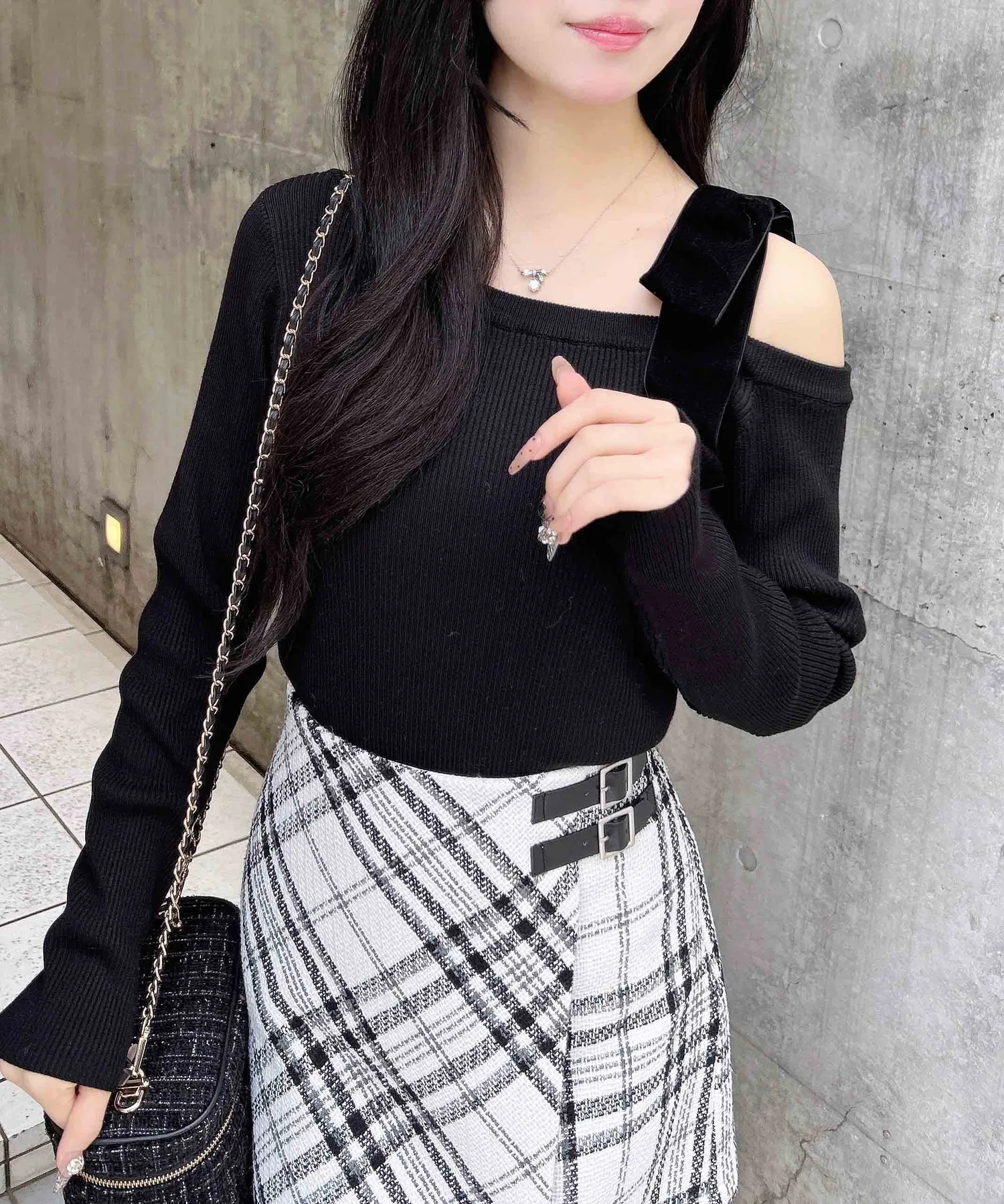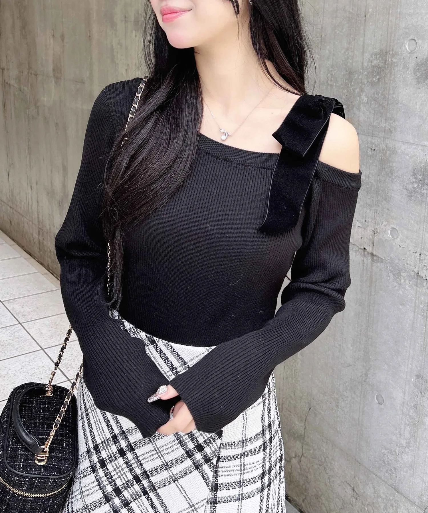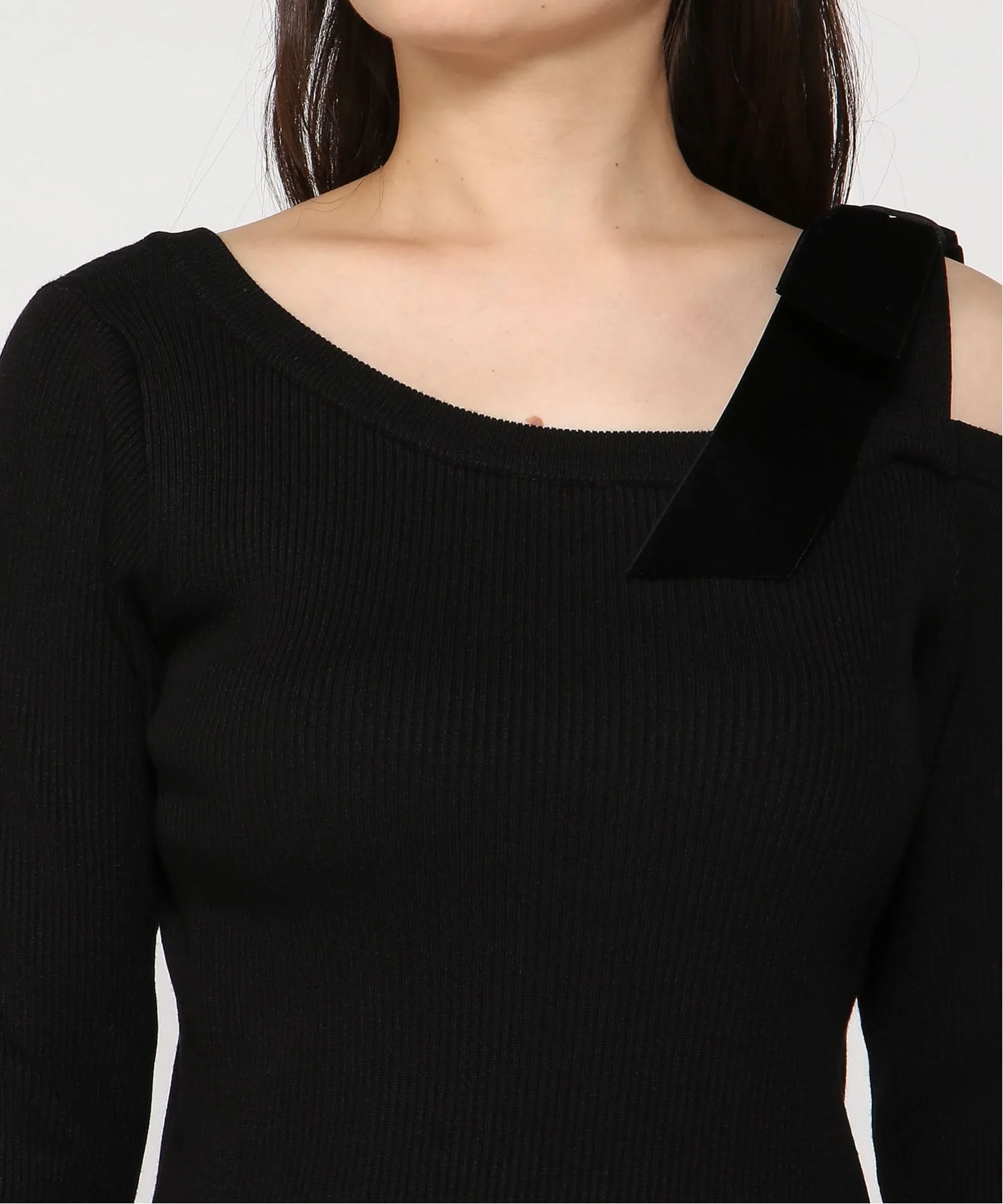 [Версия нашего популярного трикотажа на одно плечо с велюровой лентой♡]