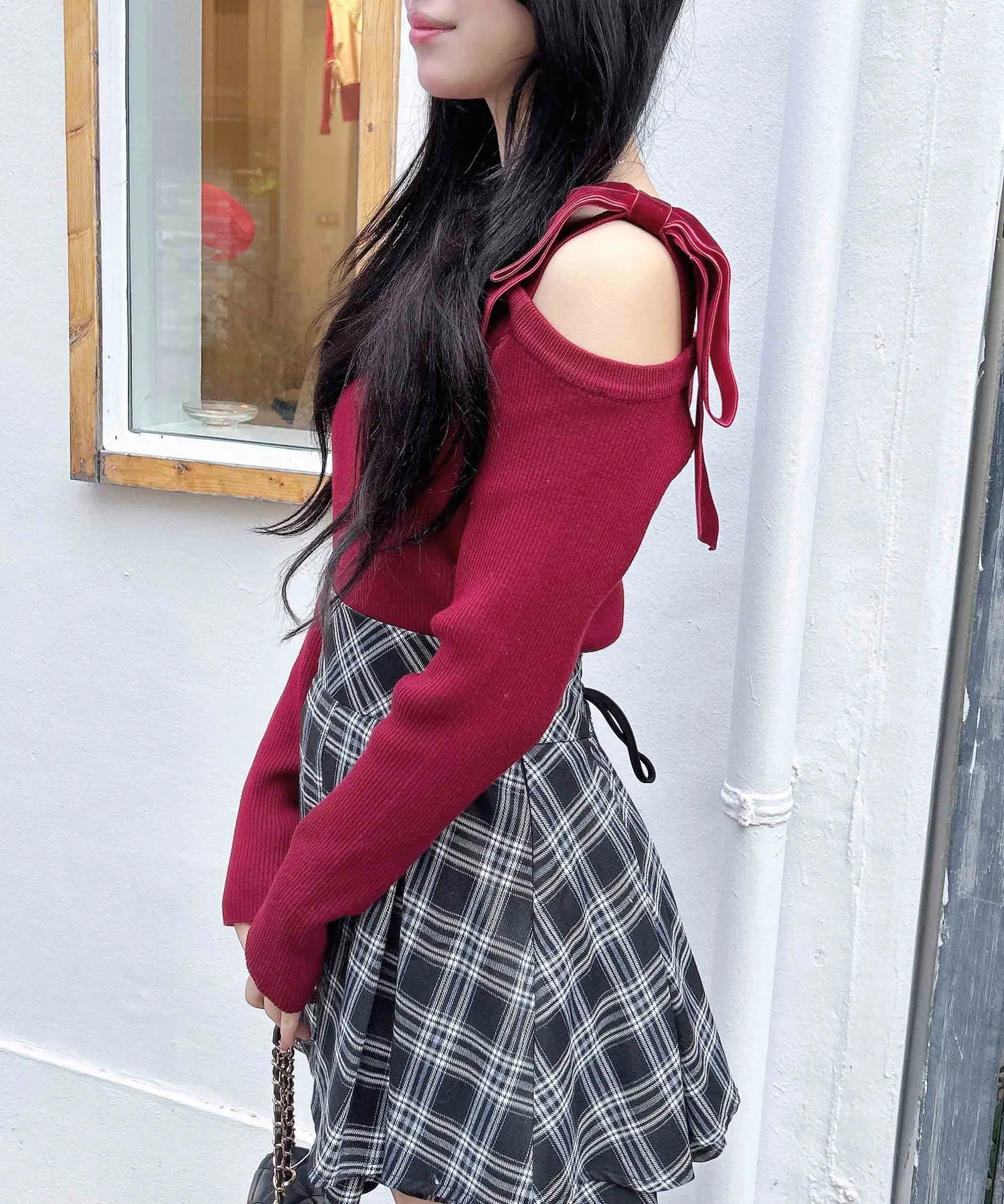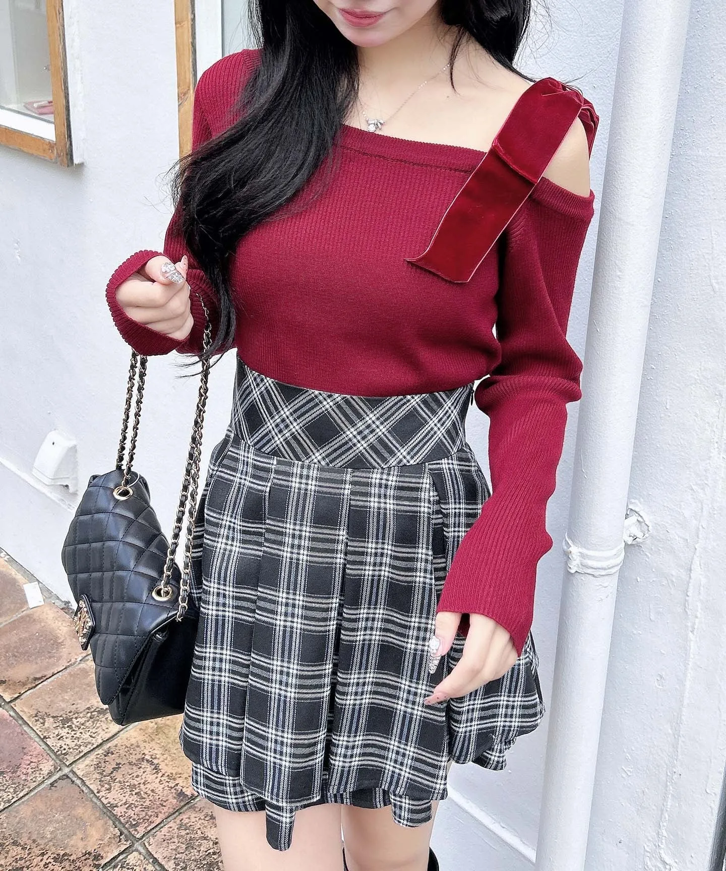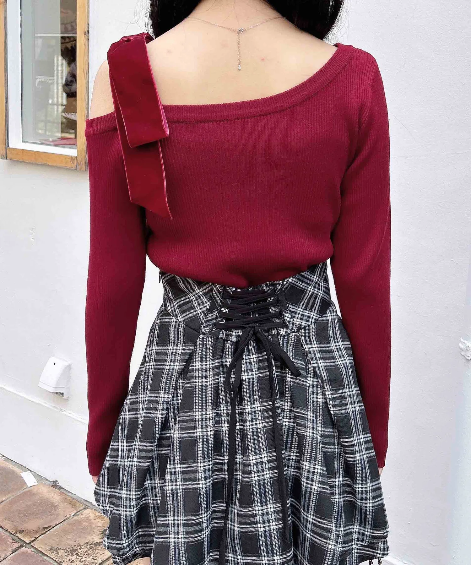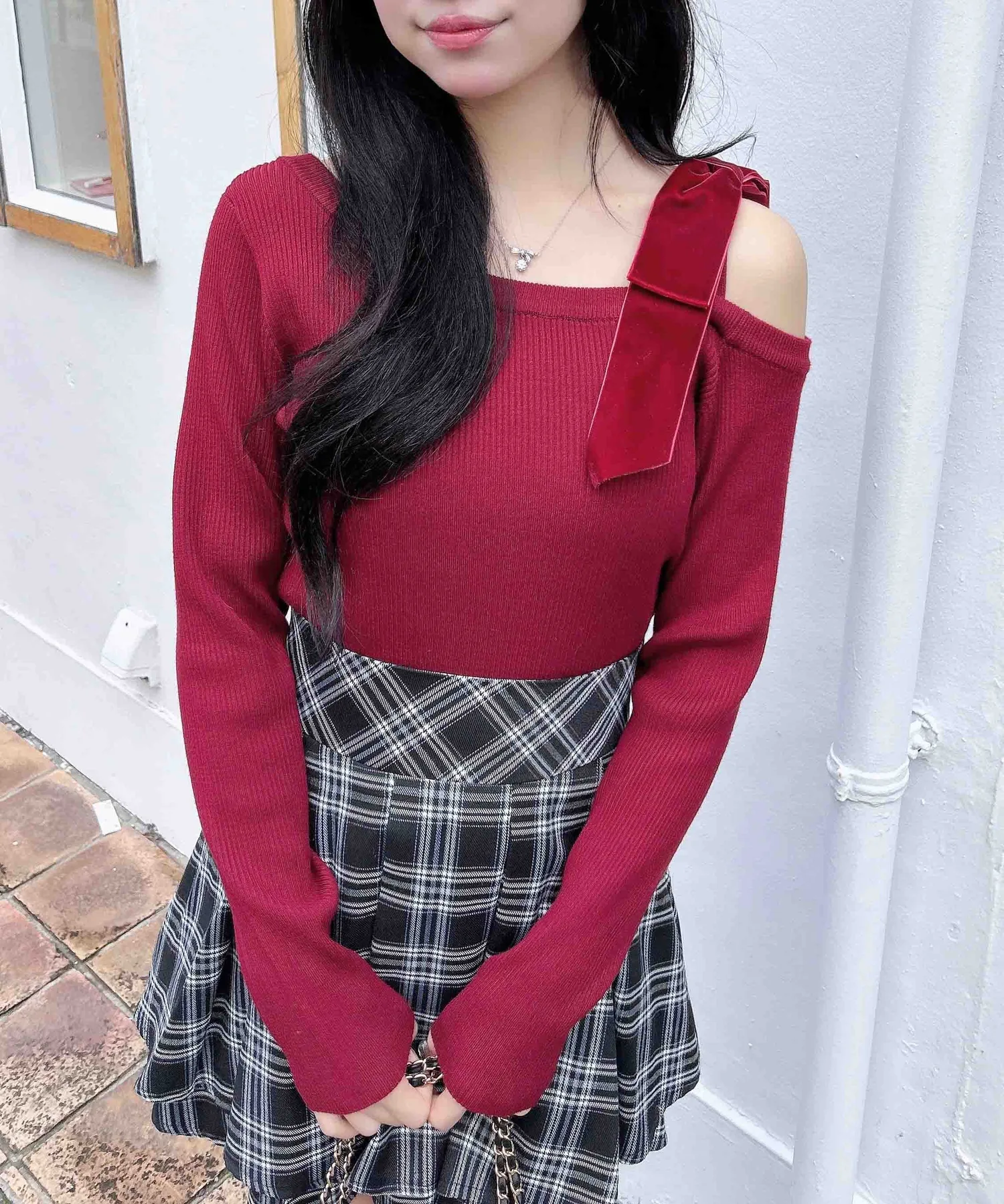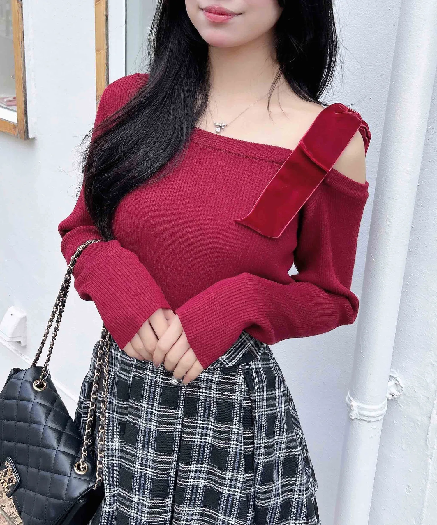 [Версия нашего популярного трикотажа на одно плечо с велюровой лентой♡]