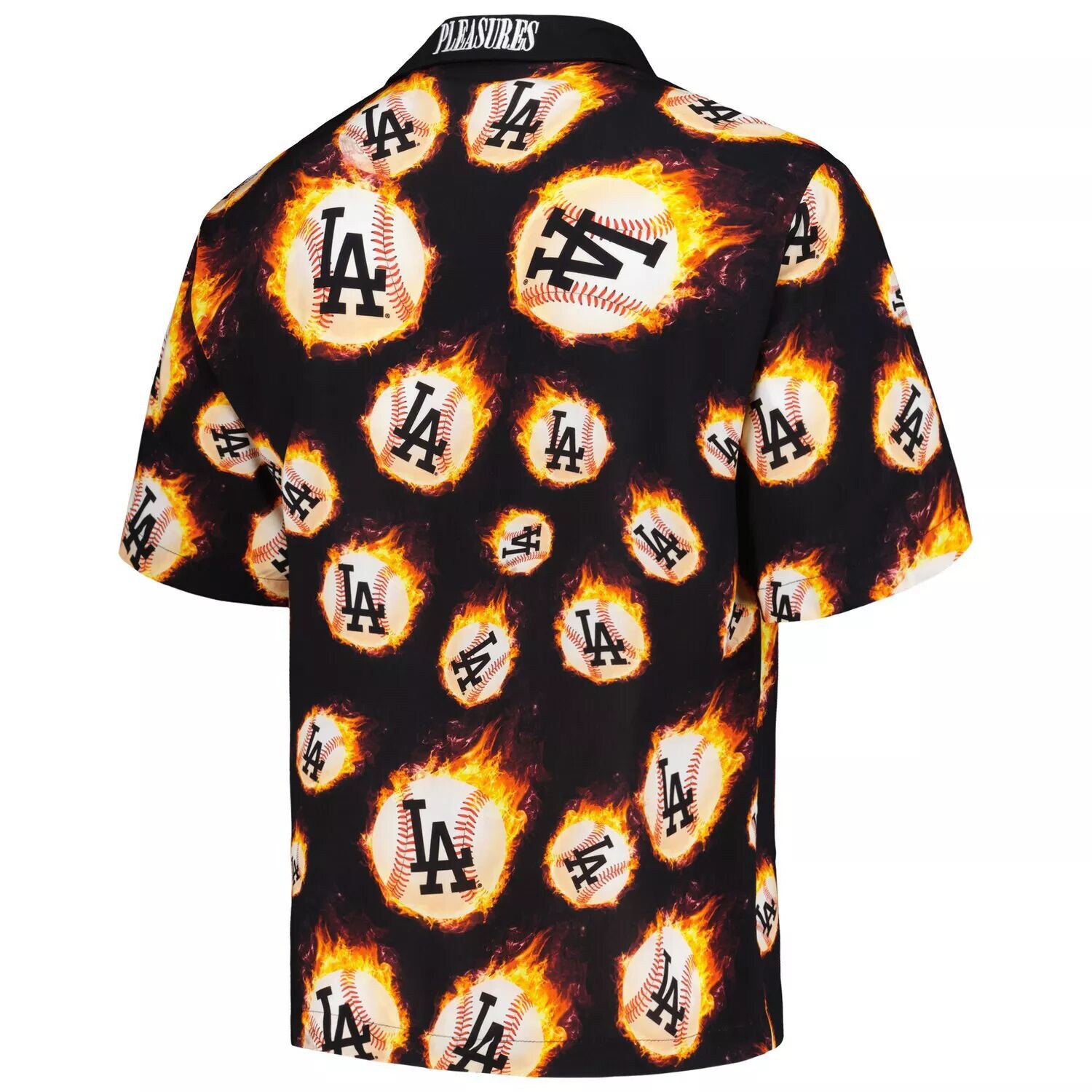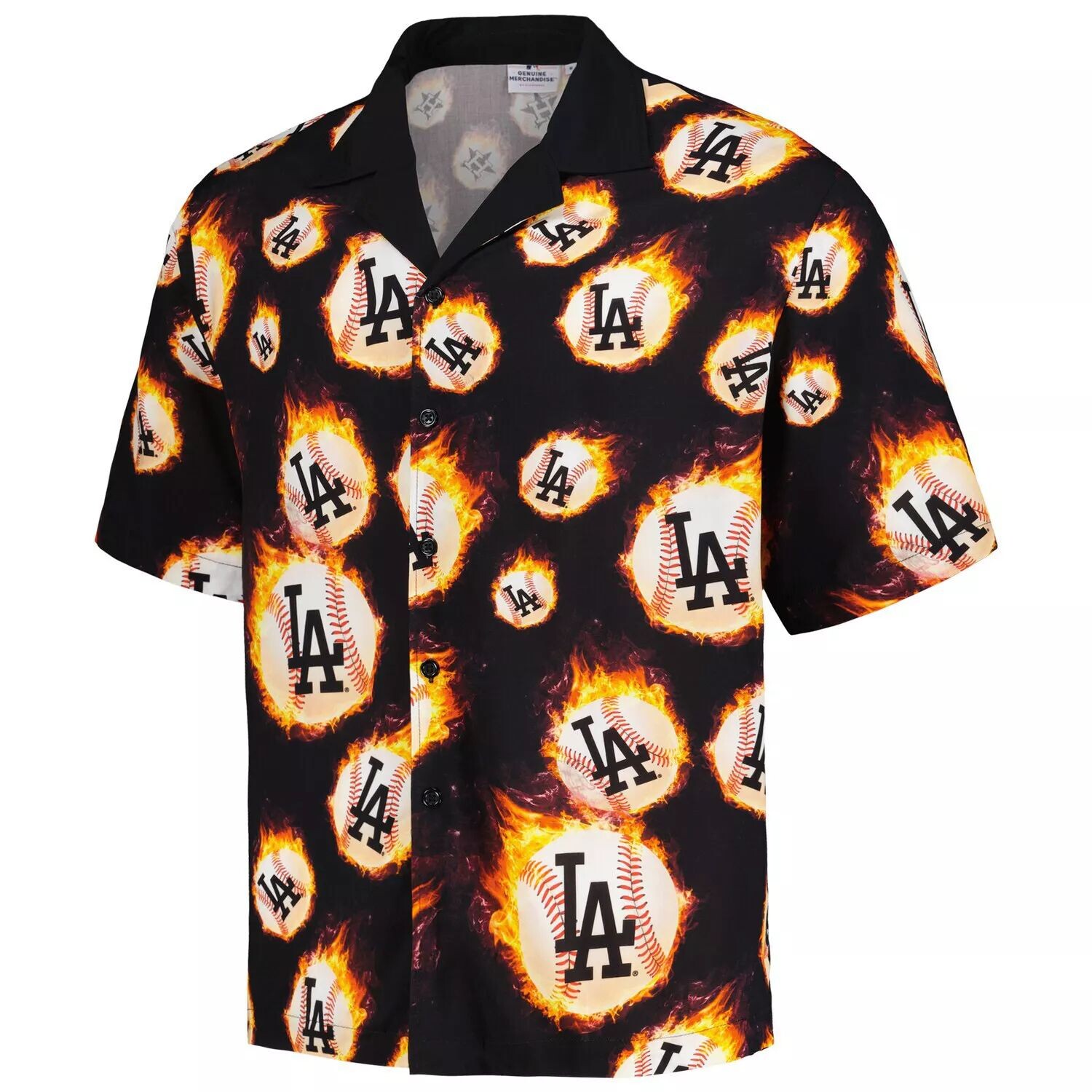 Мужская черная рубашка на пуговицах Los Angeles Dodgers Flame Fireball