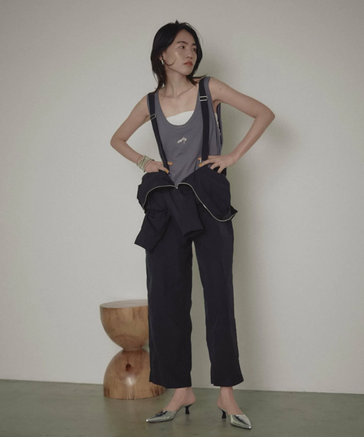 - Двусторонний крой позволяет носить его с закатанными рукавами или с внутренними подтяжками, накинутыми на плечи, что делает его центральным элементом вашего образа!