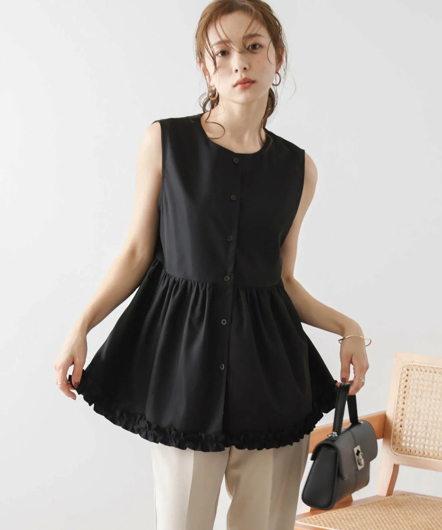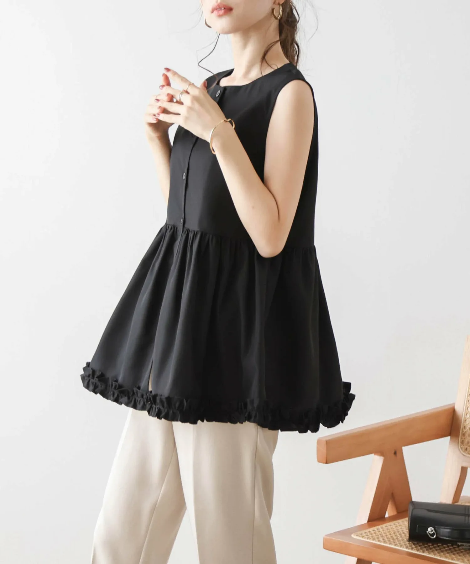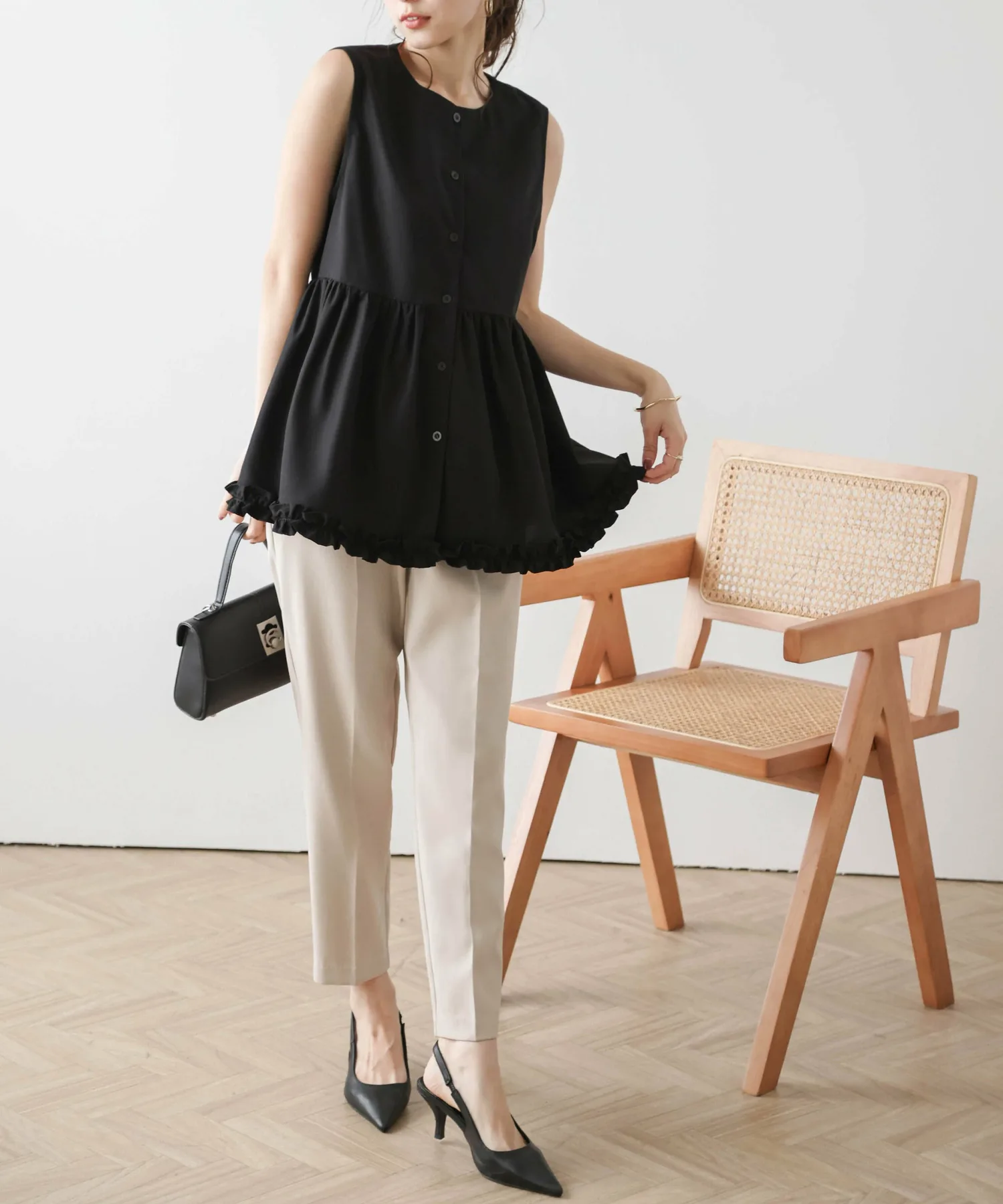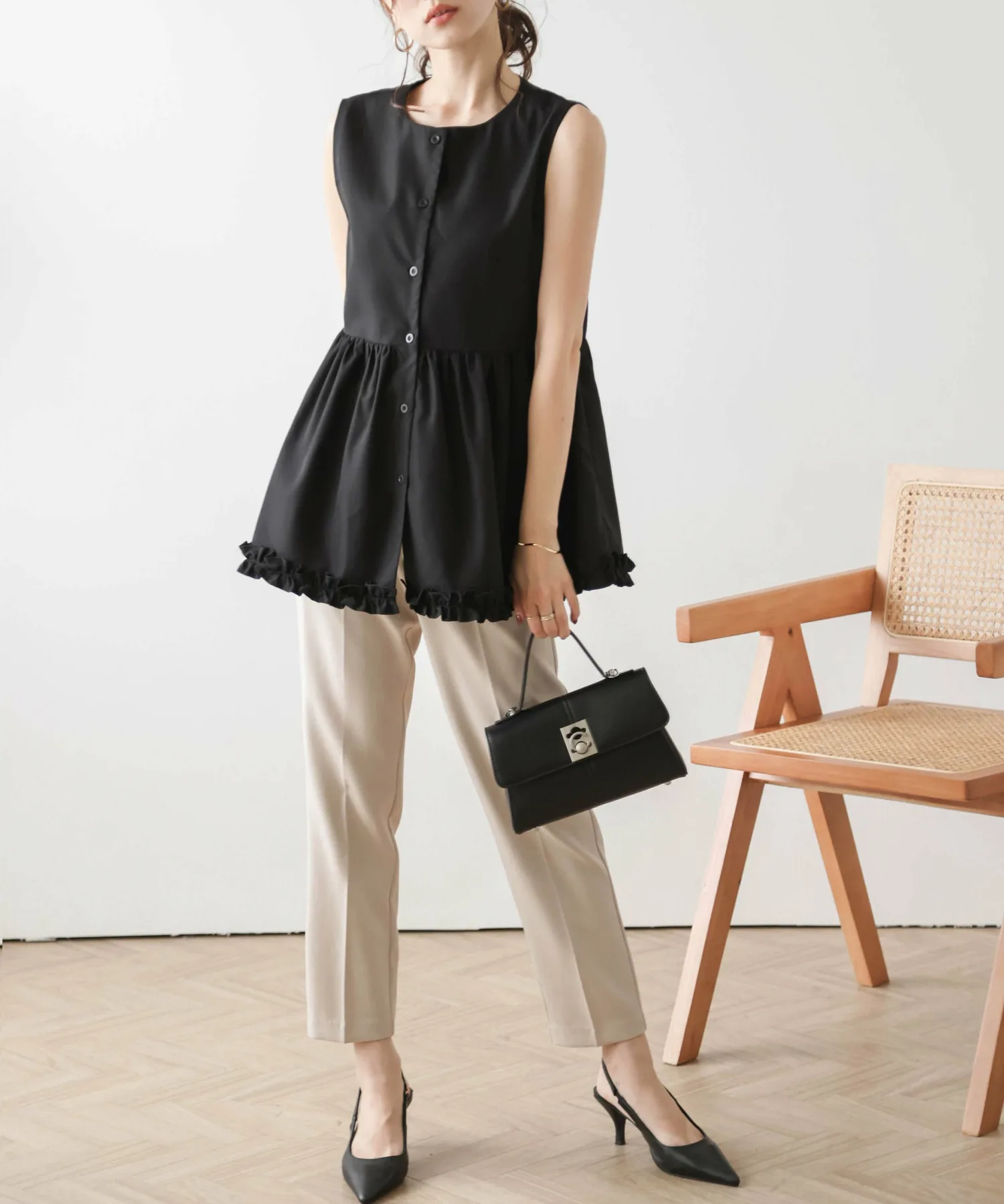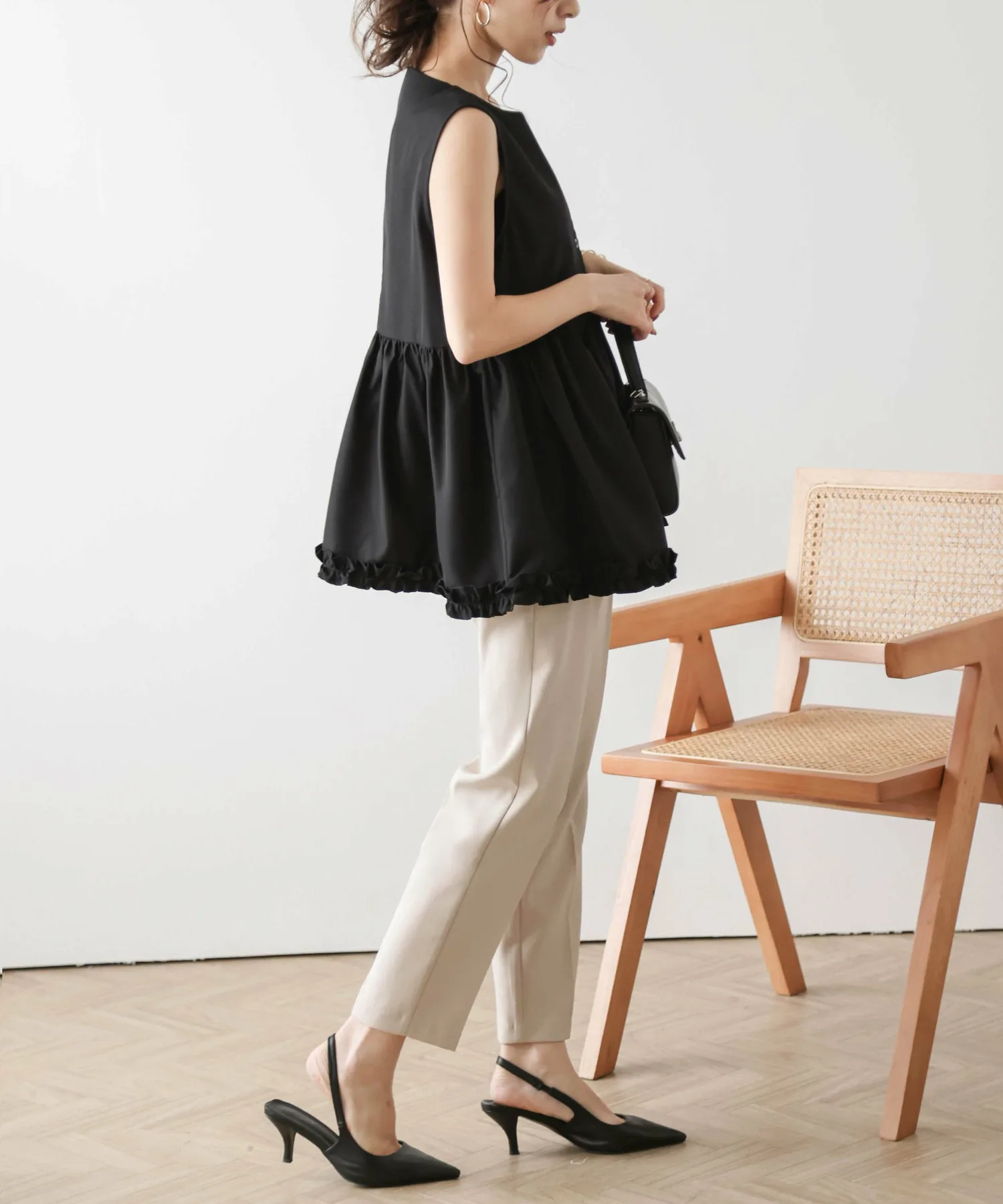 Этот топ с баской имеет слегка расклешенный силуэт,