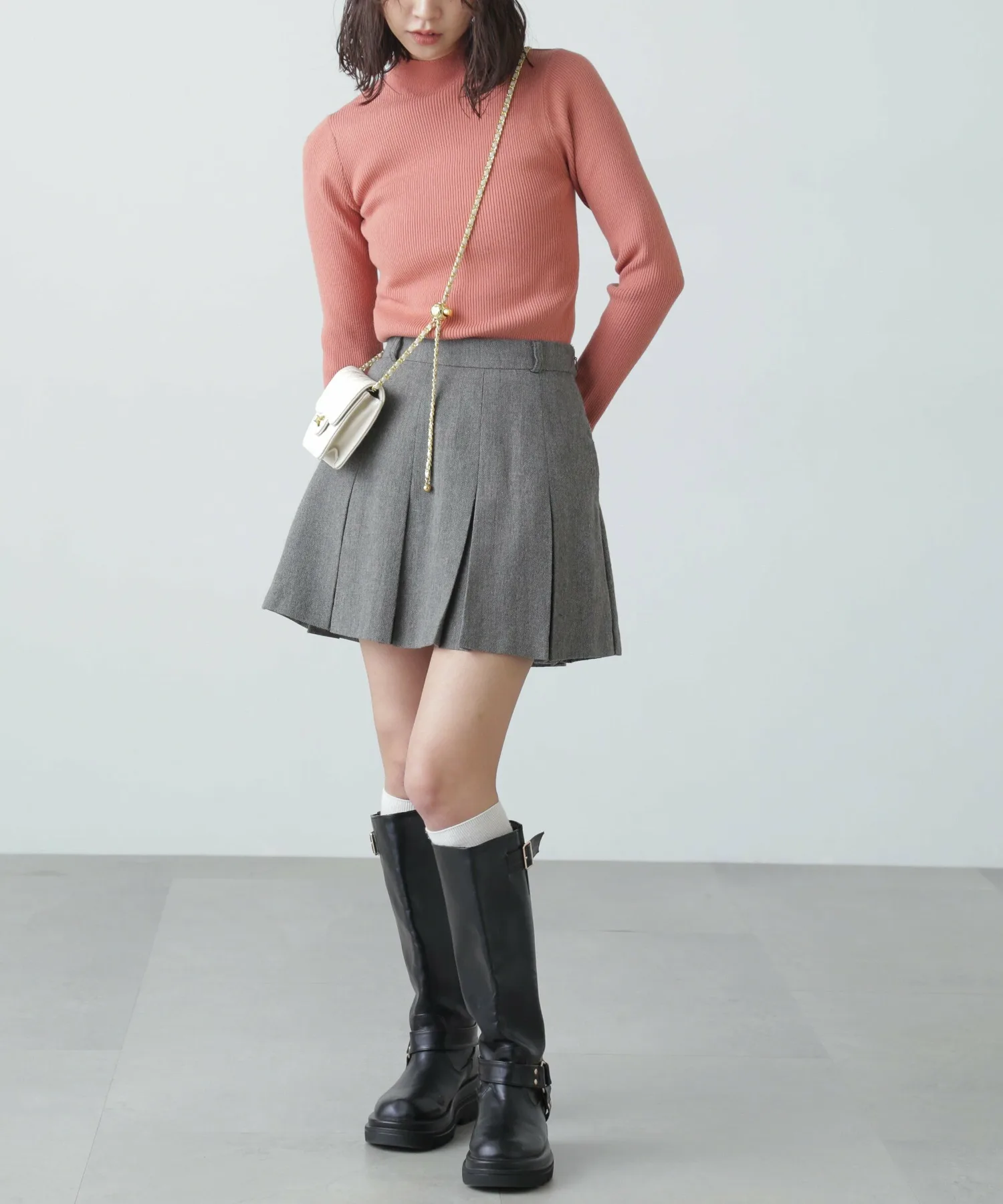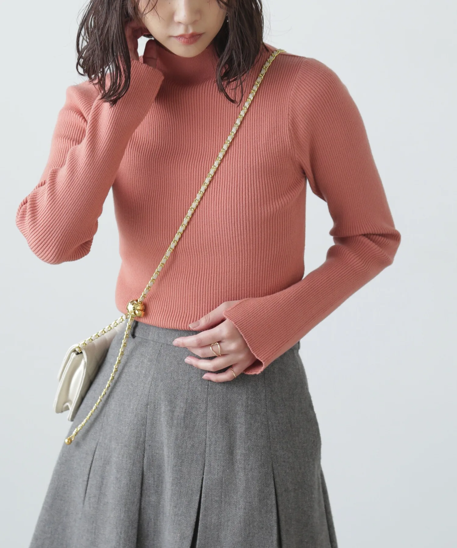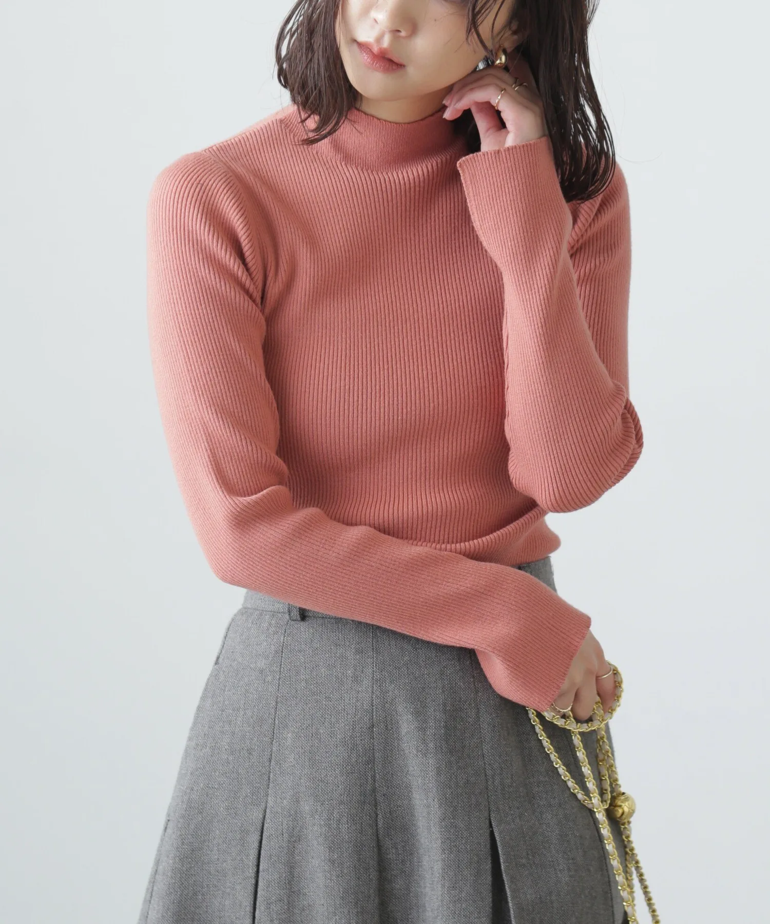 Базовая трикотажная серия, пригодная для машинной стирки. Этот свитер с высоким воротником идеально подходит в качестве нижнего слоя, благодаря простому силуэту, облегающему фигуру. Горловина выполнена из цельной ребристой вязки без швов, а манжеты имеют разрезы для дополнительного стиля. Этот свитер можно носить с платьем-майкой, а также под блузкой или жакетом. *При стирке выбирайте деликатный режим и помещайте изделие в сетку для белья.