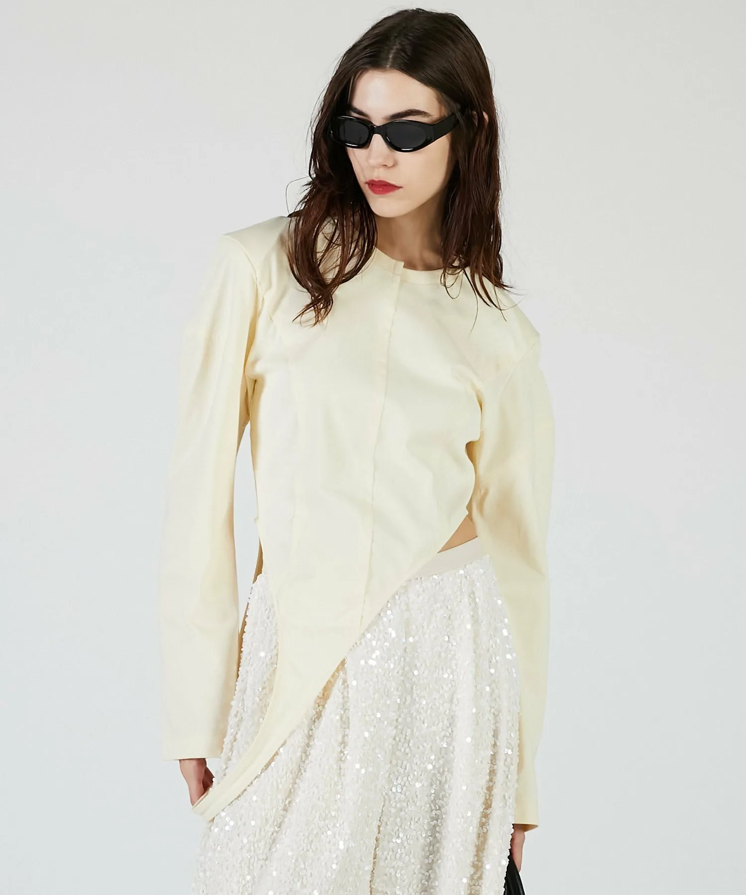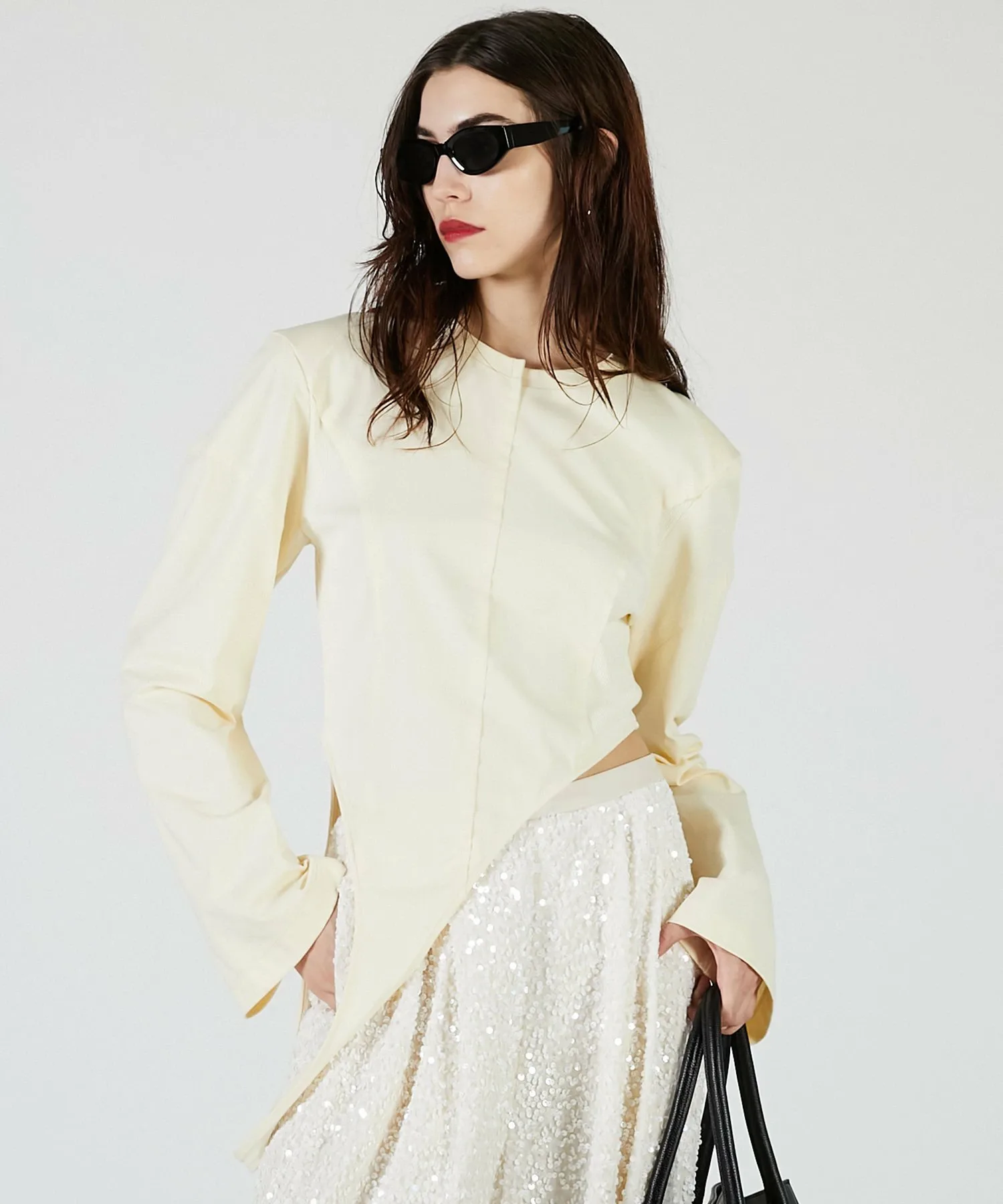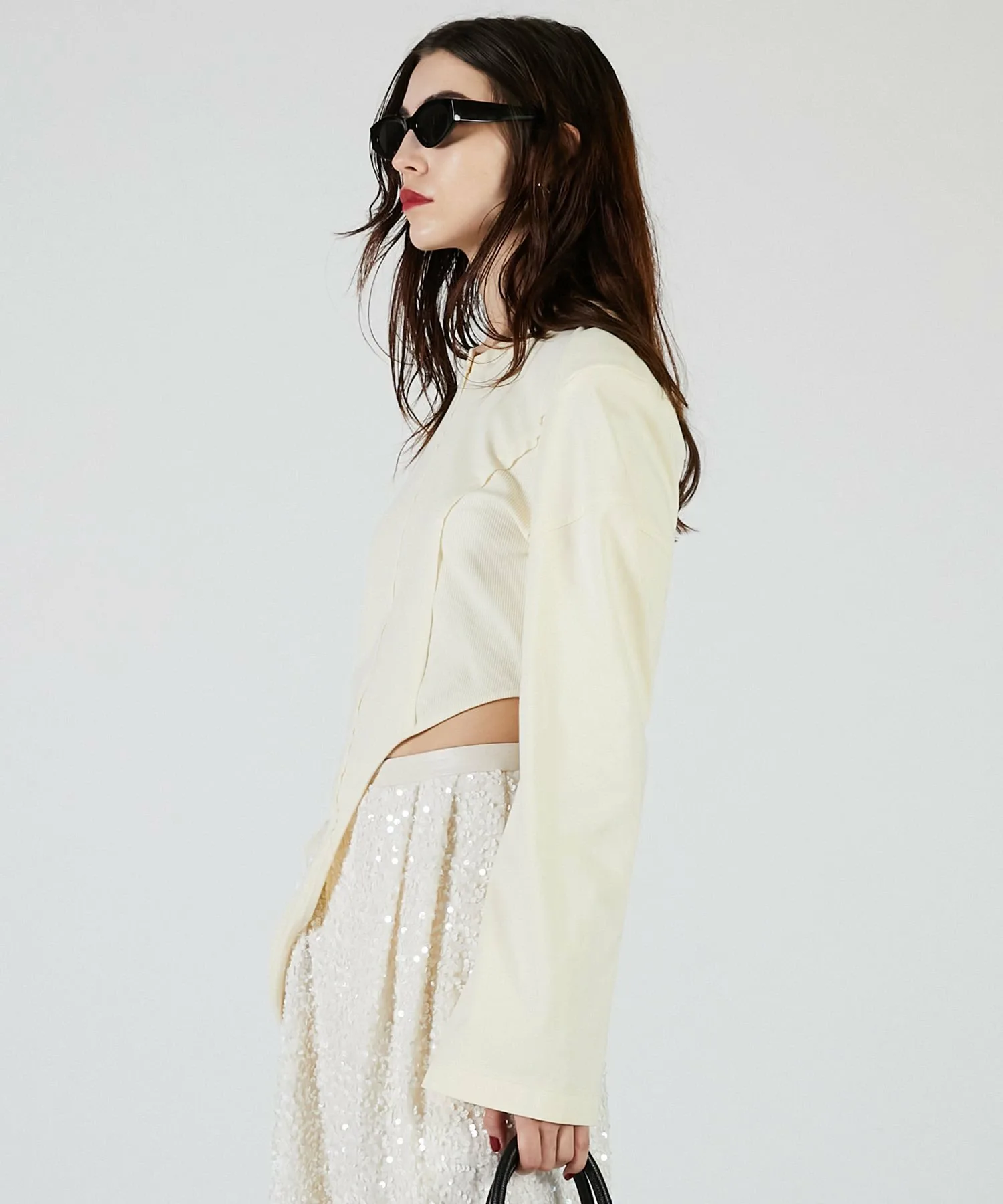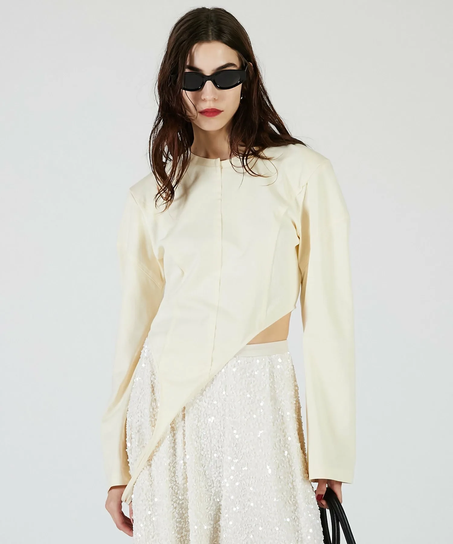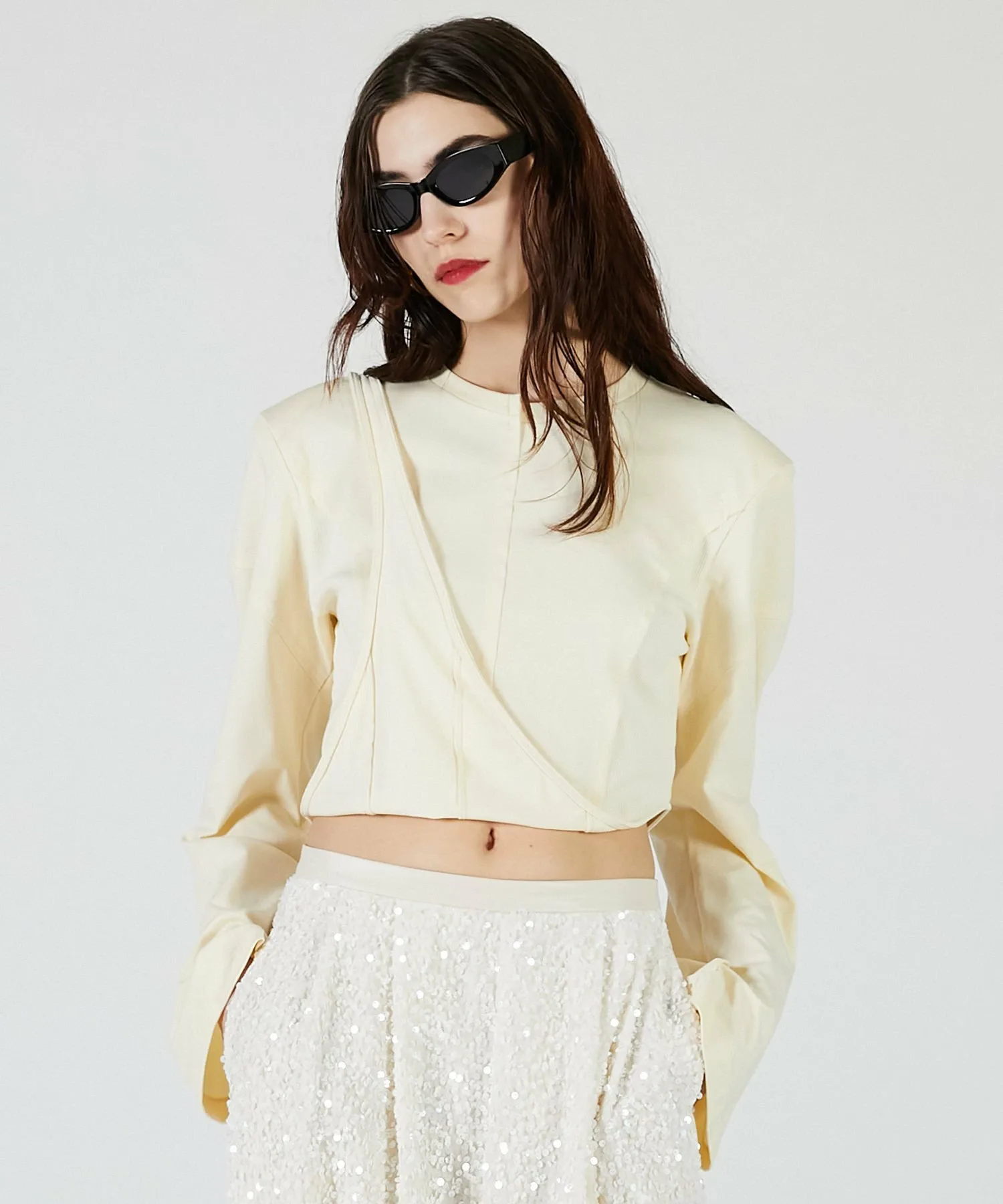 Вы также можете носить его как короткий топ, перекинув бретельки через плечи, изменив силуэт.