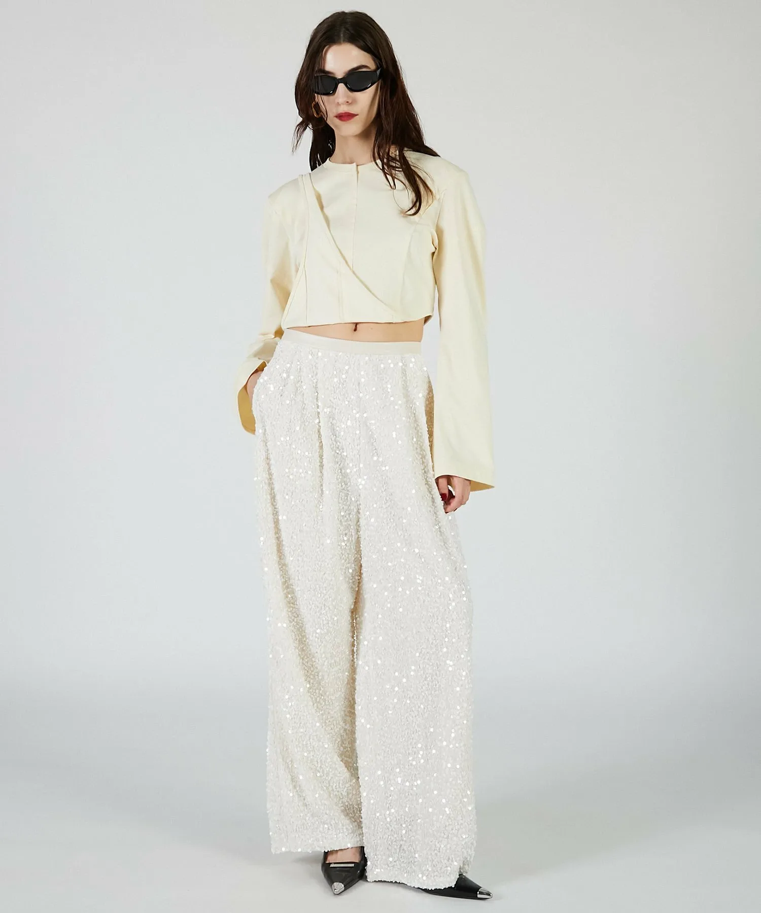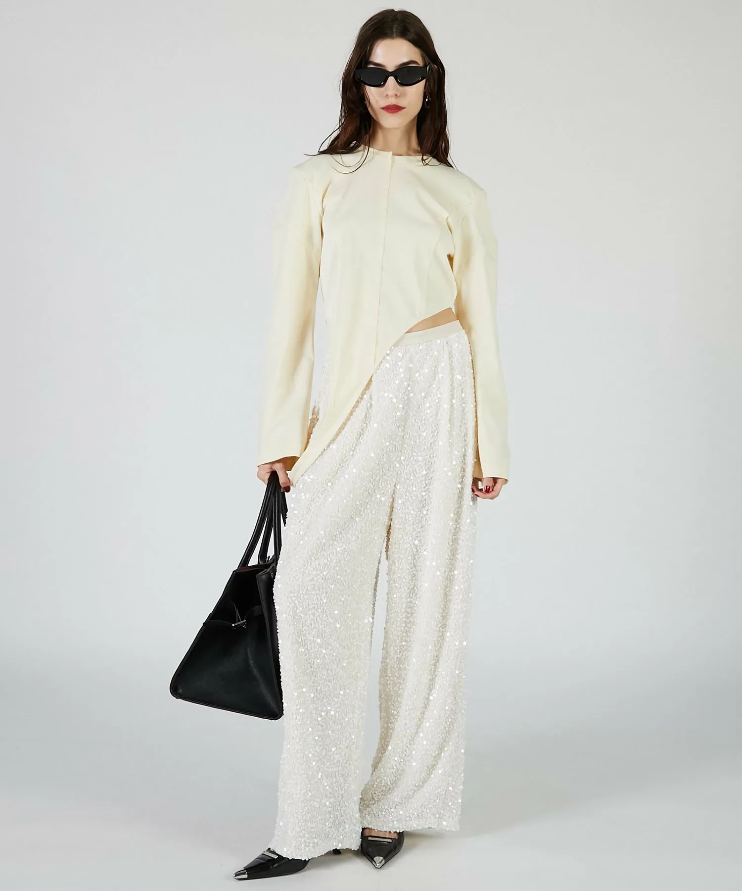 Увеличенные плечи создают современный образ.