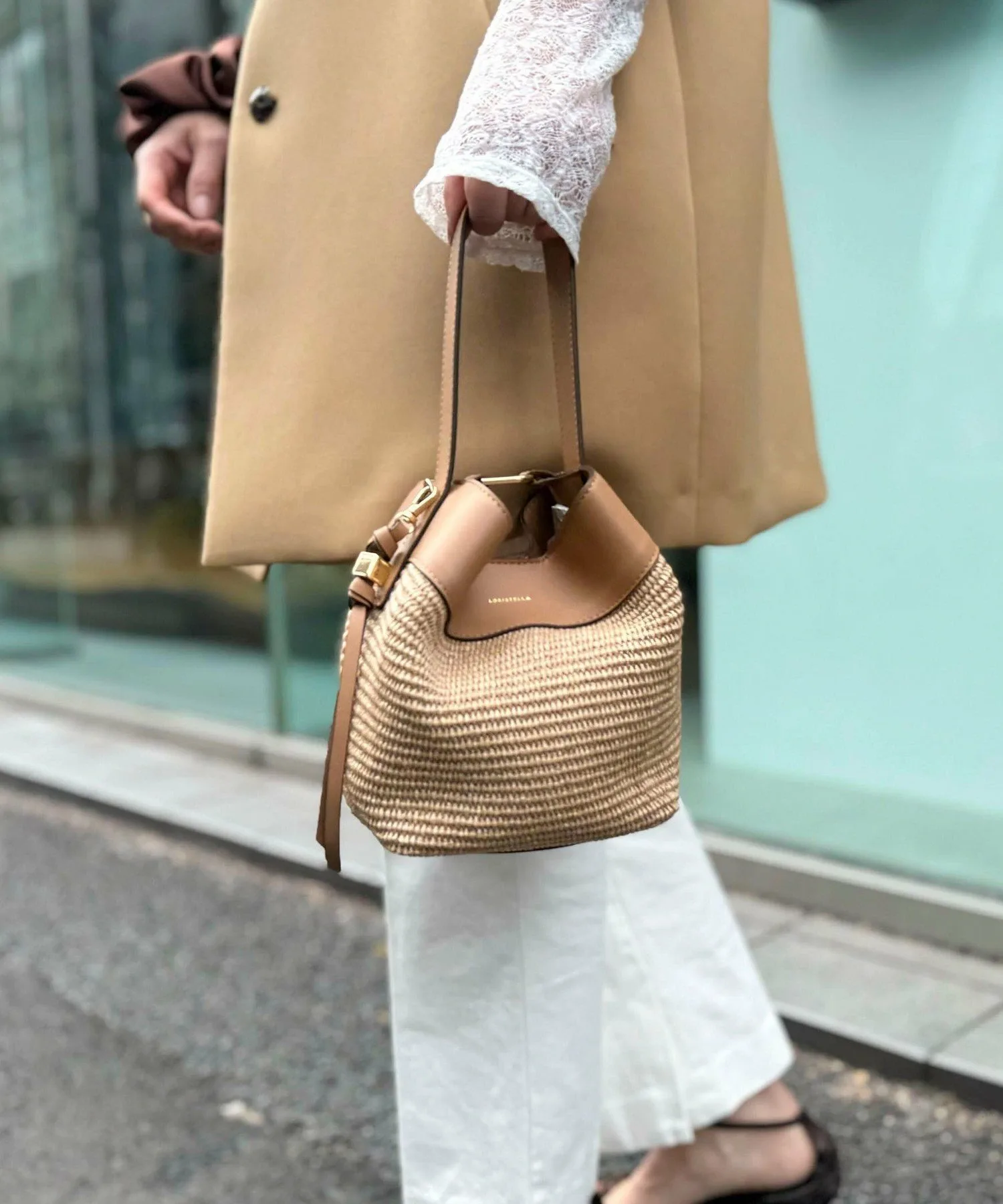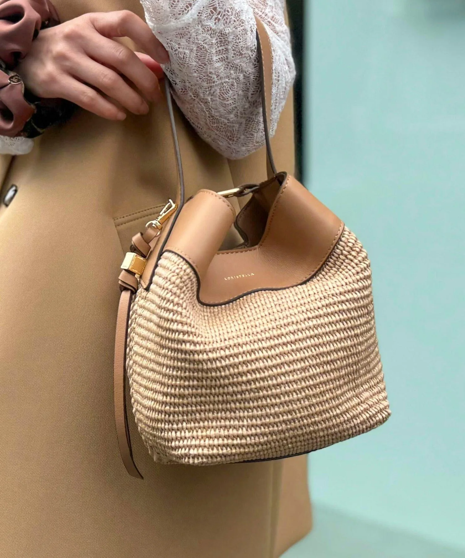 ・Сочетание натуральной рафии и гладкой кожи создает изысканный, взрослый повседневный стиль.
