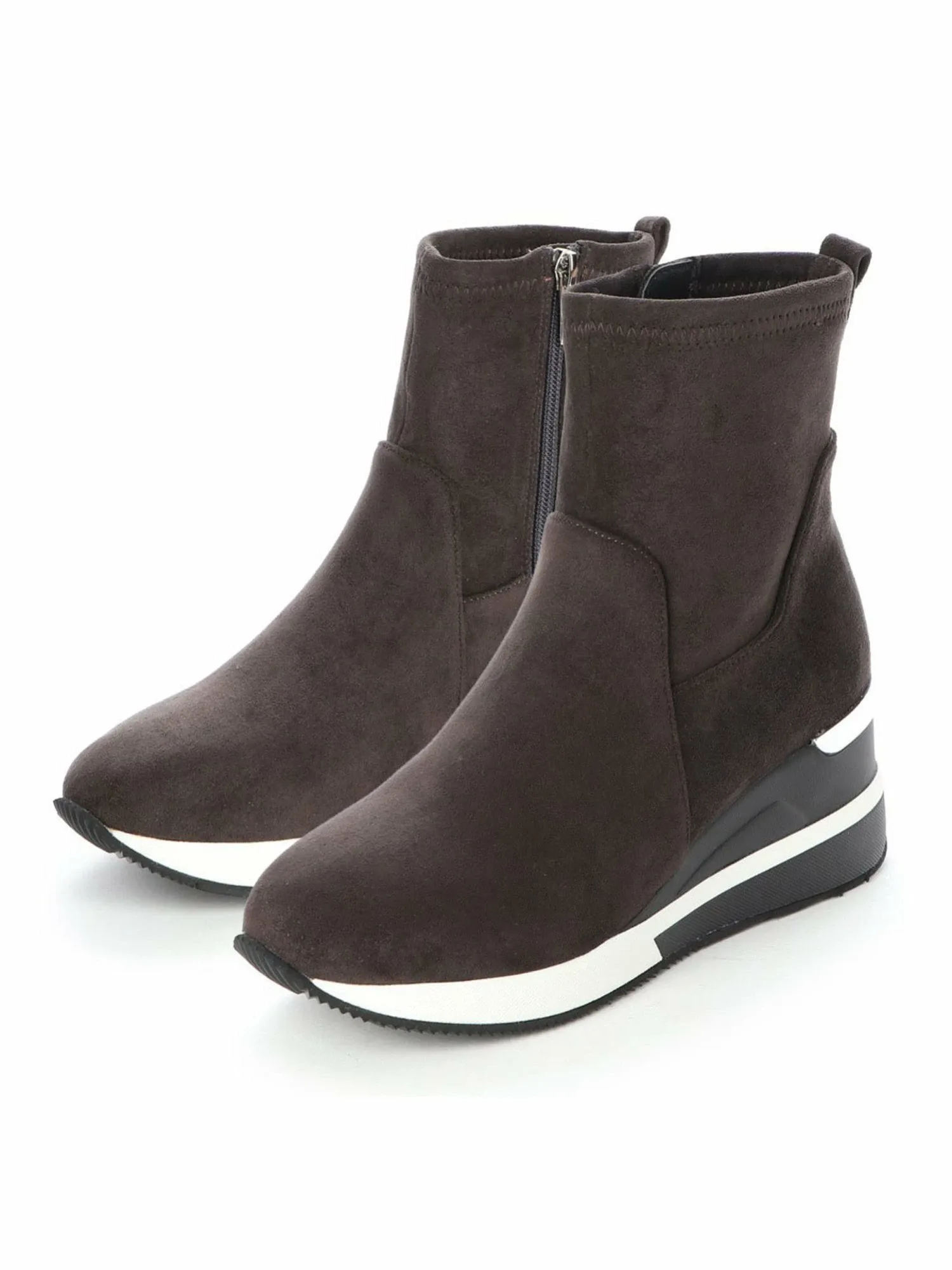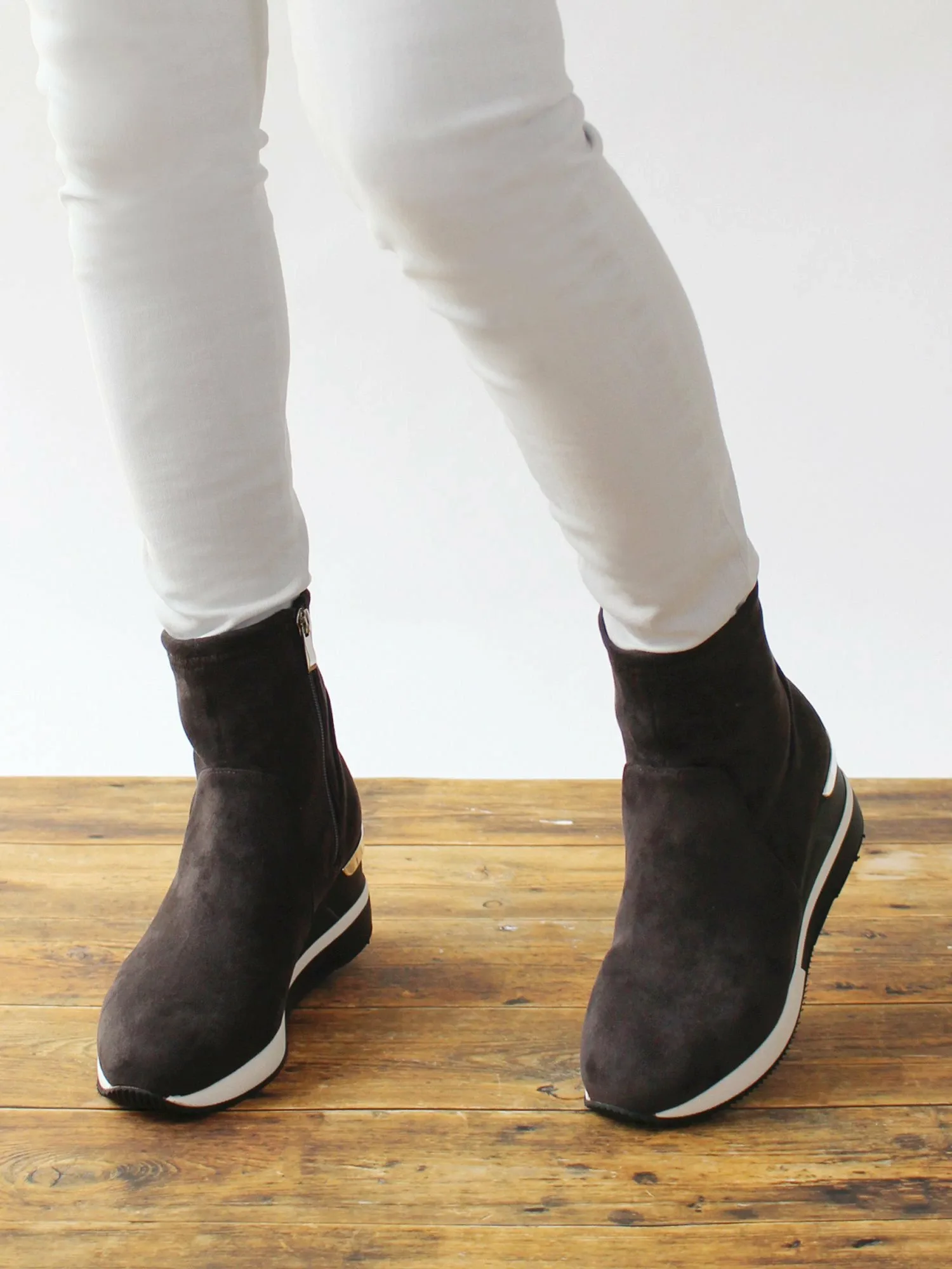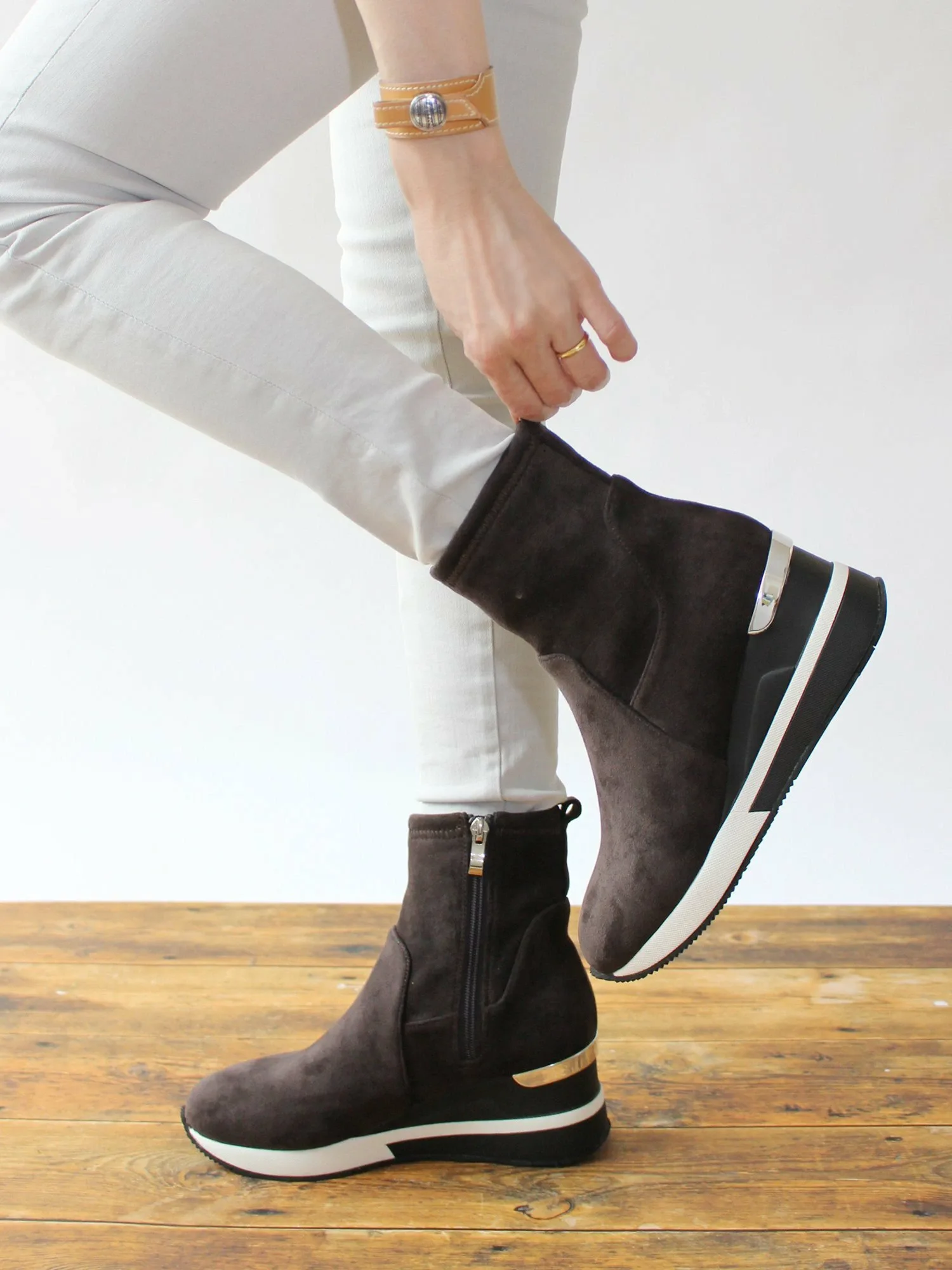 Кроссовки-ботинки Fin с эластичной подошвой и гладкой замшевой текстурой идеально подходят для этого сезона. Изящный силуэт и объемная толстая подошва создают женственный, повседневный образ. Подошва толщиной 7,3 см удобна и подчеркнет ваш стиль.