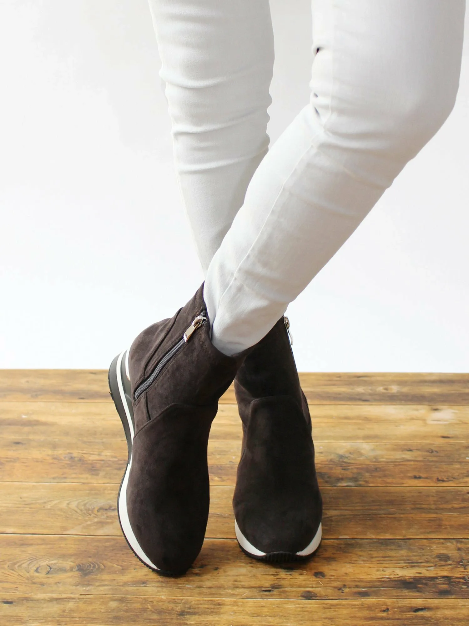 Комментарии: У меня широкие, с высоким сводом стопы, и обычно я ношу размер M, но при ходьбе босиком размер M ощущается идеально. Они совсем не тесные, даже с носками или колготками. Молния позволяет легко надевать и снимать их, а эластичный материал из искусственной замши мягкий на ощупь, что делает их очень удобными. Подошва толщиной 7,3 см очень легкая, поэтому в них легко ходить, и они не утомляют даже при длительных прогулках.
