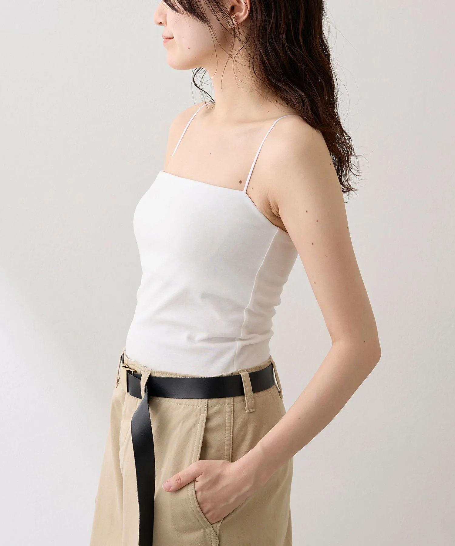 Квадратный вырез позволяет легко сочетать ее с другими вещами, а также она хорошо подходит в качестве нижнего слоя для прозрачных или V-образных топов.