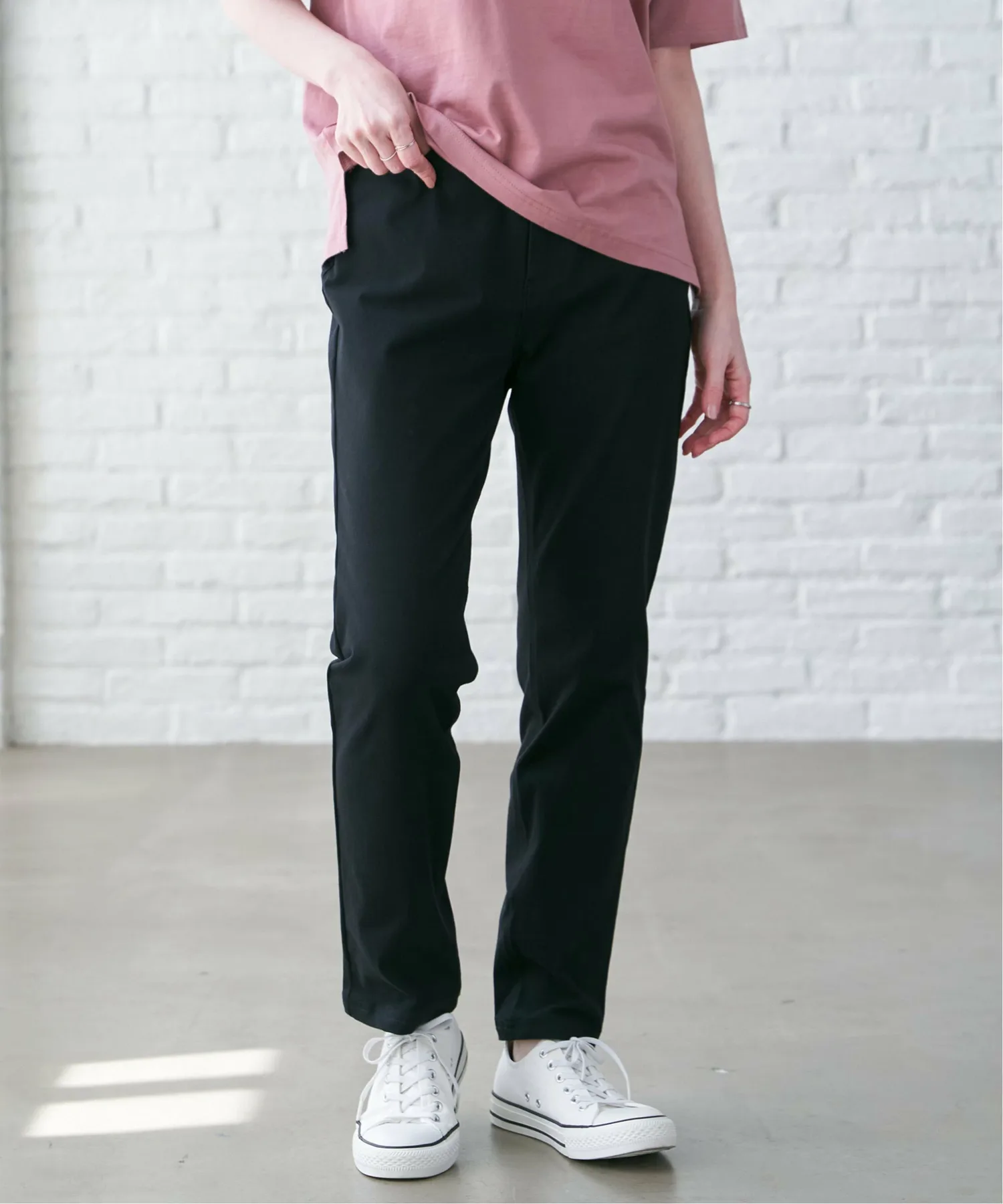- Хотя они выглядят как тканые, эти брюки изготовлены из материала, растягивающегося по вертикали и горизонтали, что обеспечивает свободу движений и комфорт.