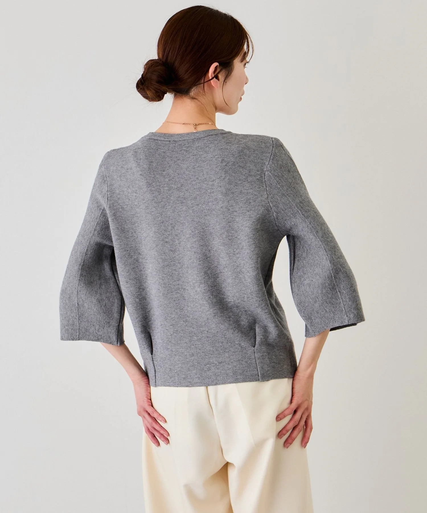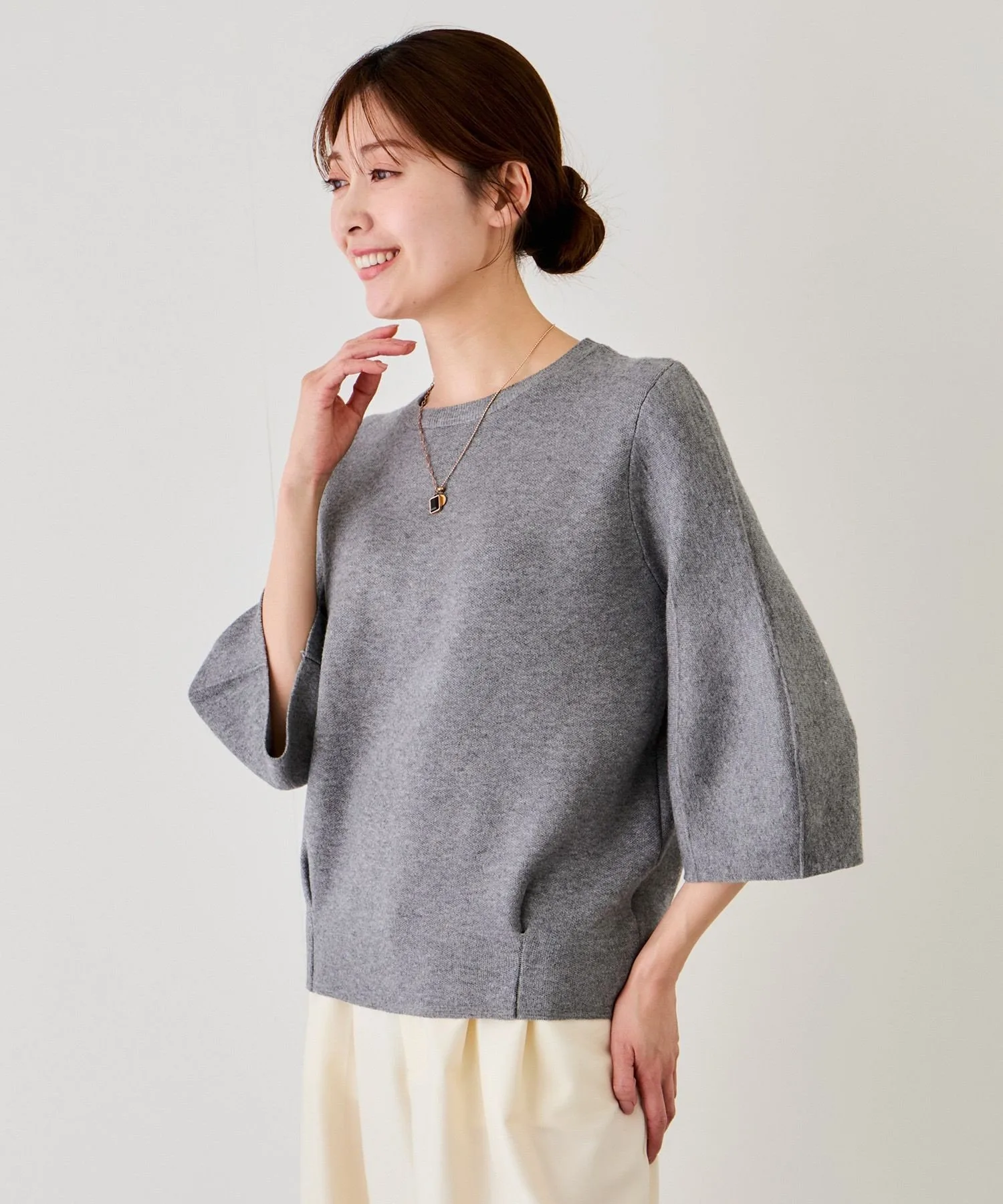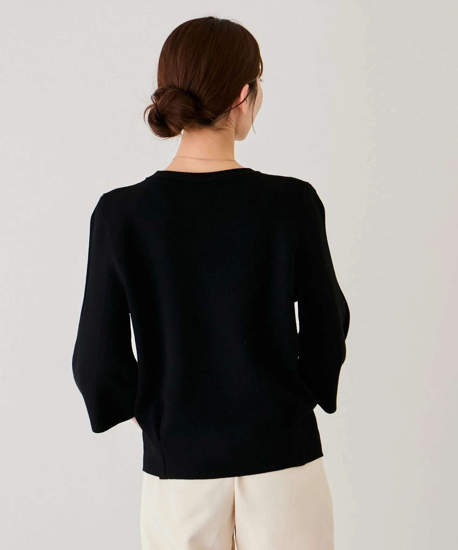 Шелковистый трикотаж для взрослых, с гладкой текстурой и пышными рукавами, подчеркивающими женственность [Дизайн/Силуэт]