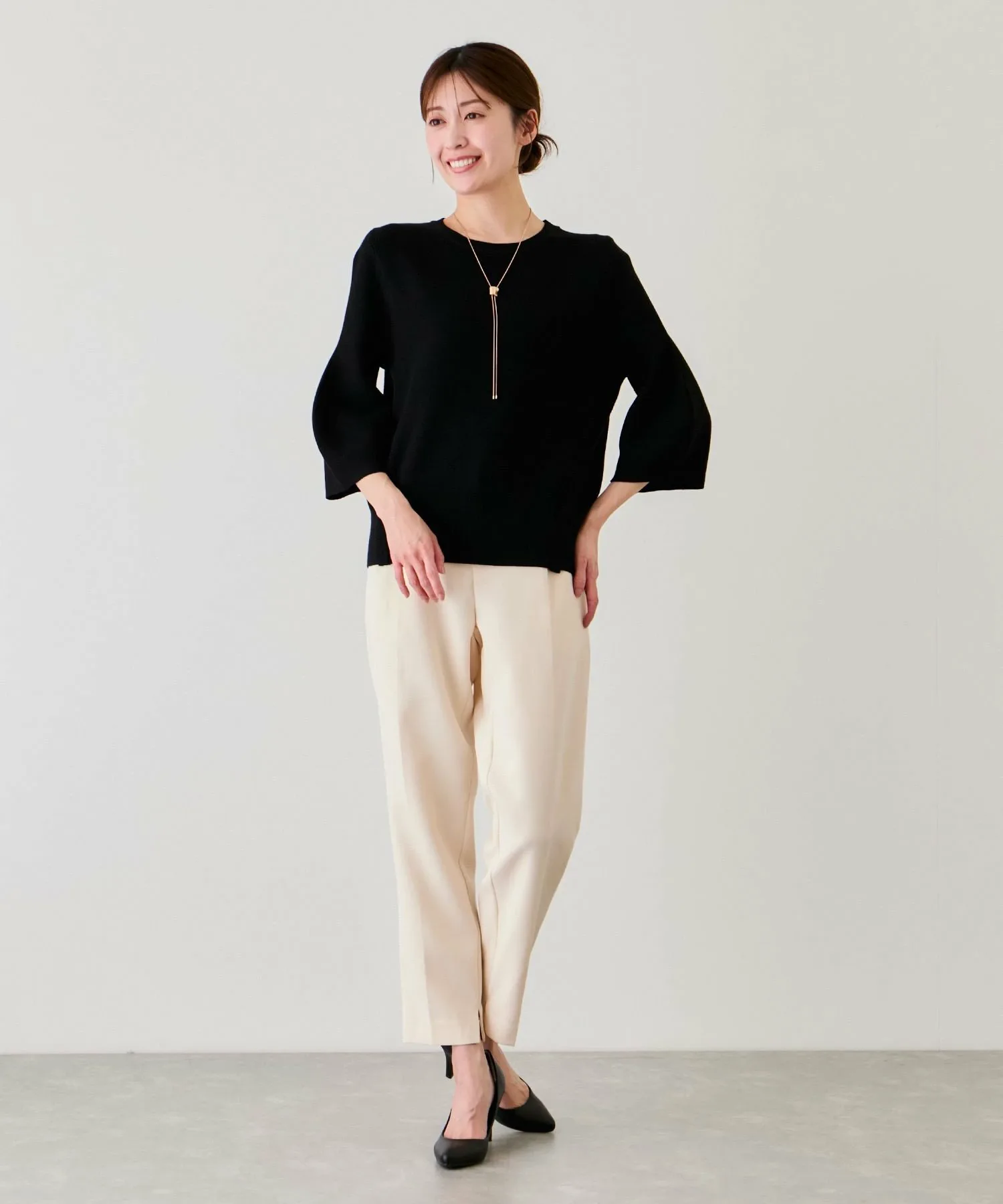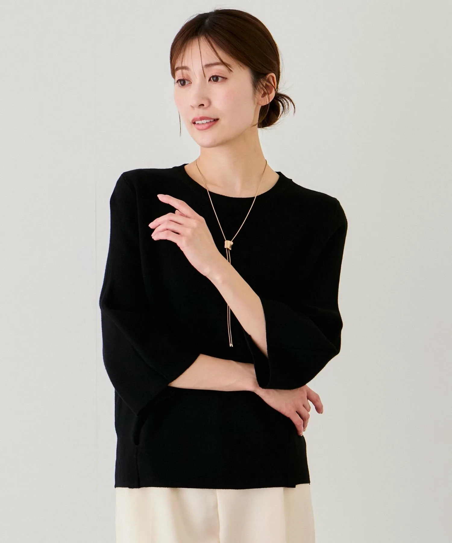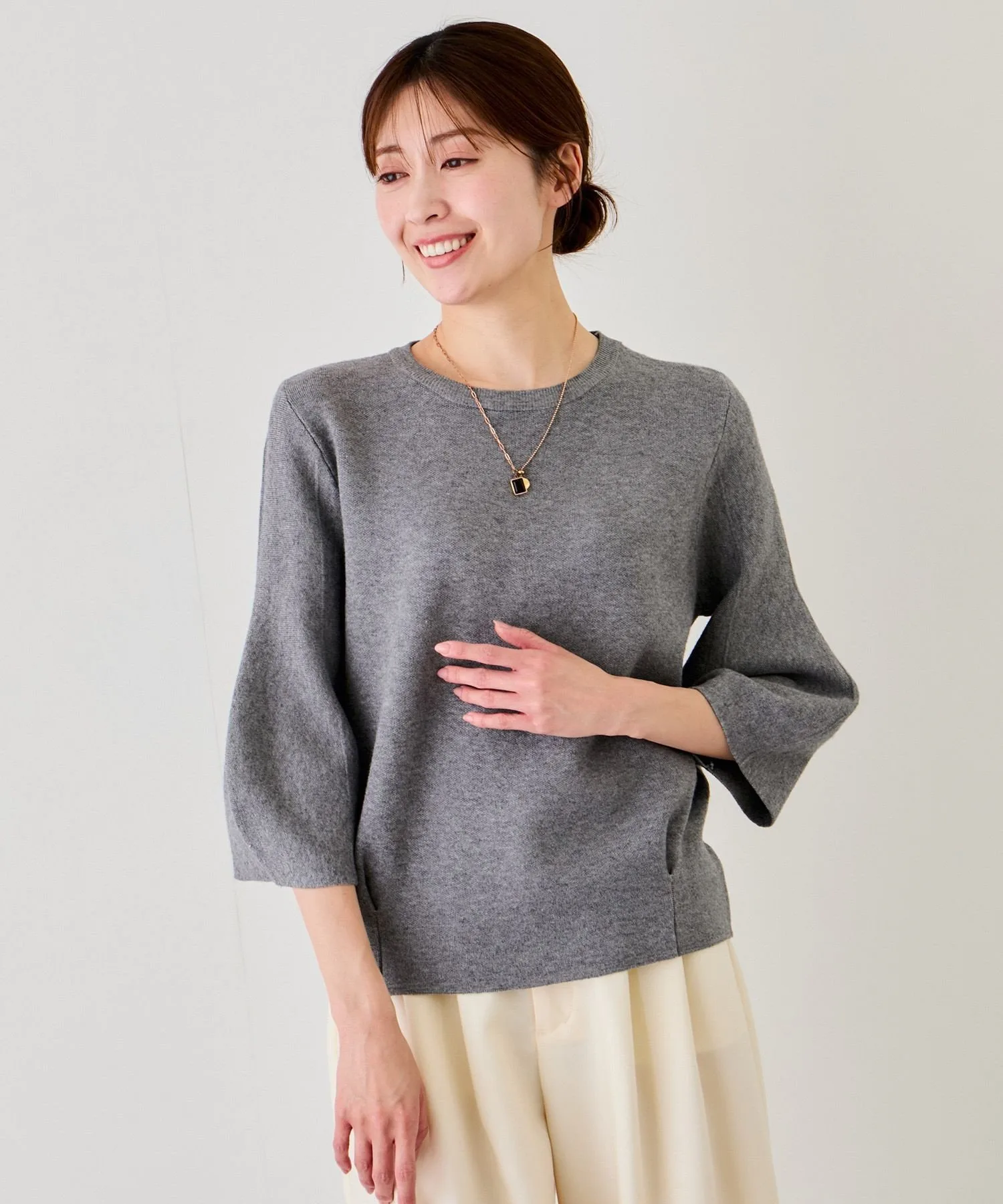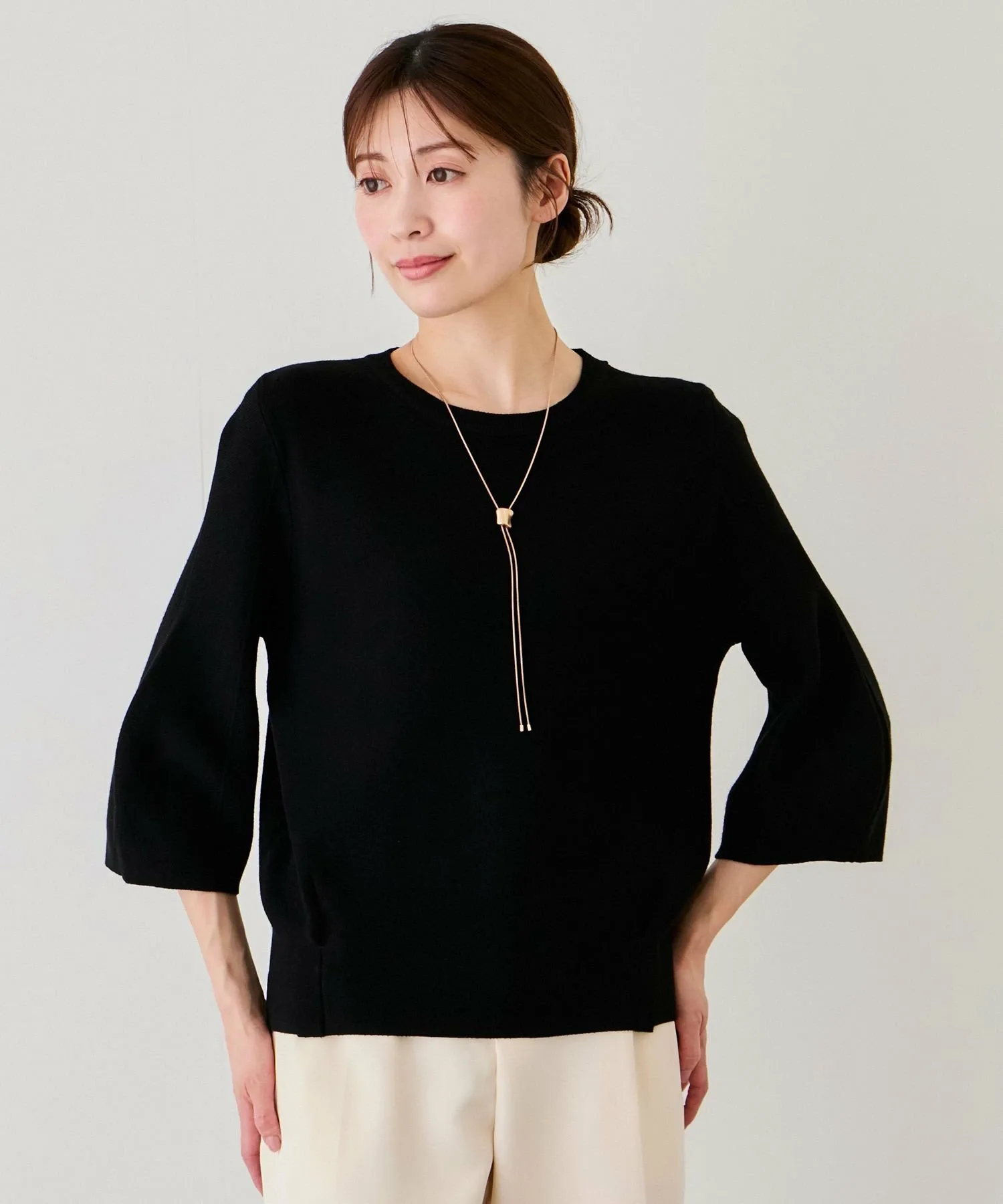Шелковистый трикотаж для взрослых, с гладкой текстурой и пышными рукавами, подчеркивающими женственность [Дизайн/Силуэт]