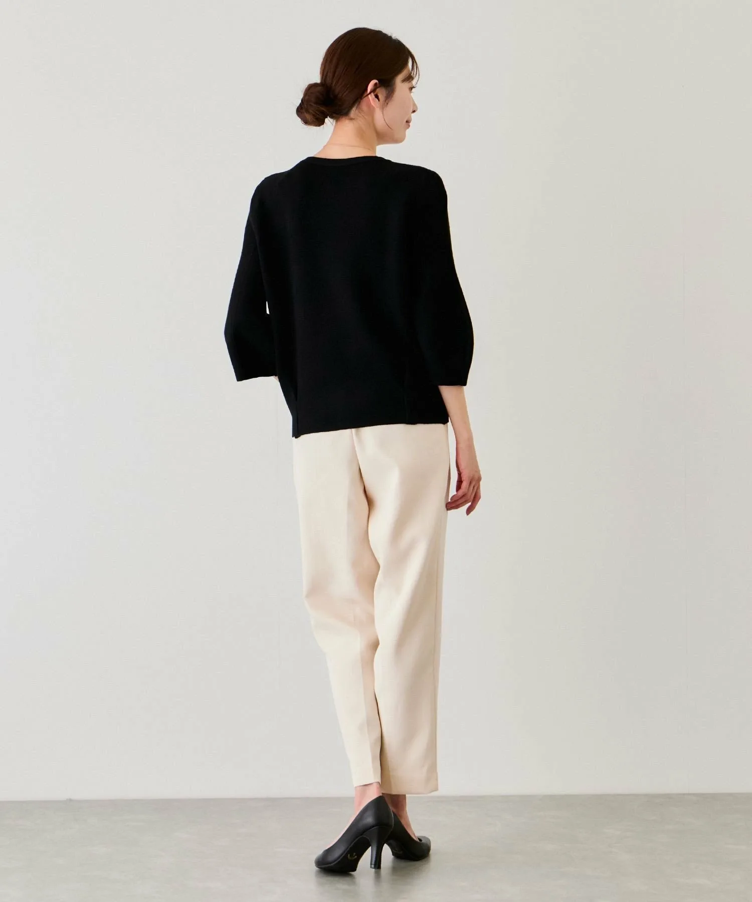 - Простой круглый вырез с минимальным декором отлично смотрится с аксессуарами и шарфами, что делает его удобным как для работы, так и для повседневной носки.