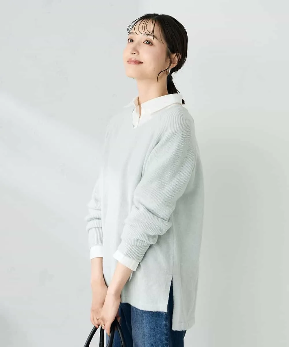 ・Неглубокий V-образный вырез, не слишком открытый, придает шее аккуратный вид.