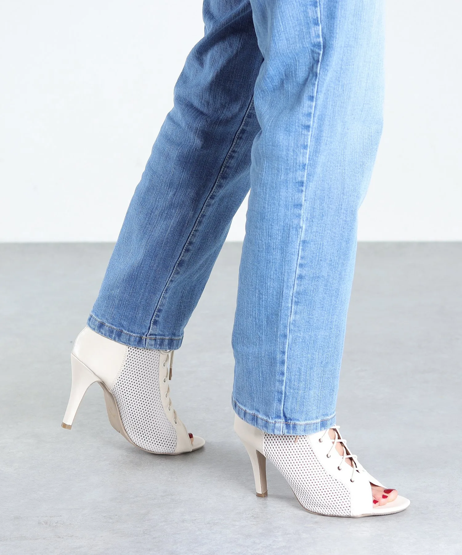 Сетчатый материал и открытый носок создают непринужденный вид.