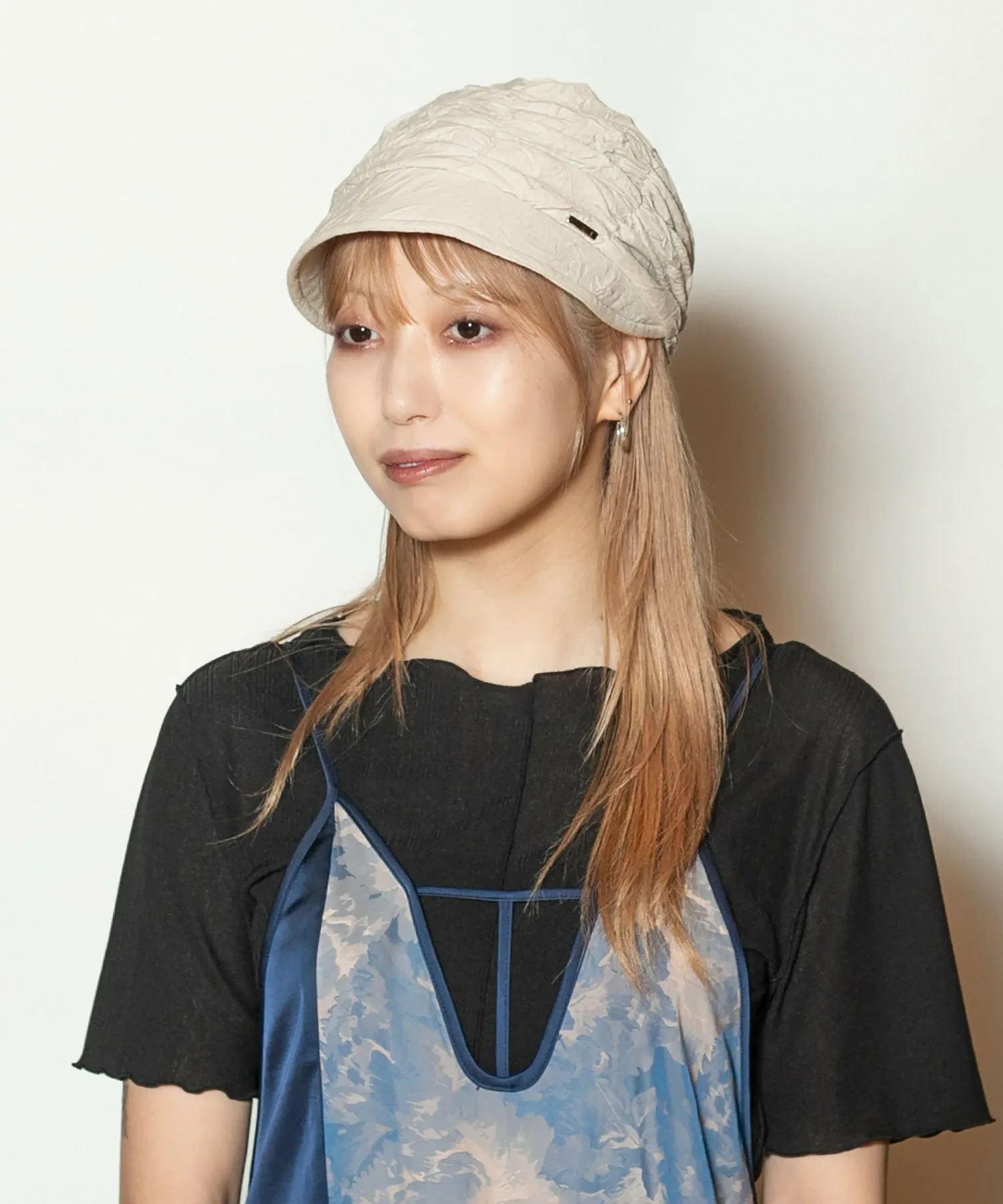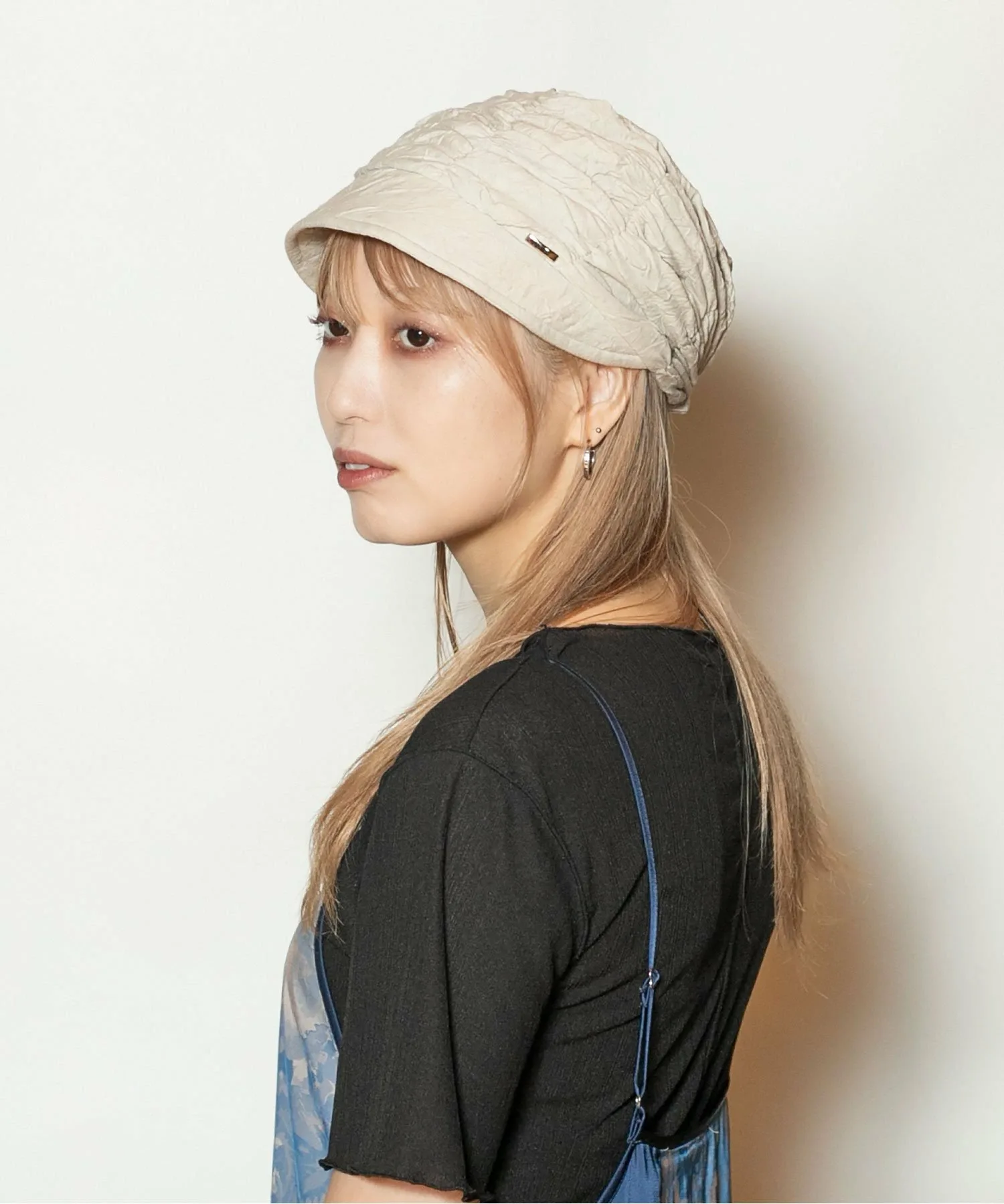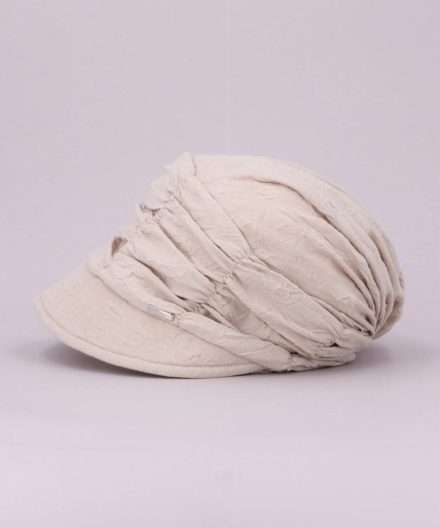 Щедрые складки от передней части до задней создают динамичный образ. Изготовлена из мягкой хлопчатобумажной и полиэстерной ткани, удобно сидит на голове и не вызывает дискомфорта при длительном ношении. Небольшие декоративные элементы по бокам добавляют изысканный акцент.