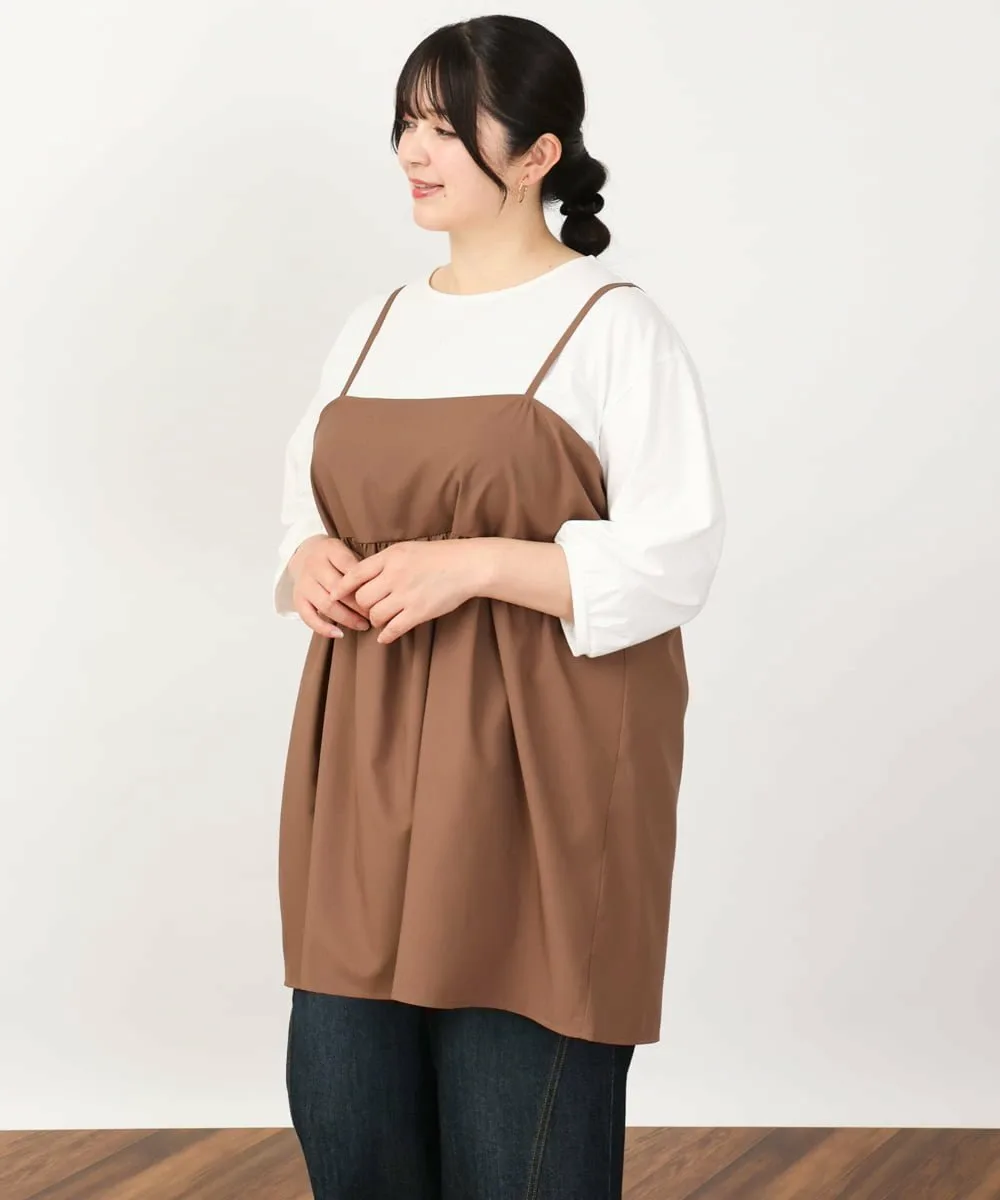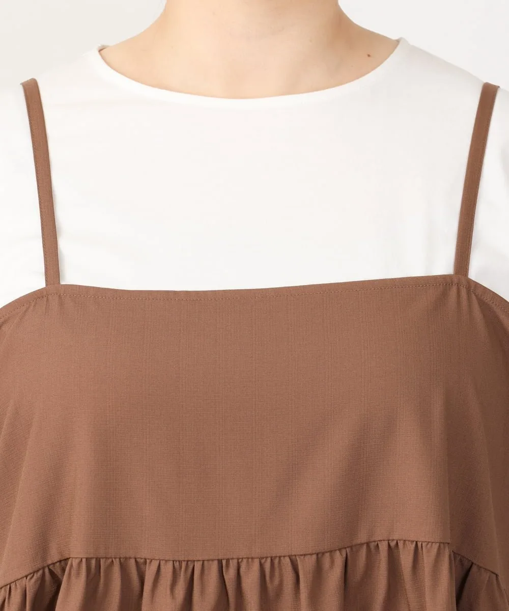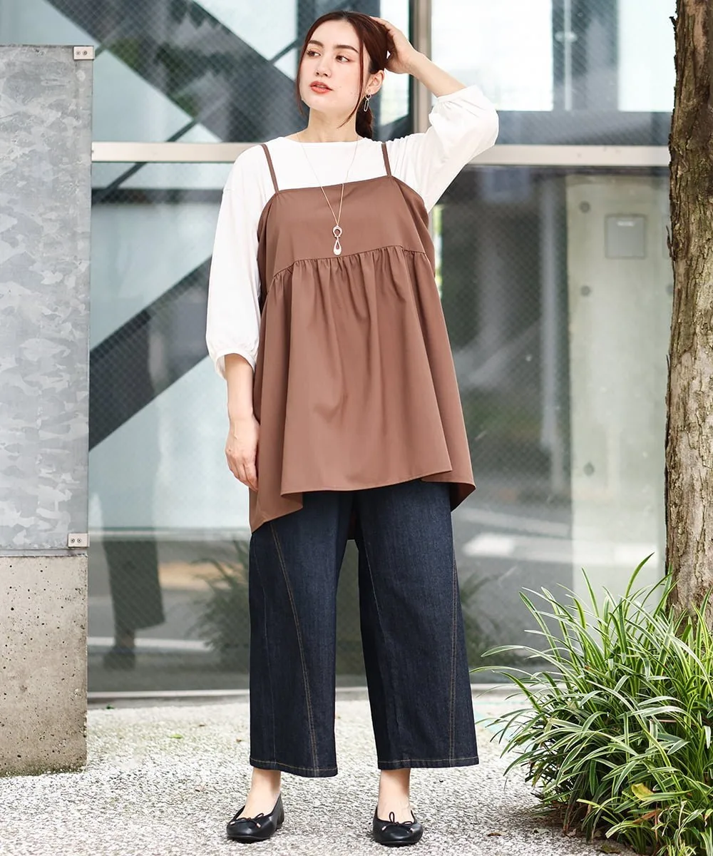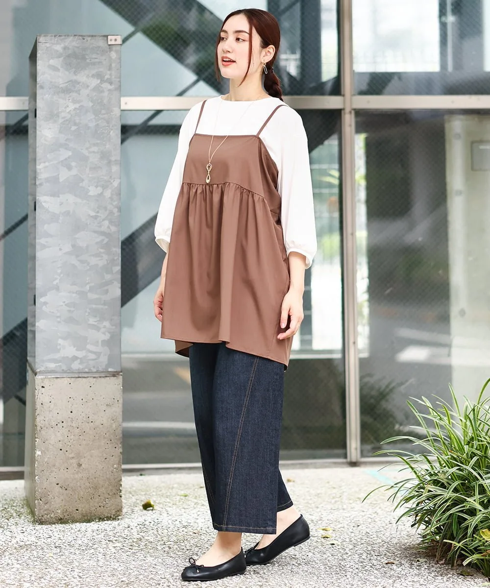 Этот комплект включает в себя длинное платье-комбинацию, закрывающее талию, и футболку с милыми присборенными рукавами и свободными манжетами, что позволяет легко создать стильный образ в этом году.