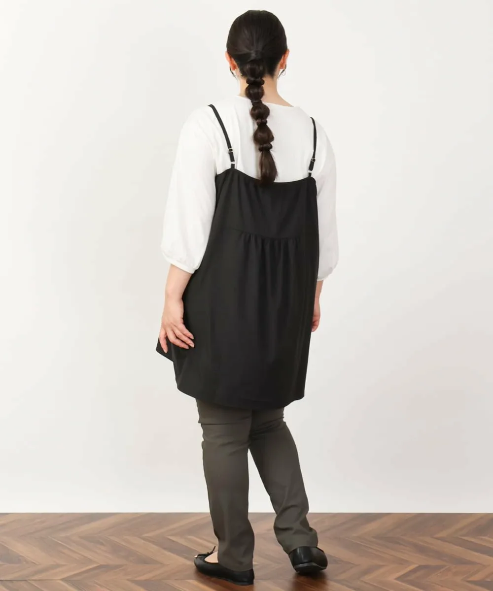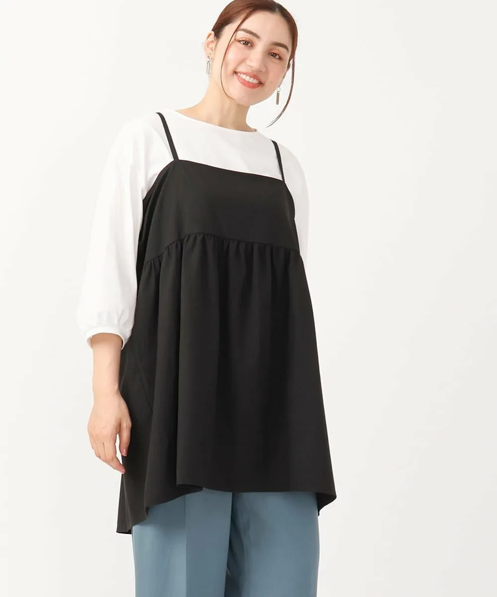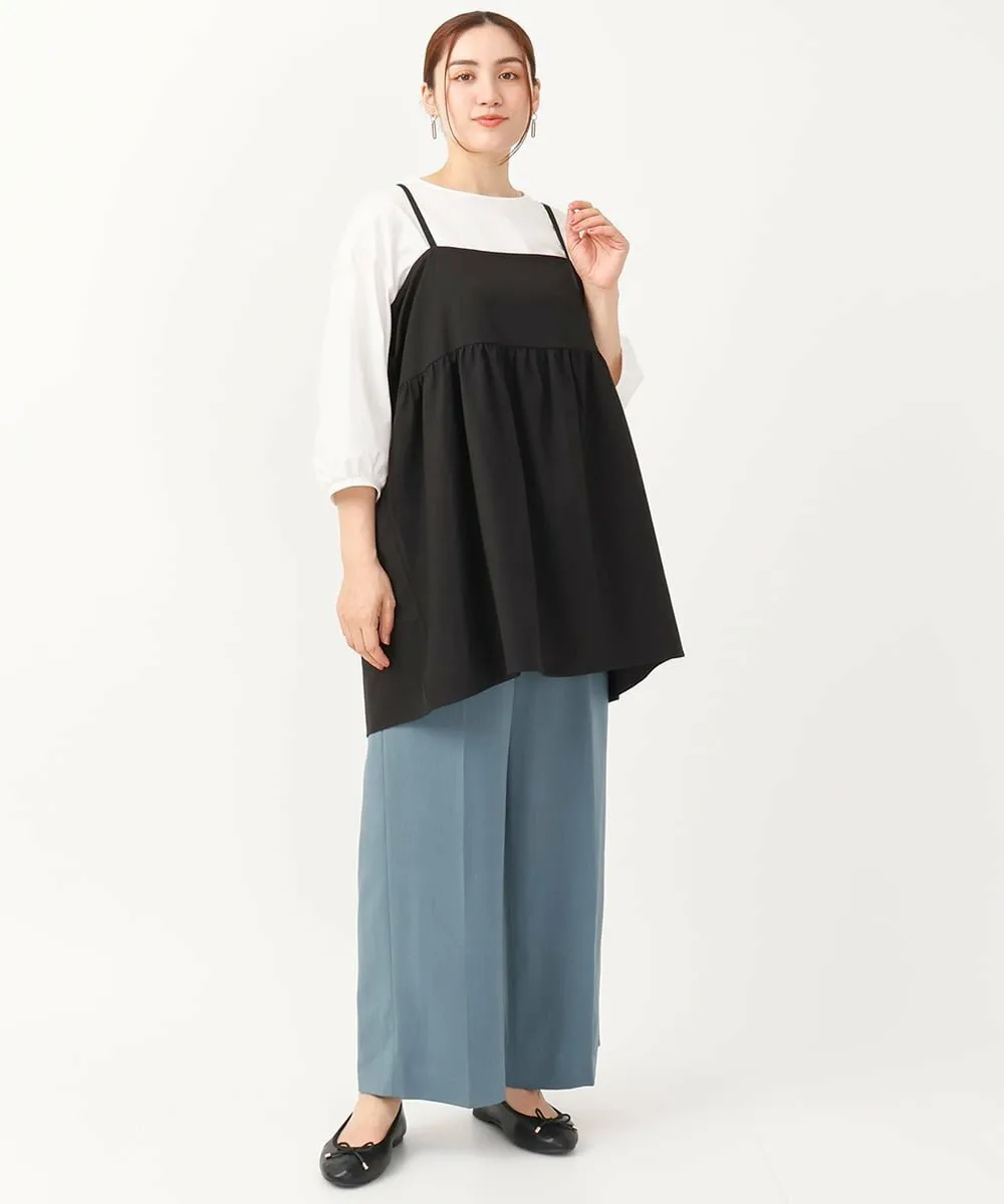 Этот комплект включает в себя длинное платье-комбинацию, закрывающее талию, и футболку с милыми присборенными рукавами и свободными манжетами, что позволяет легко создать стильный образ в этом году.