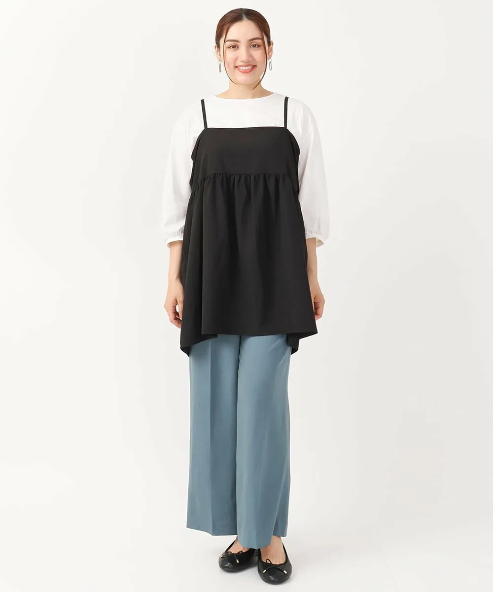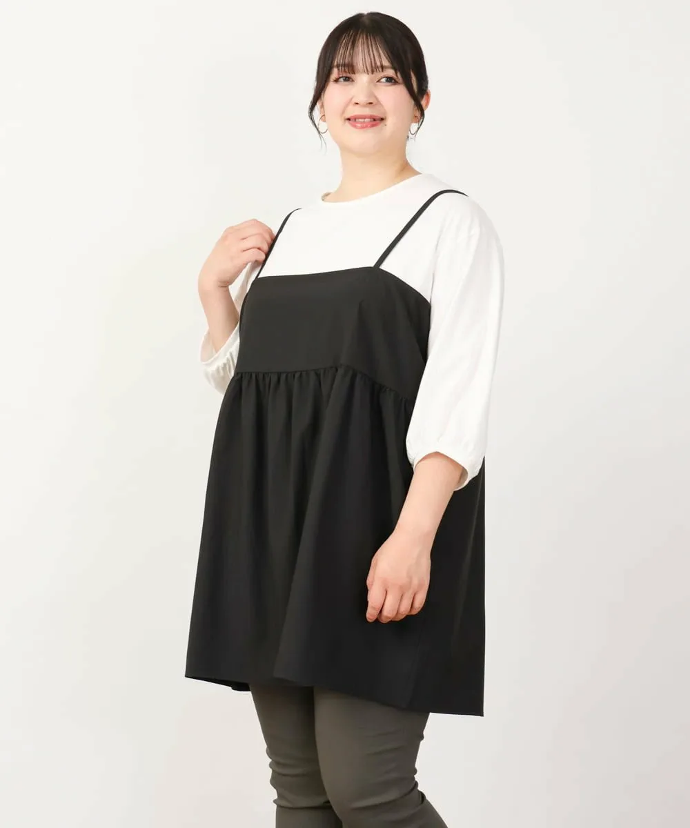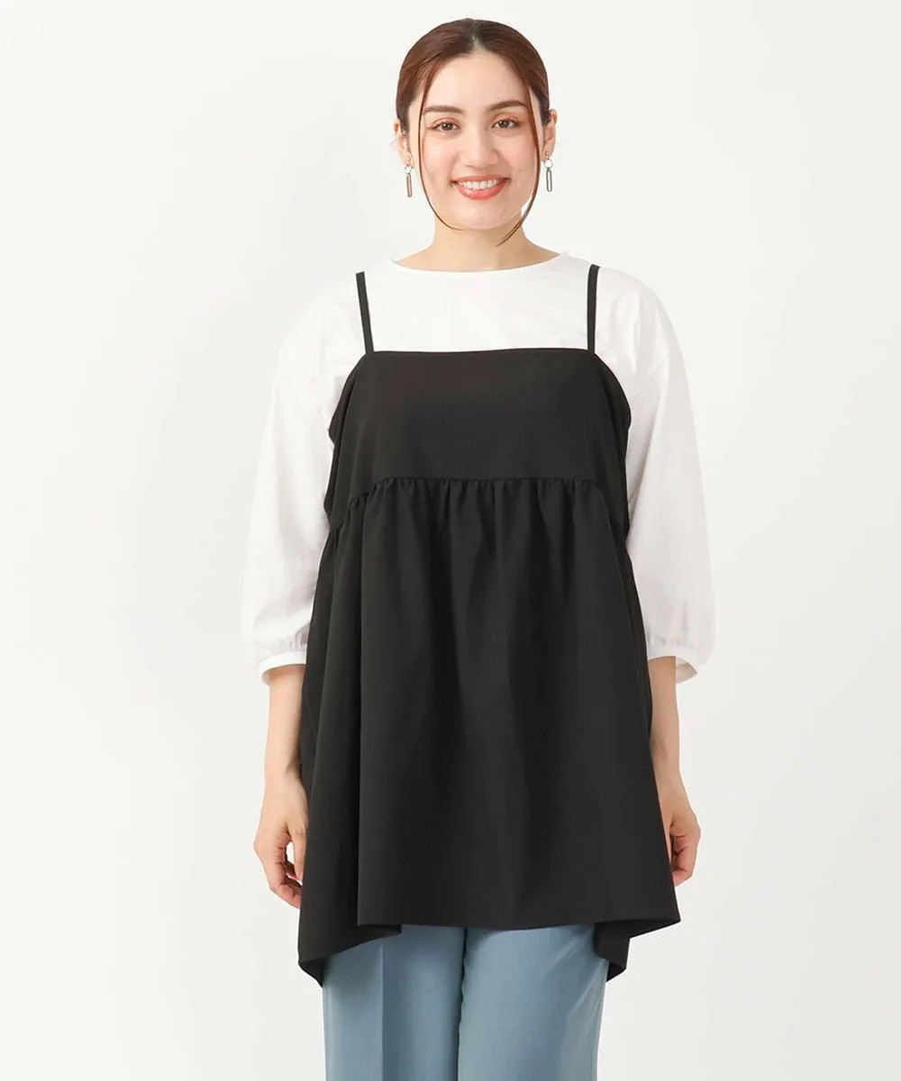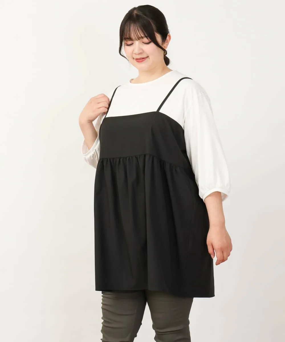 Этот комплект включает в себя длинное платье-комбинацию, закрывающее талию, и футболку с милыми присборенными рукавами и свободными манжетами, что позволяет легко создать стильный образ в этом году.