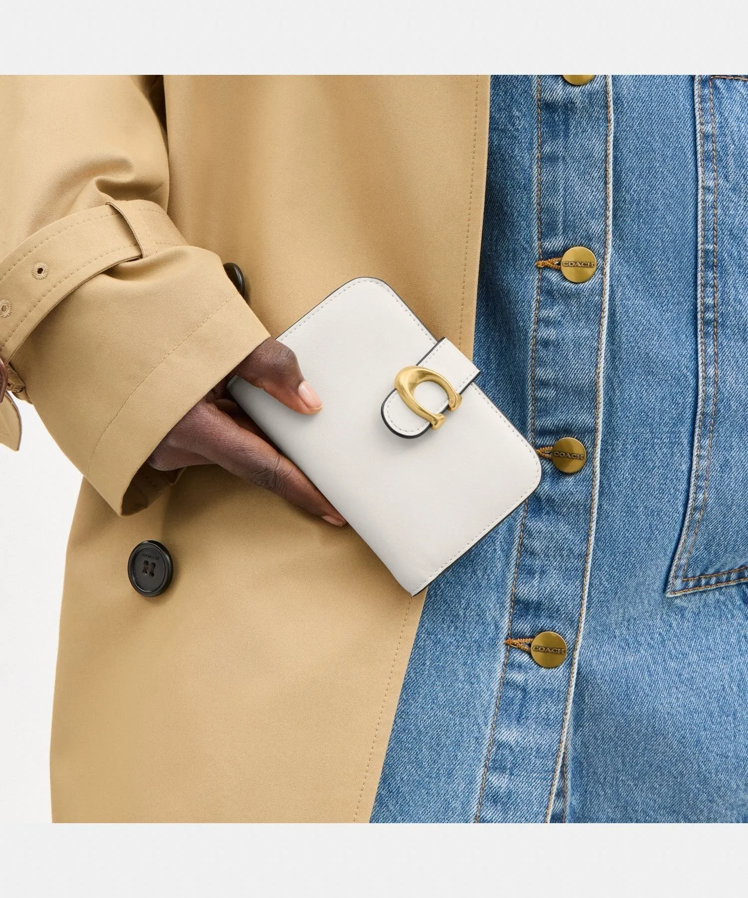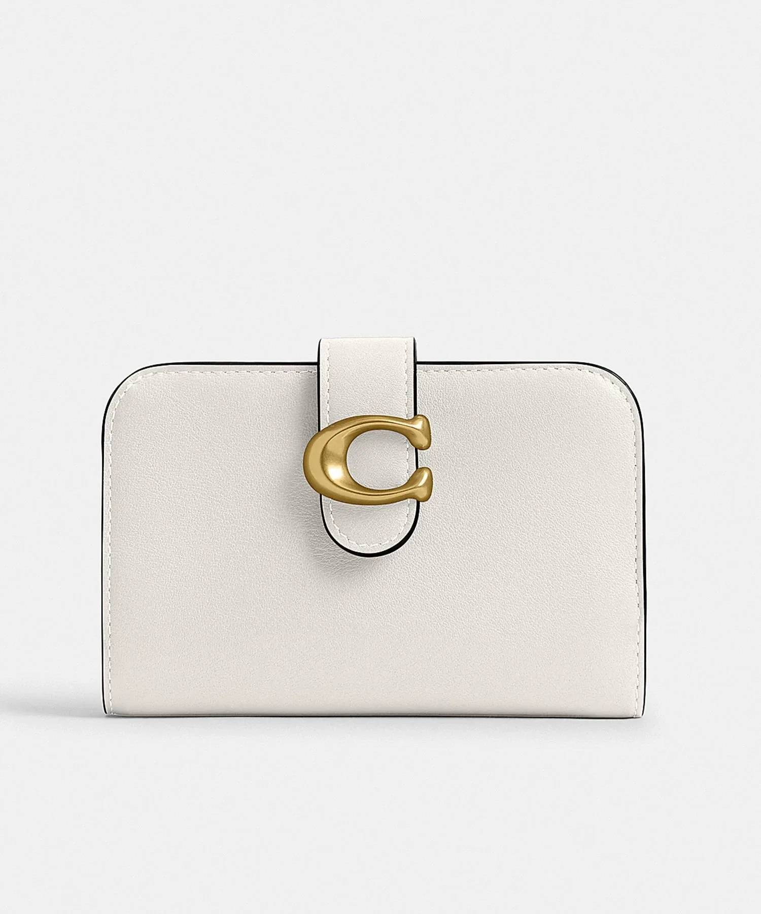 Этот миниатюрный складной кошелек украшен привлекательной фурнитурой Coach в виде буквы "C". Это современная интерпретация архивного дизайна Coach 1970-х годов, выполненная из мягкой зернистой кожи.