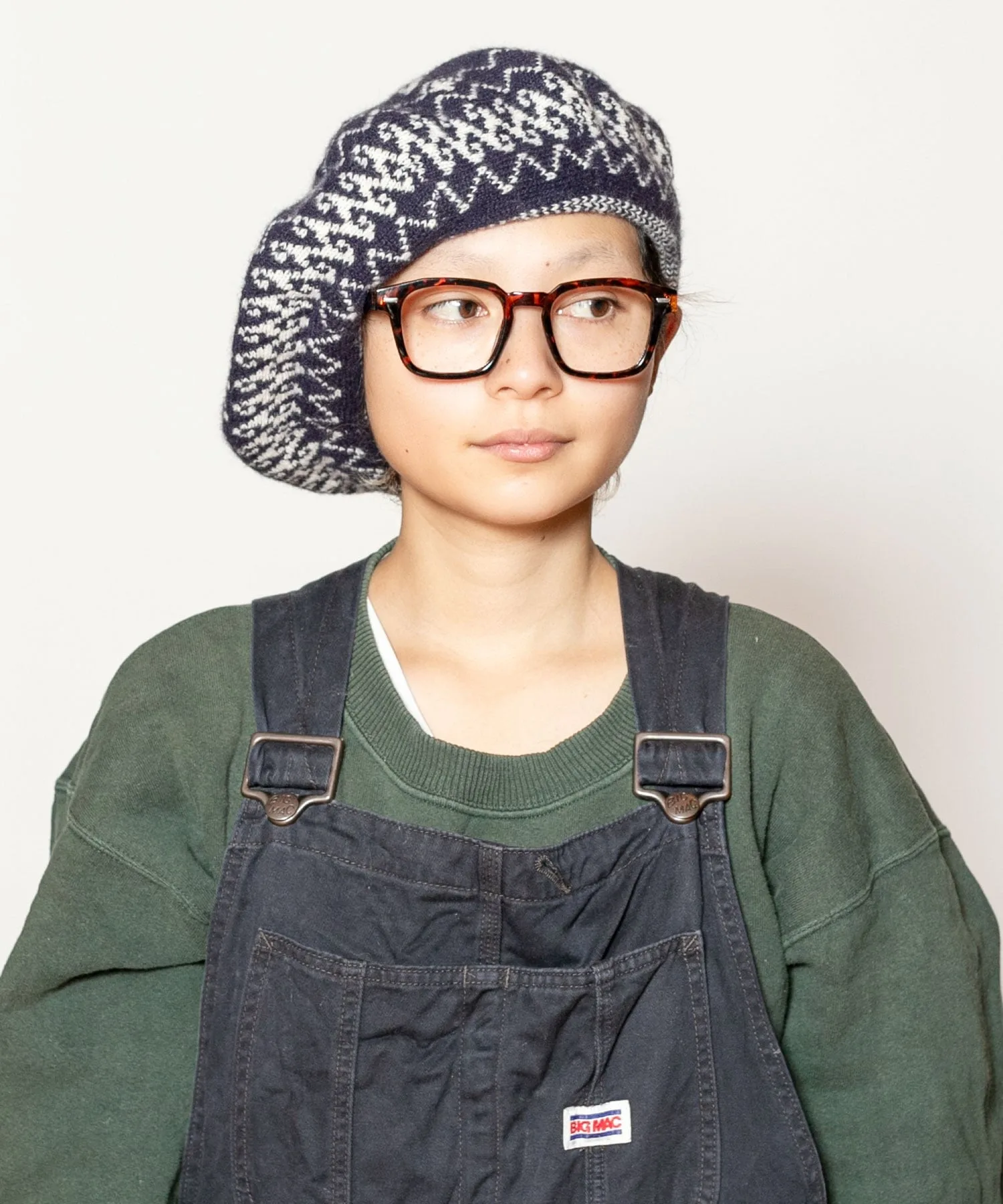 Вязаный берет с жаккардовым узором.