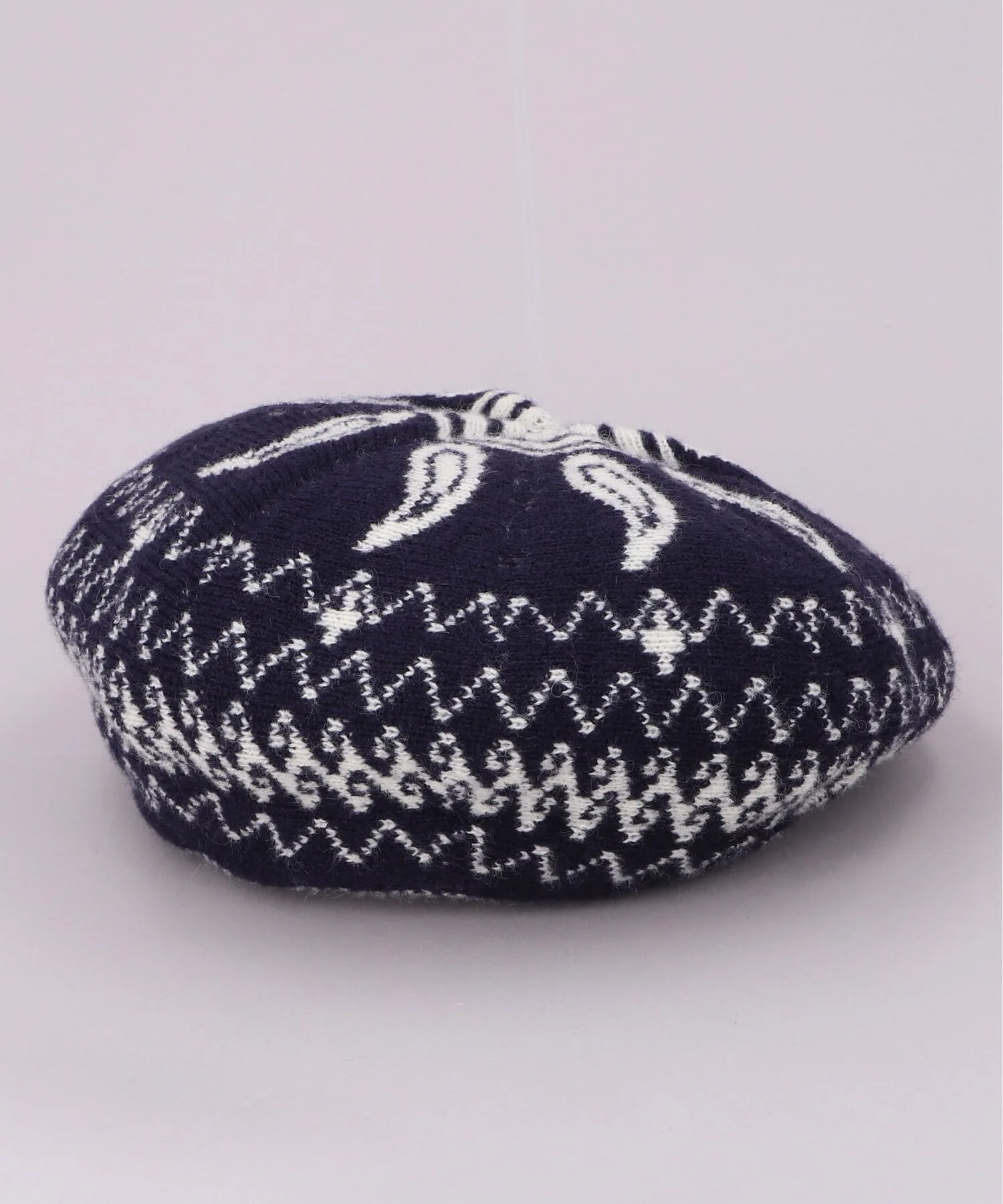 Берет украшен эффектным жаккардовым узором. Рекомендуется в качестве акцента к вашему наряду.